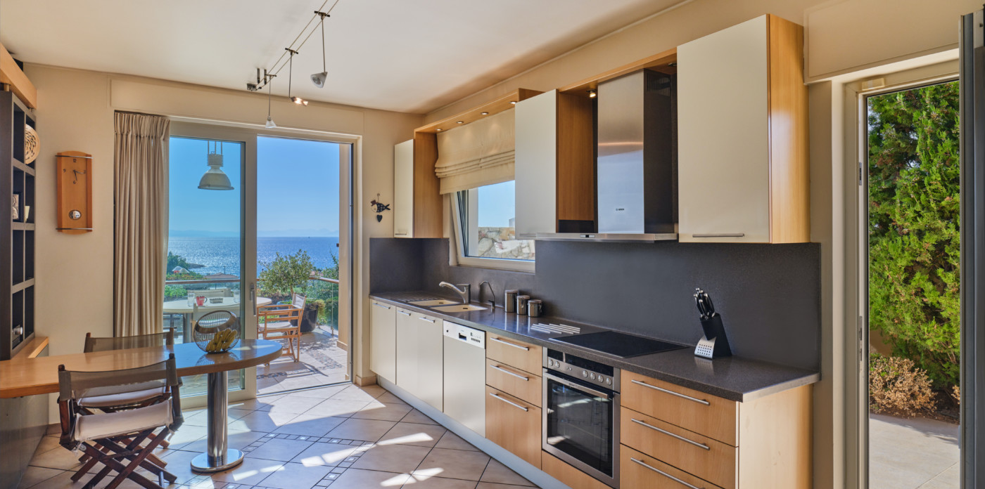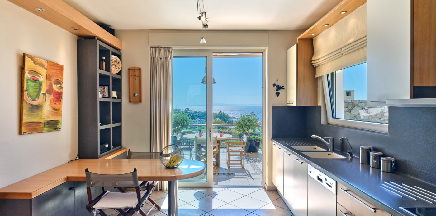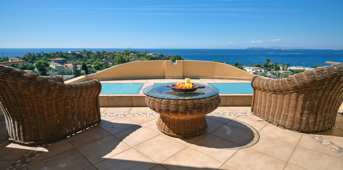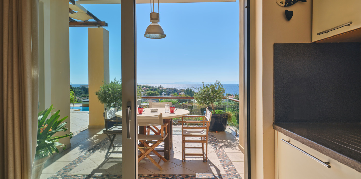 Emeraldia’s bright space combines serene sea and sunset views as well as a gorgeous outdoor space.