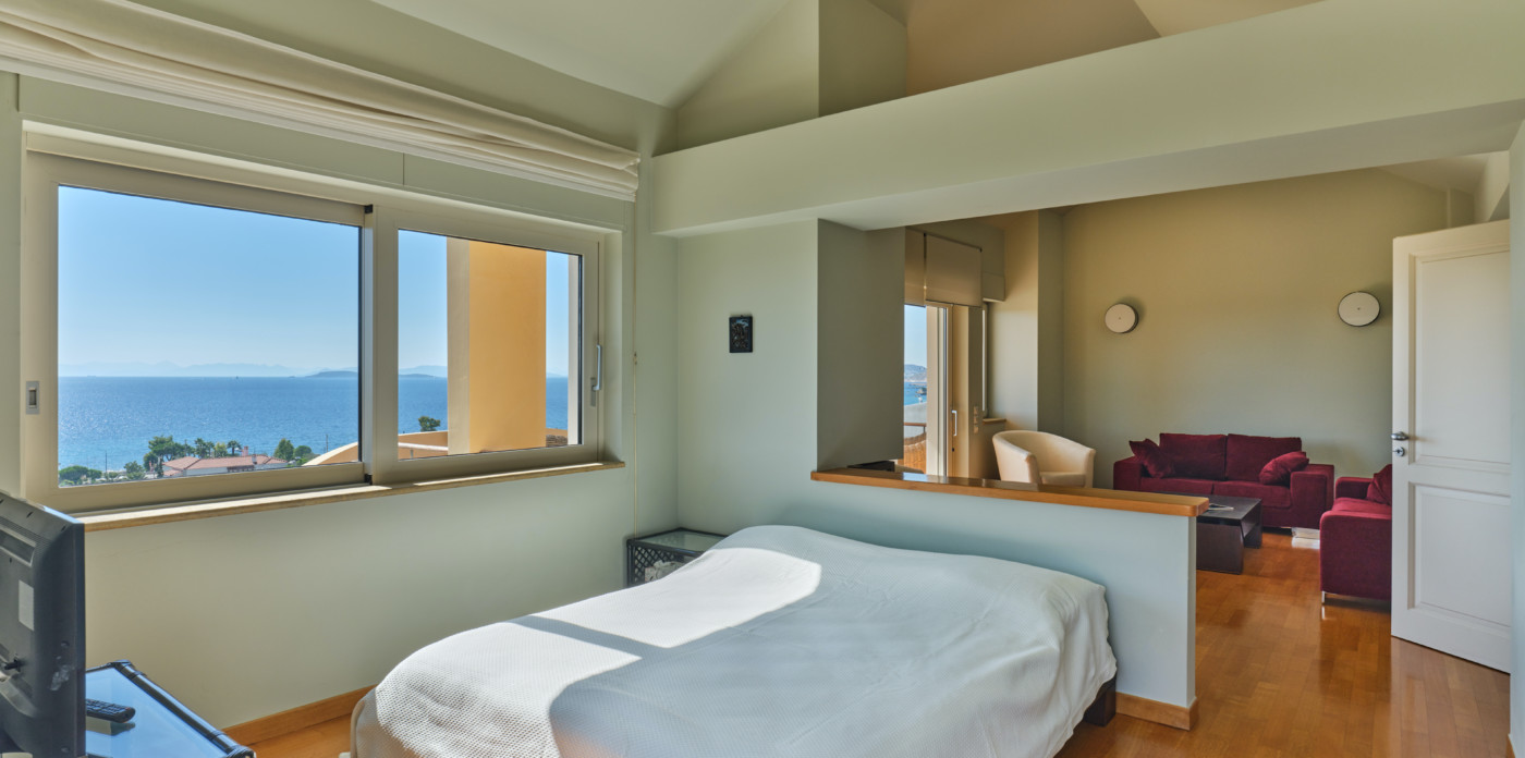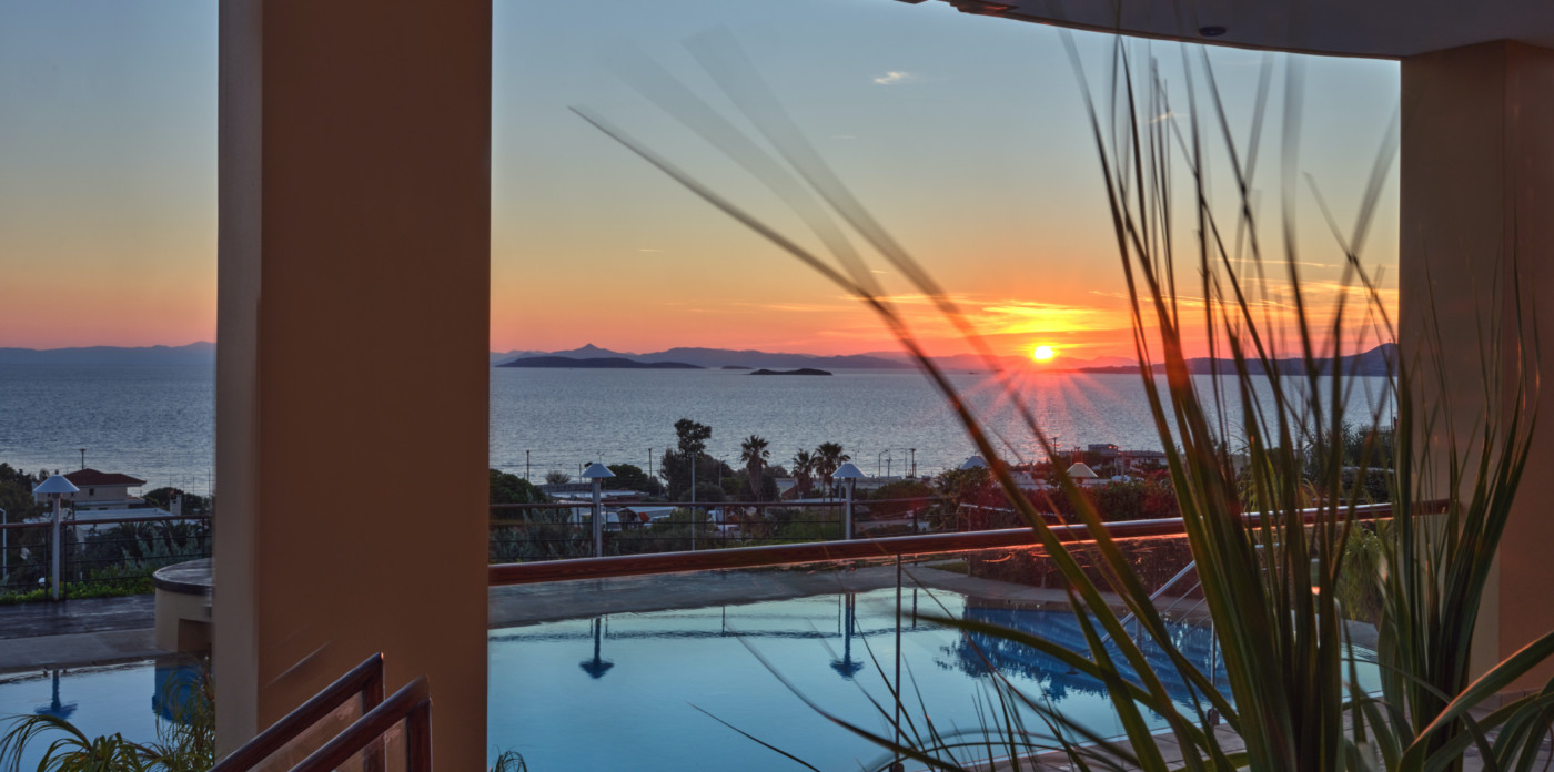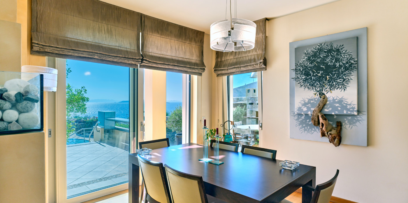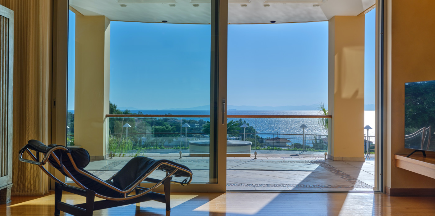 Emeraldia’s bright space combines serene sea and sunset views as well as a gorgeous outdoor space.