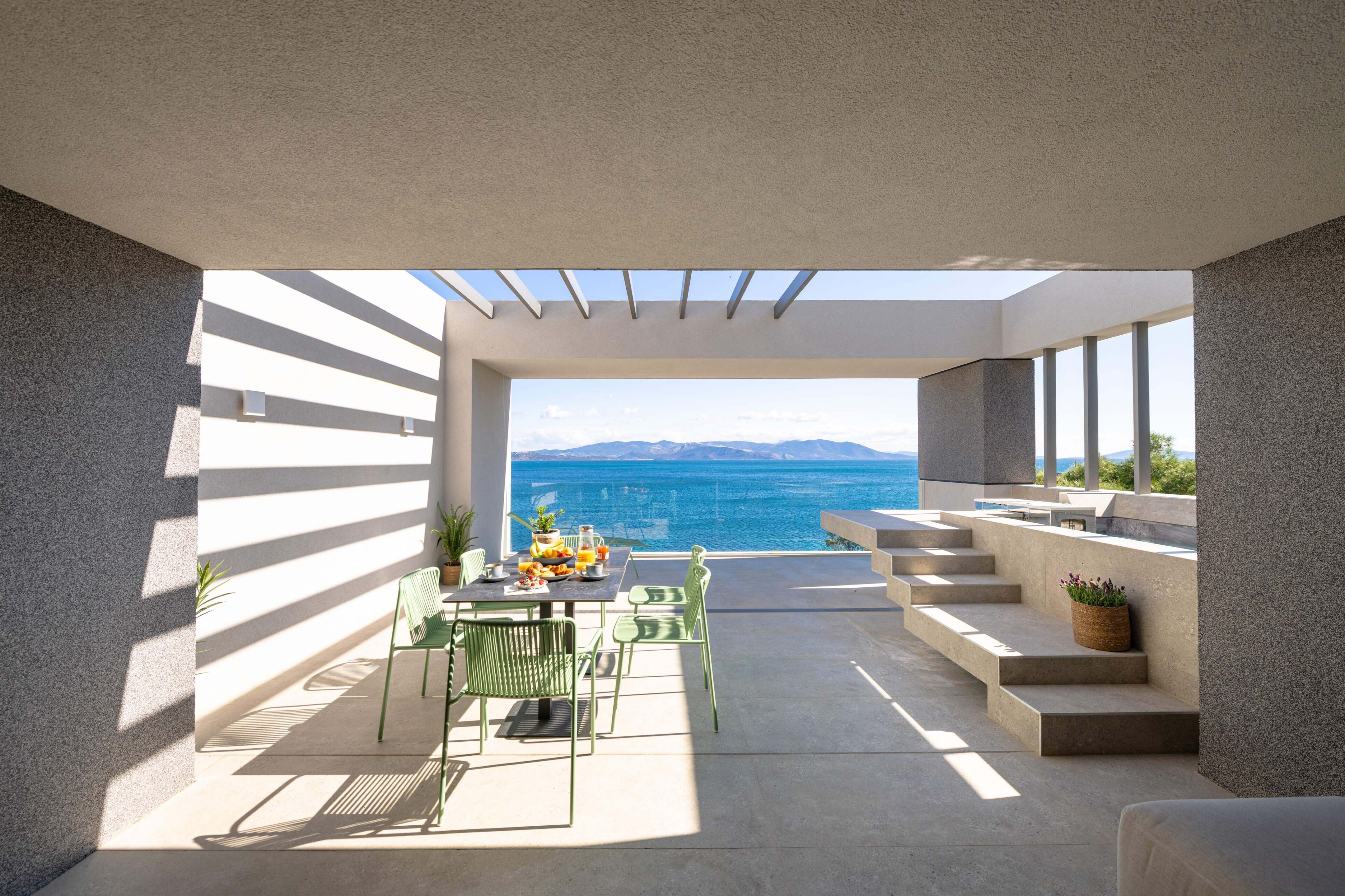 Eron combines a defined layout with sea views and outdoor space, set within a coastal environment.