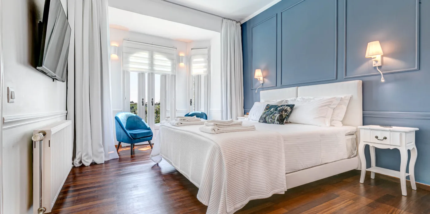 The interior of the house is pristine and elegant, with six spacious and tastefully decorated en-suite bedrooms. Each of the six bedrooms has their own unique design, including private balconies and separate air conditioning and heating systems in order to regulate each rooms’ climate to taste. This makes Eudora a perfect home in every season.