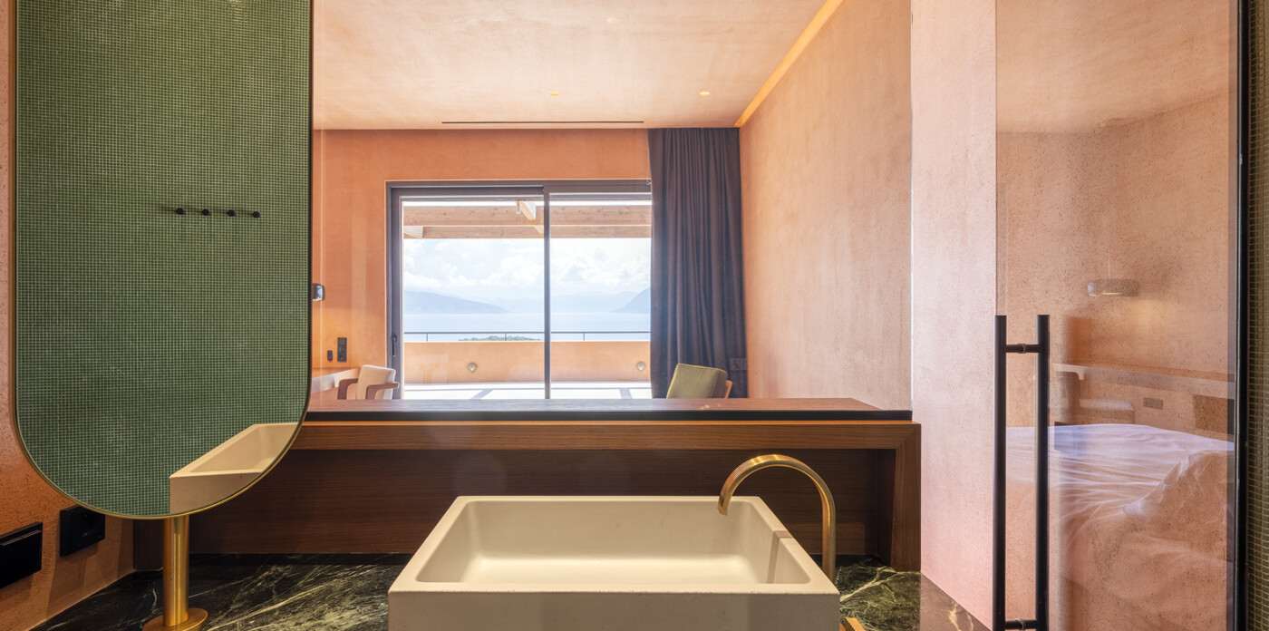 Across the floor, the “Blue” master bedroom with en-suite bathroom features meticulously selected deep blue, gold, wooden and bronze details while the anthracite windows open to a large terrace with endless sea views. The “Green” master bedroom with en-suite bathroom features green marble, bronze and wooden details and the same mesmerizing views of the Ionian sea.