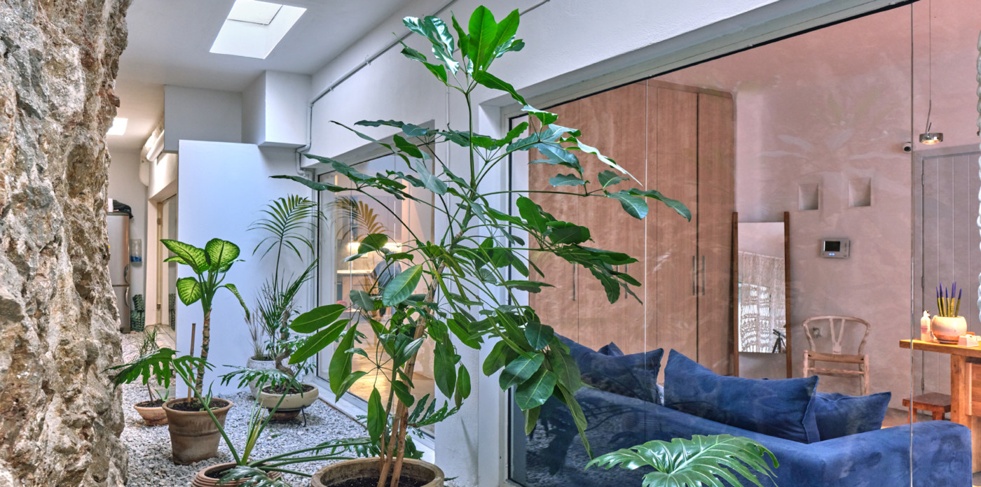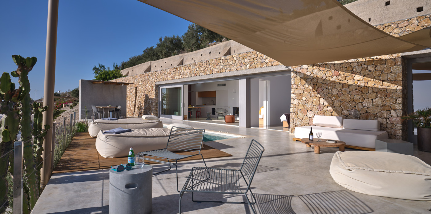 The hotel is hallmarked by its authentic style and minimal design. On two levels, the upper level has two bedroom suites each with private terraces and private plunge pools. The floor plan down on the lower level includes a reception area, the kitchen and two further bedroom suites. Each of these suites has a covered lounge terrace with pool as well as “sunken” poolside lounges. 3d floor plans are available showing how to convert the hotel to a residential villa.