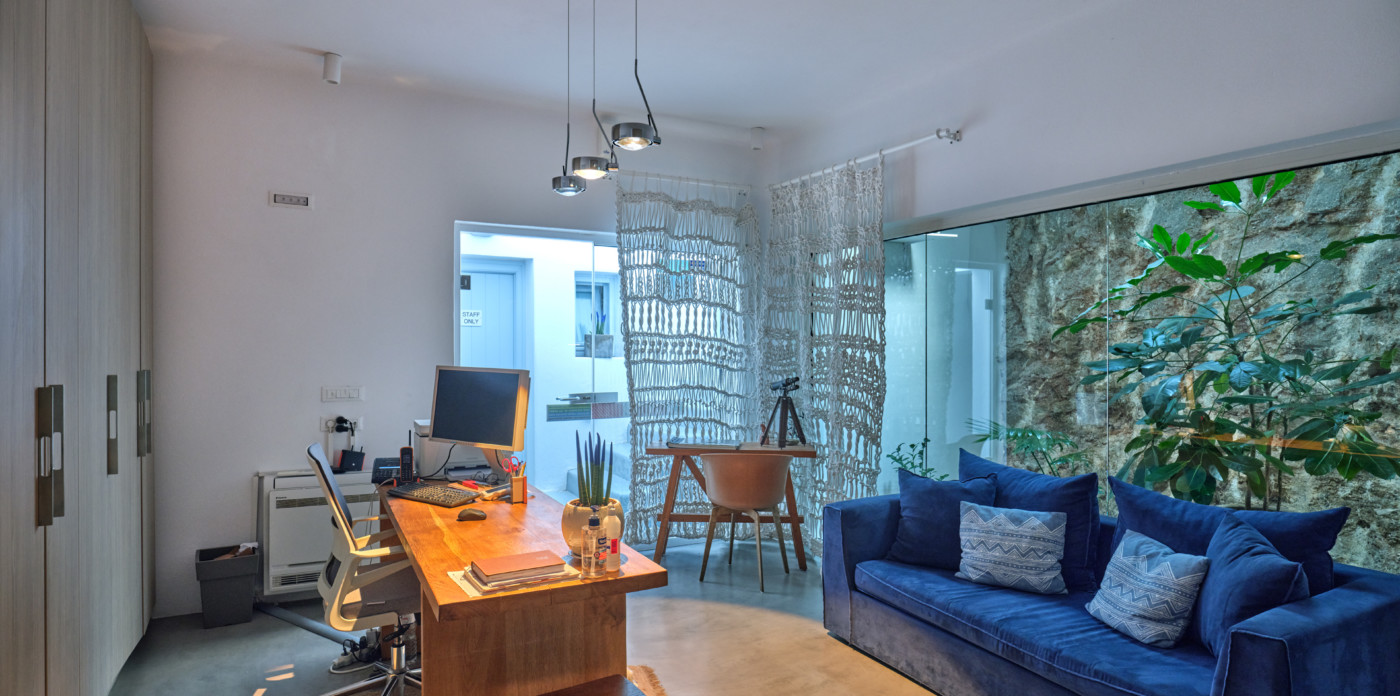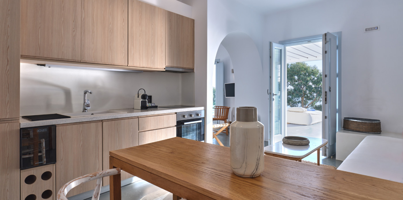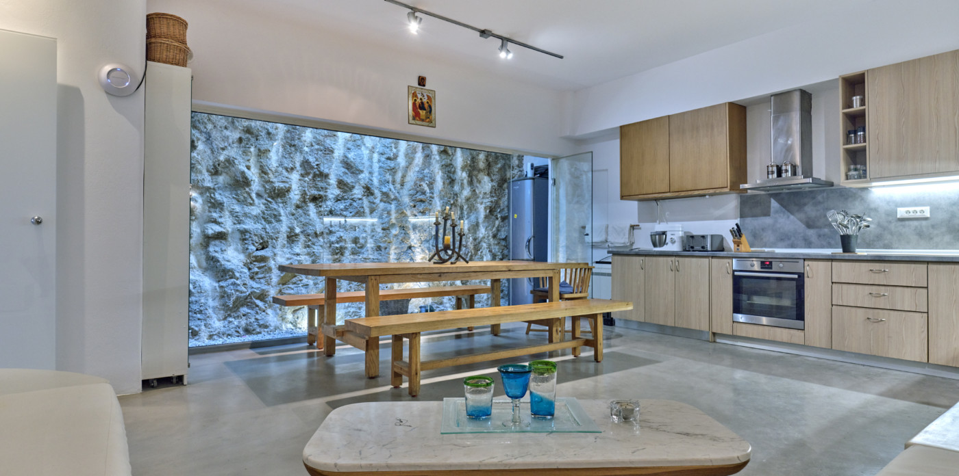 The second property on the estate is a beautiful stone fronted villa. Perfectly designed to blend in with the natural surroundings, it offers a master bedroom suite, a fully equipped kitchen and open plan living/dining area. A contemporary fireplace brings an element of warmth to the minimal space.