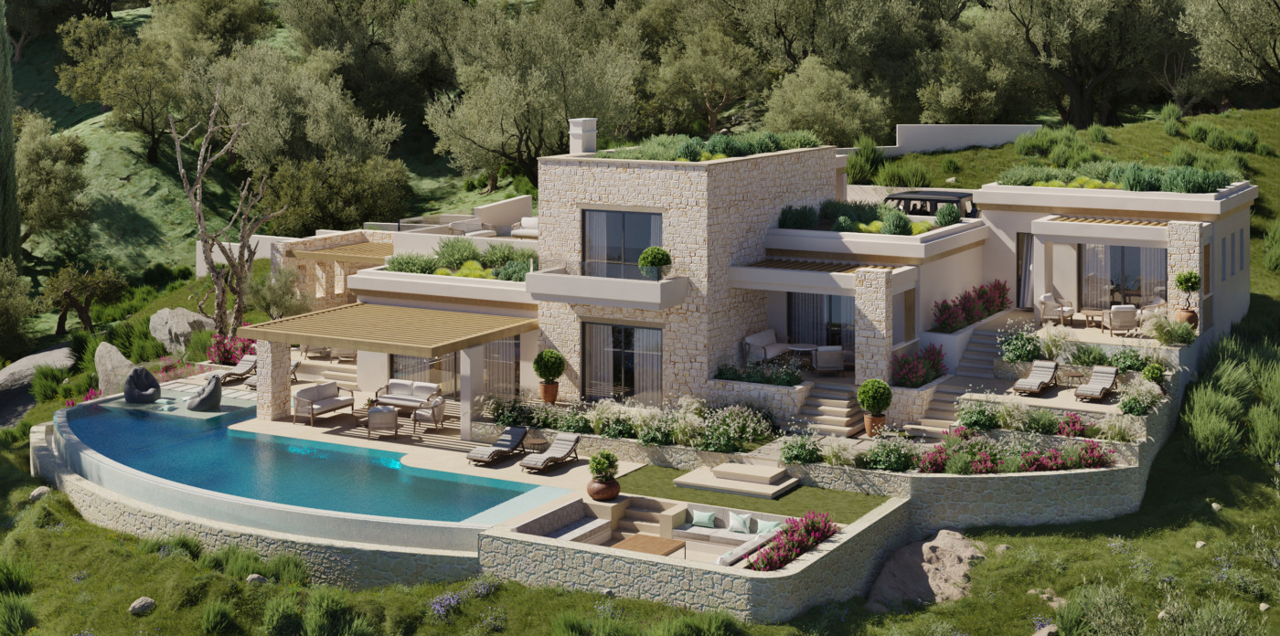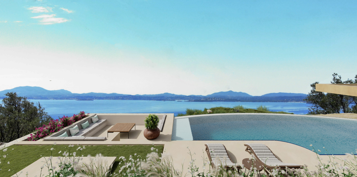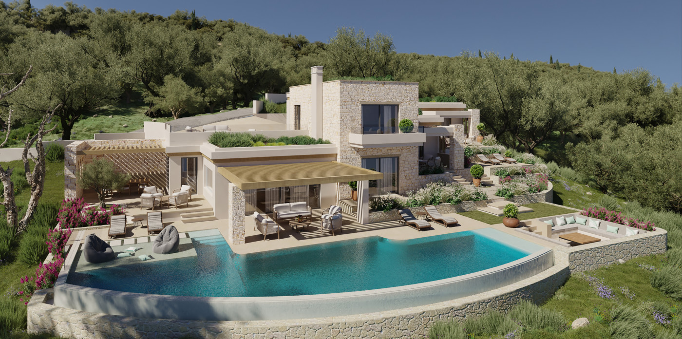 An island hideaway located in an elevated natural setting. A place to enjoy the beauty of the Ionian sea, this minimalistic gem offers the longed-for privacy we all seek while smoothly integrating with its intense green surroundings.