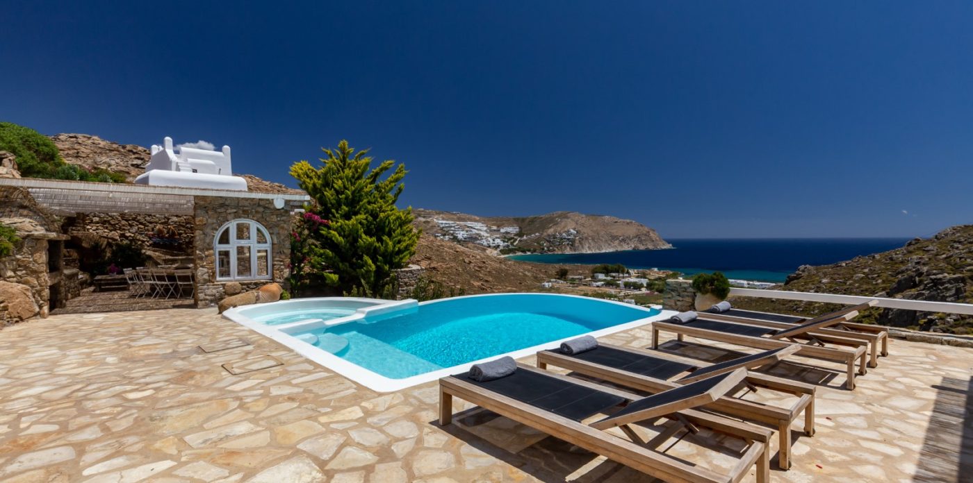 Hidden Secret is an elegant and spacious south facing family villa, in a privileged wind-sheltered location above the marvellous golden sand Agrari Beach with magnificent views of the Aegean Sea. Although located just 10 minutes by car from town, the property offers tranquility, privacy and stunning scenery.