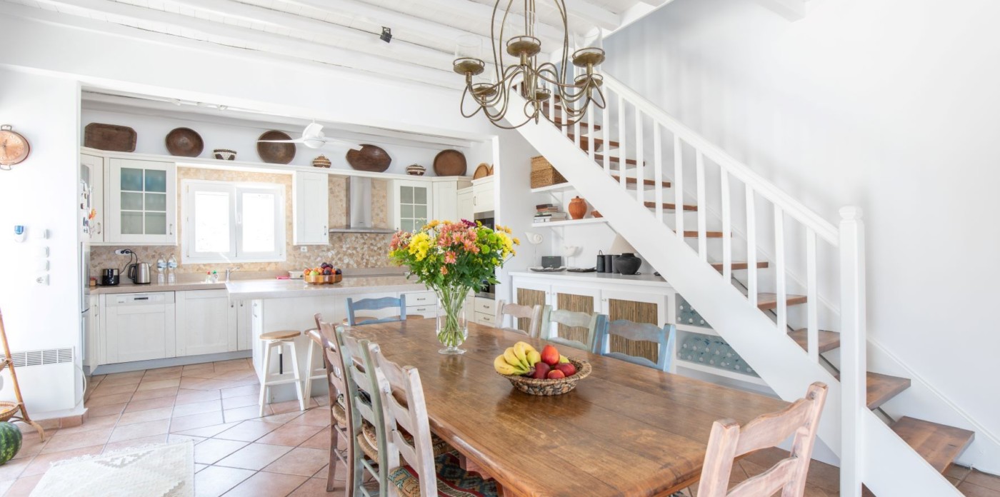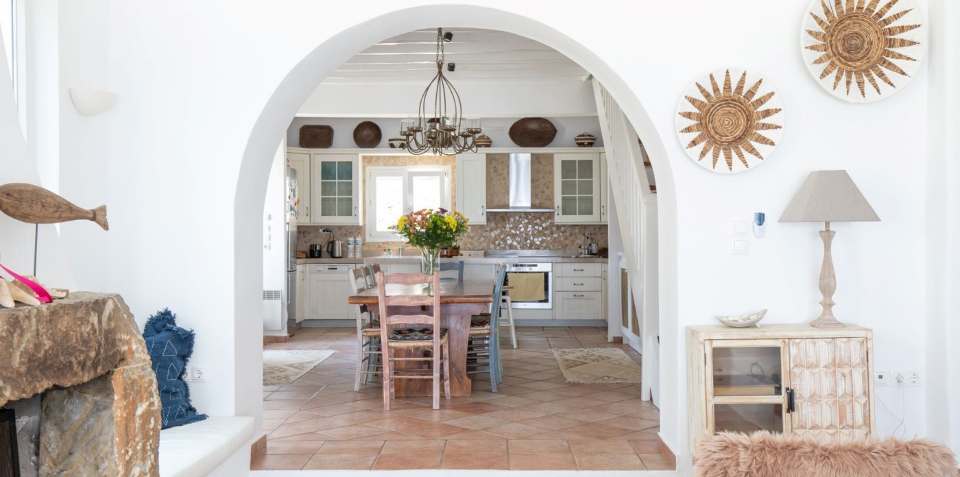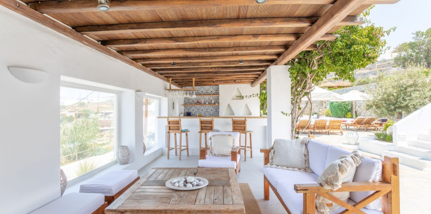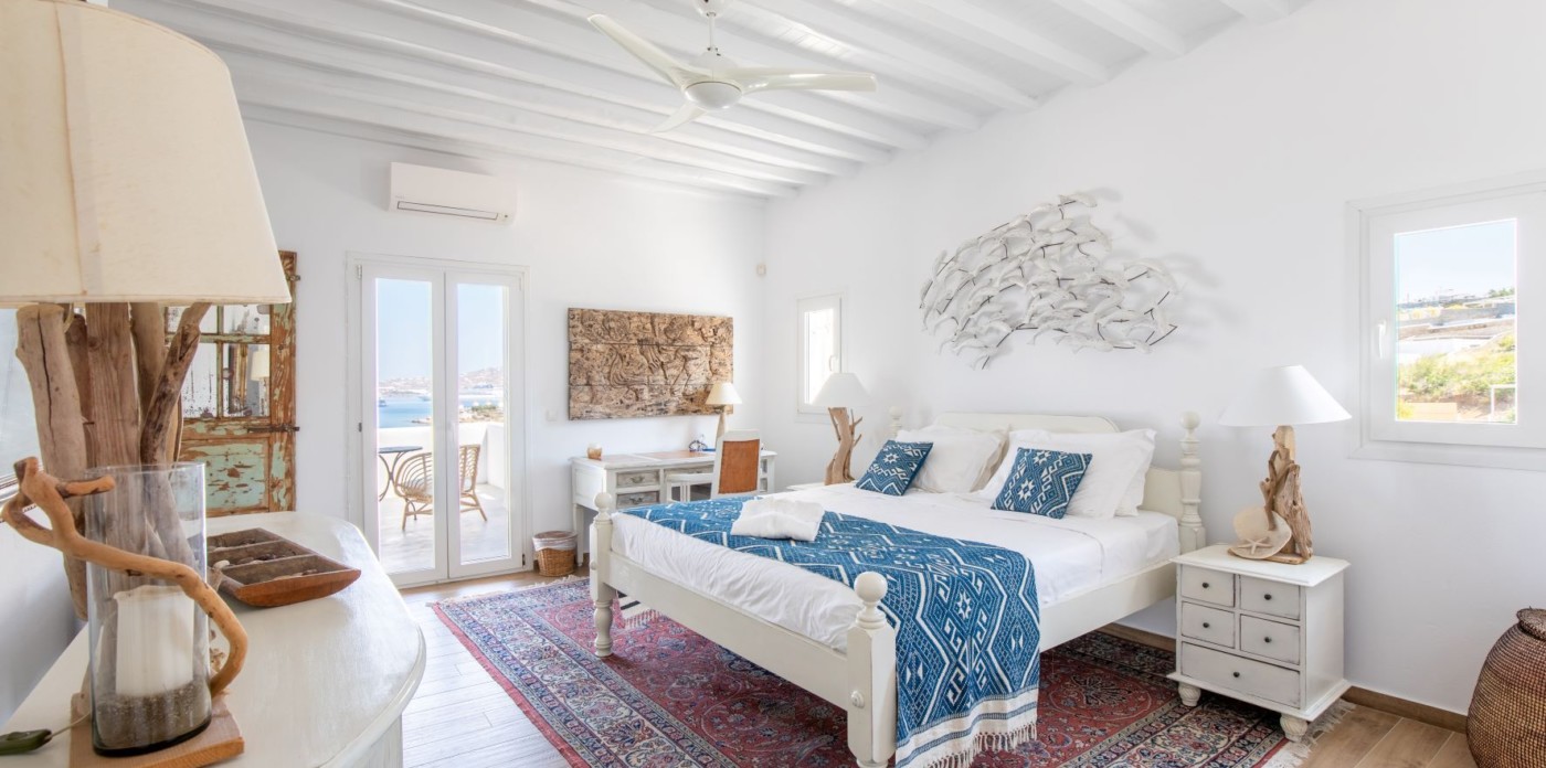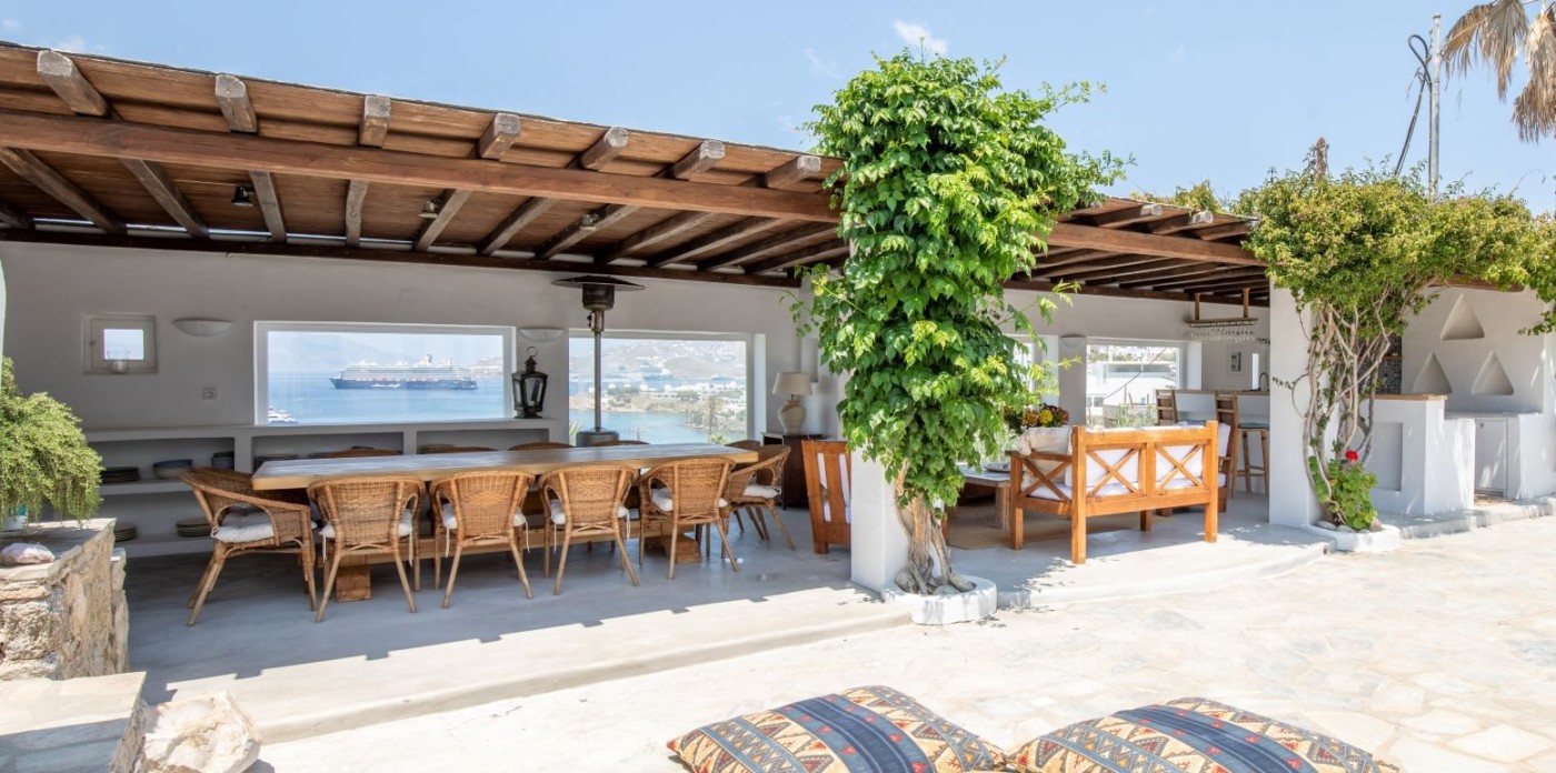 This savvy home inspires energy and a cosmopolitan flair with its perfect positioning right above of it all. Sit back and enjoy the cruise ships and the sailing yachts as they come in to dock and be part of the cosmopolitan and luxurious lifestyle Mykonos has to offer.