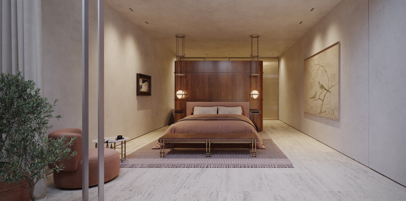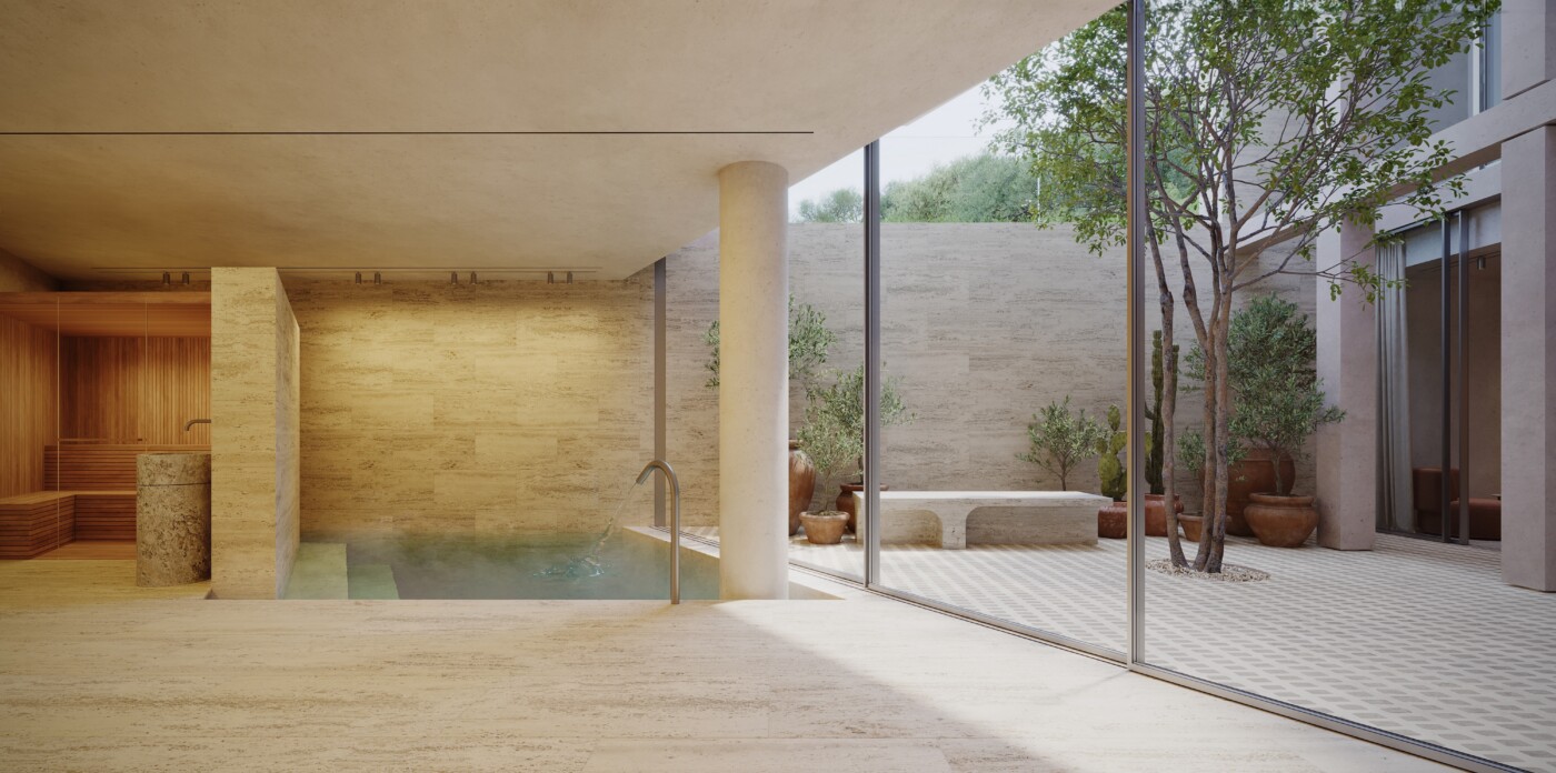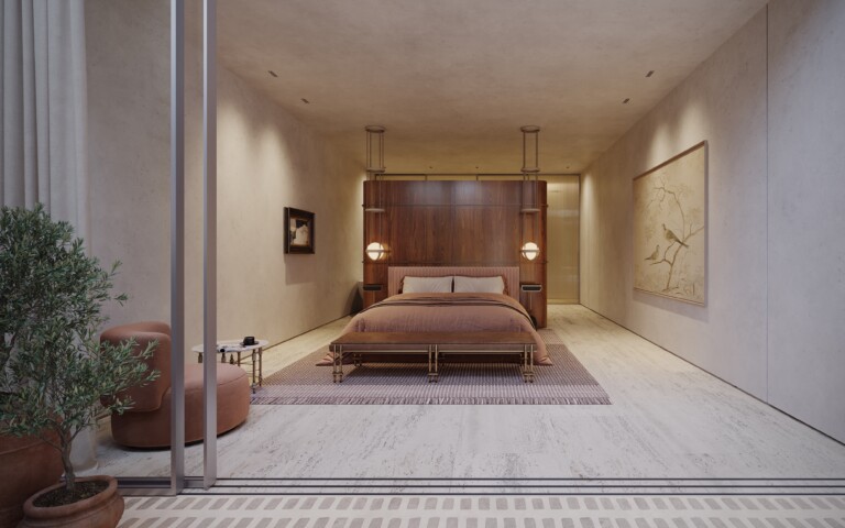 The villa includes four bedrooms and four bathrooms, with a consistent and considered design approach, defined by clean lines and a restrained material palette.