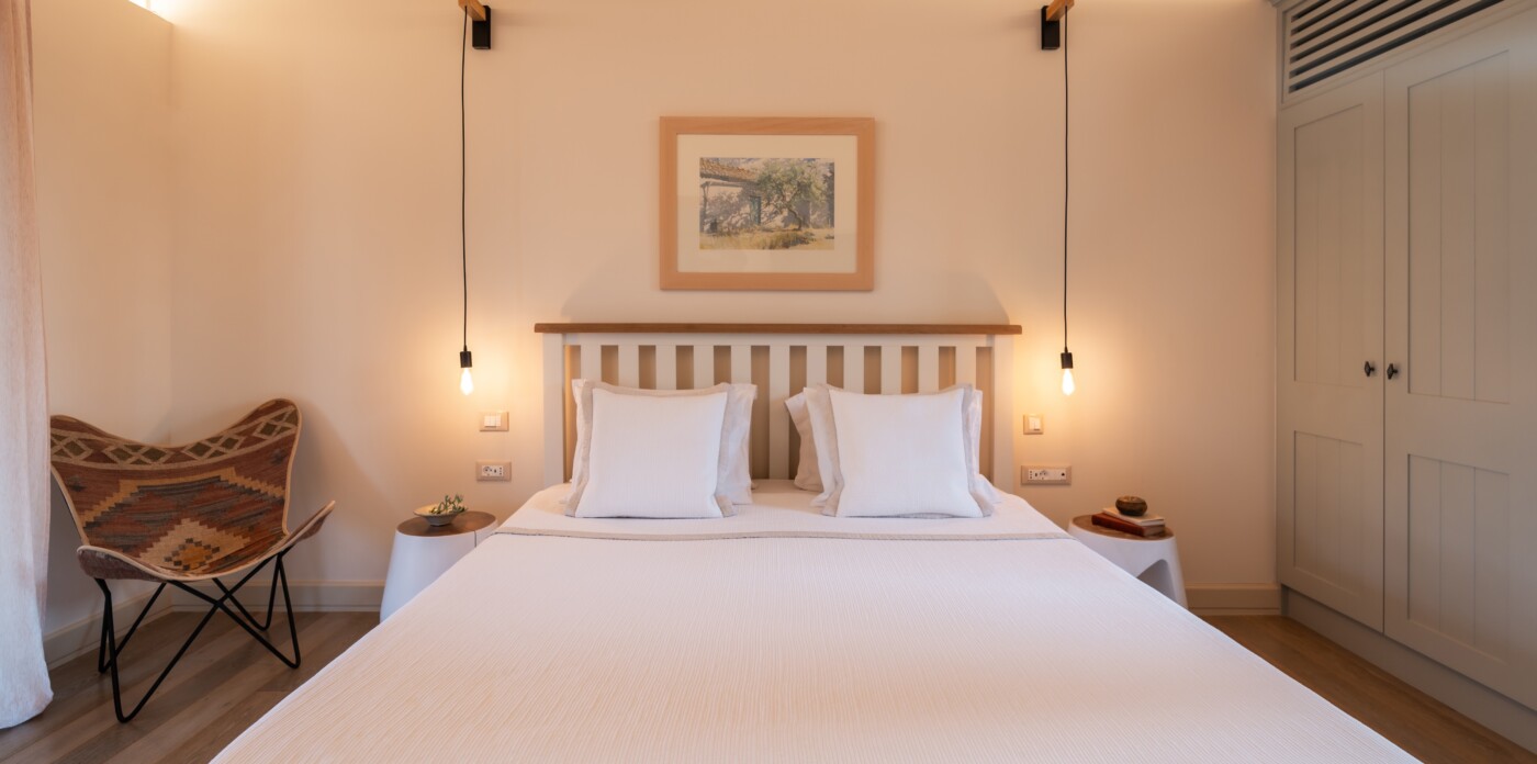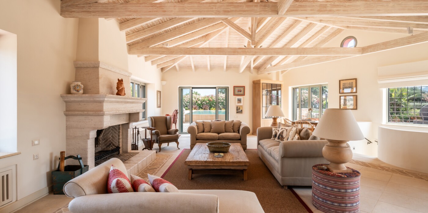 This magnificent villa, completed in 2021, blends modern construction with timeless design elements. High wooden ceilings, a soft color palette, and carefully curated furnishings create a welcoming atmosphere, while thoughtfully chosen artwork adds to its sophisticated character. The home’s two main wings are seamlessly connected by arches and terraces, creating a harmonious flow between indoor and outdoor living spaces. The estate offers a perfect balance of intimacy and openness, ideal for hosting family and friends.