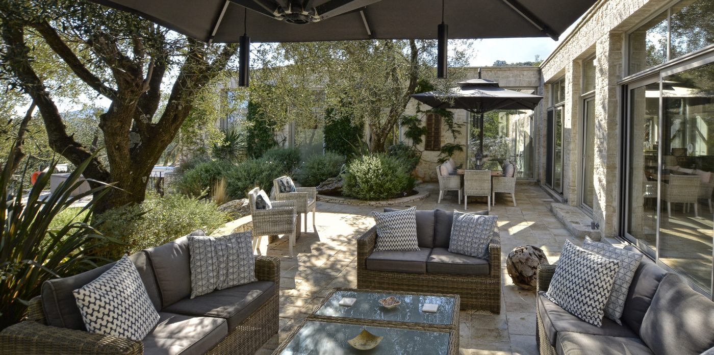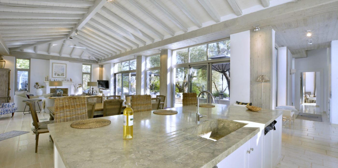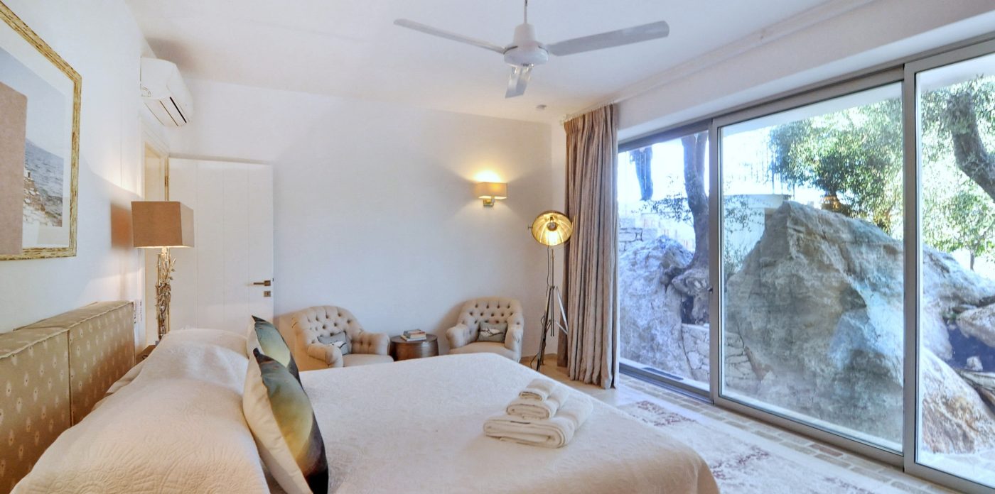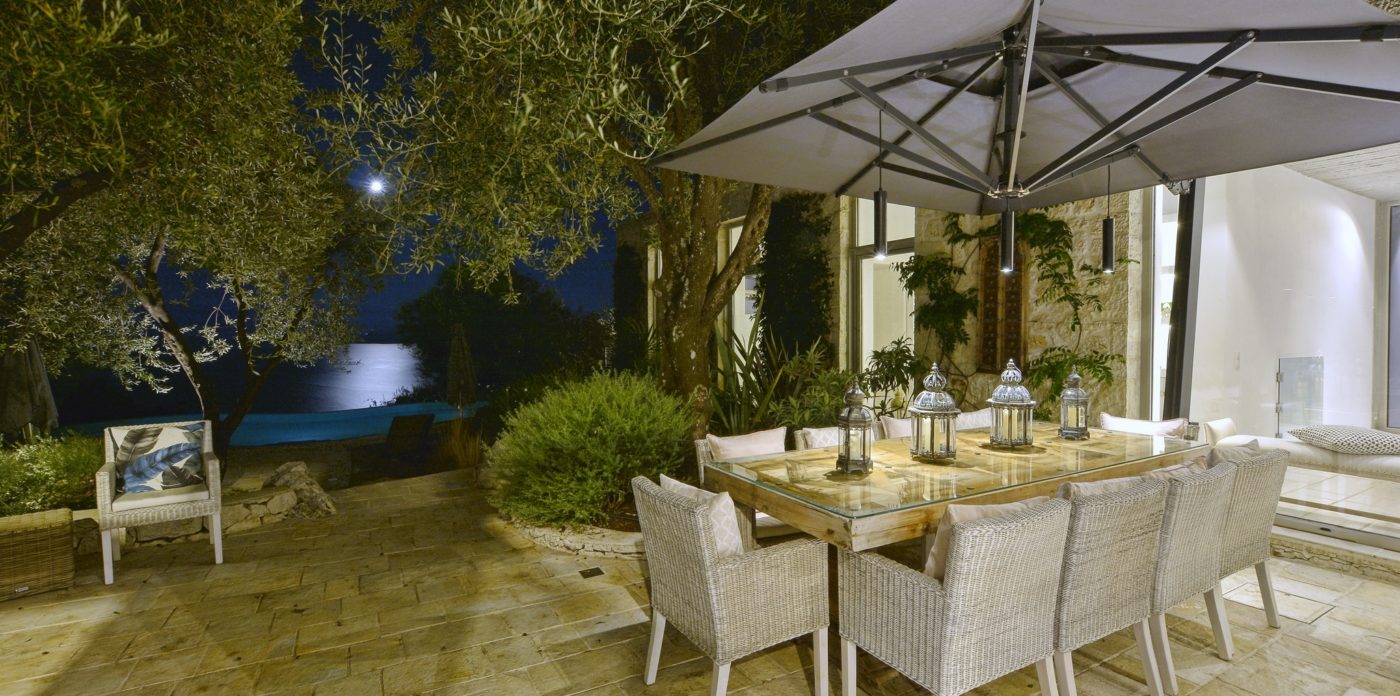 This exceptional villa of generous proportions is an oasis of calm, built with an ancient olive grove on one side and the panoramic sea views on the other.