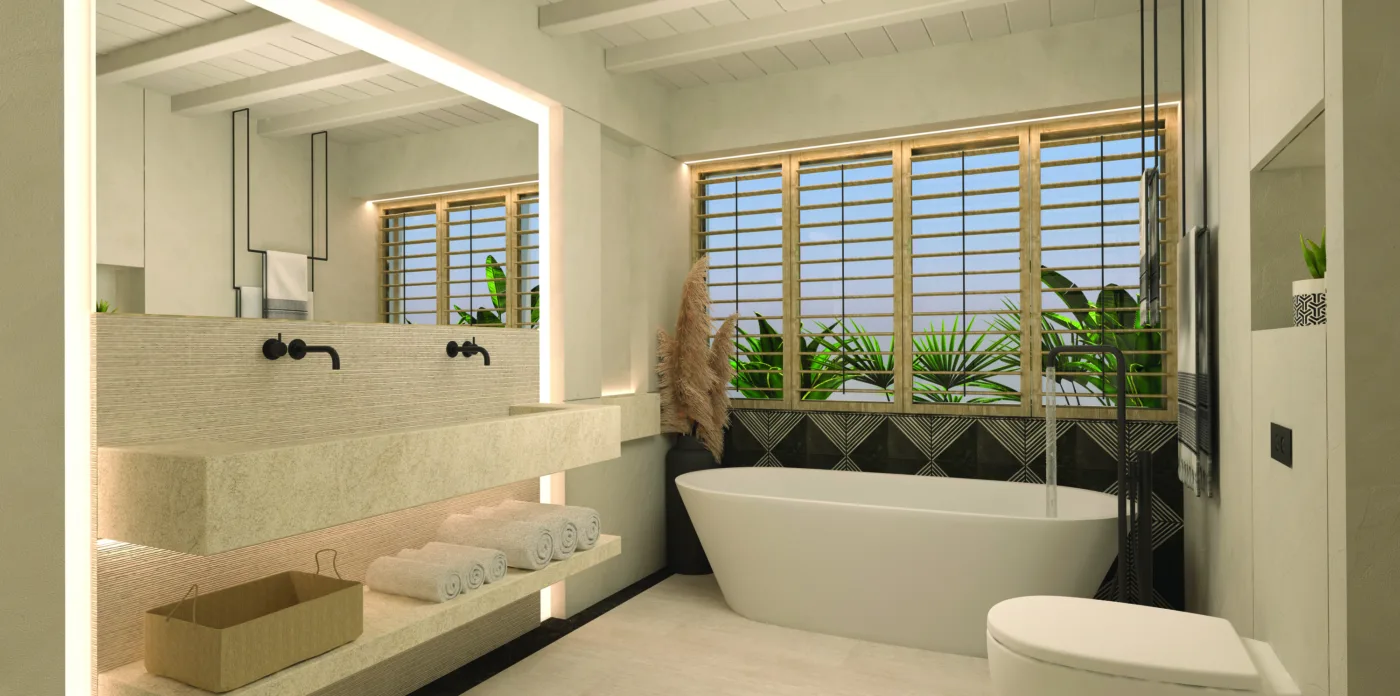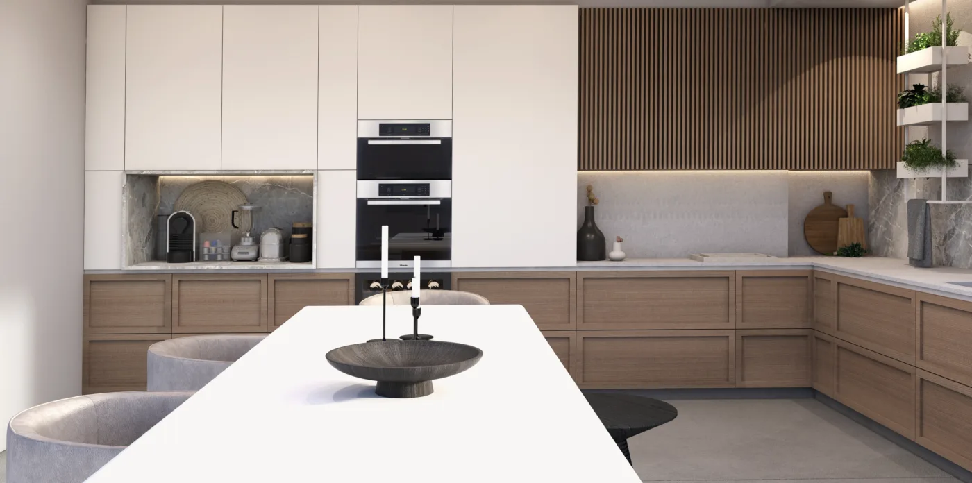 Lilly features three bedrooms, two of which are en-suite, with exceptional quality fitted wardrobes and elegant detailing. The owner’s suite also features a balcony and voluminous fitted wardrobes. The deluxe en-suite bathroom boasts high-quality tiling on the walls and floor, and modern chrome accessories.