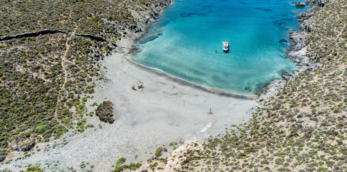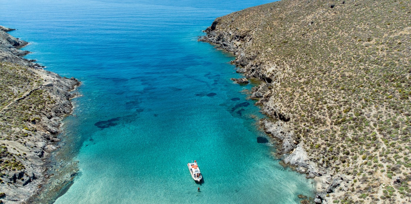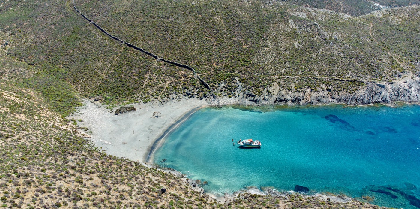 This beautiful seafront plot measuring 295,000 sq. m is found on the peaceful island of Syros, close to Ano Meria on the northern coastline. It is close to the semi-private Marmari Beach, which can only be reached by hiking or private boat from the small port of Kini.