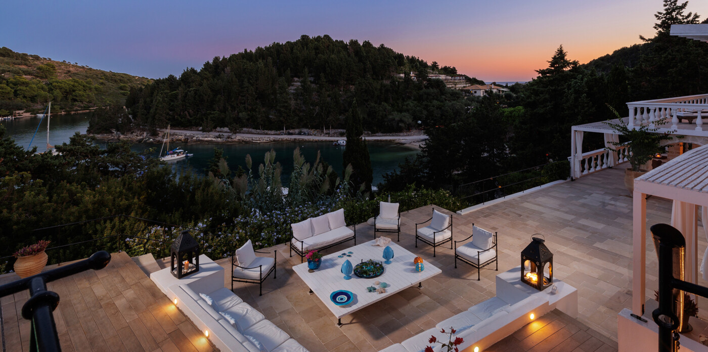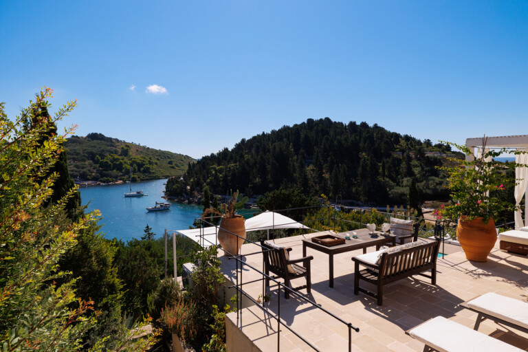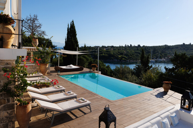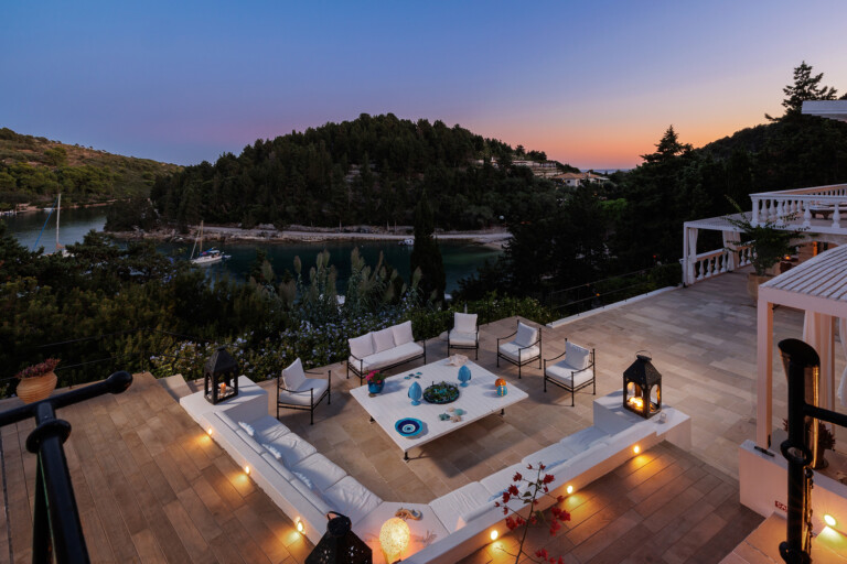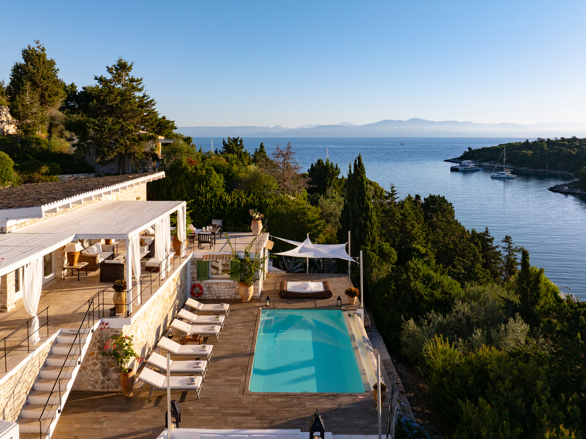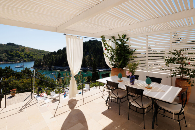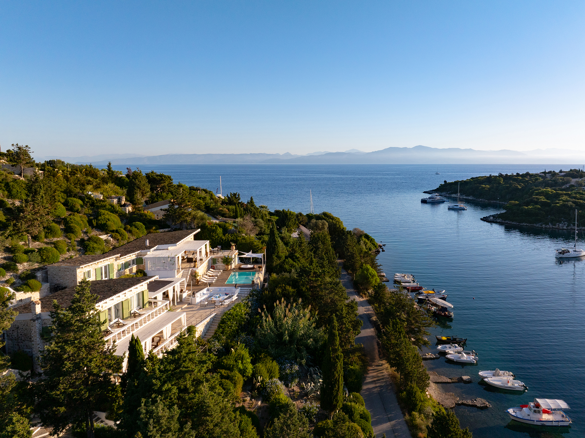 Marina occupies a direct seafront position in Paxos, with open views across the bay and immediate access to the water. The setting, scale, and privacy place it among a limited number of waterfront properties in the Ionian.