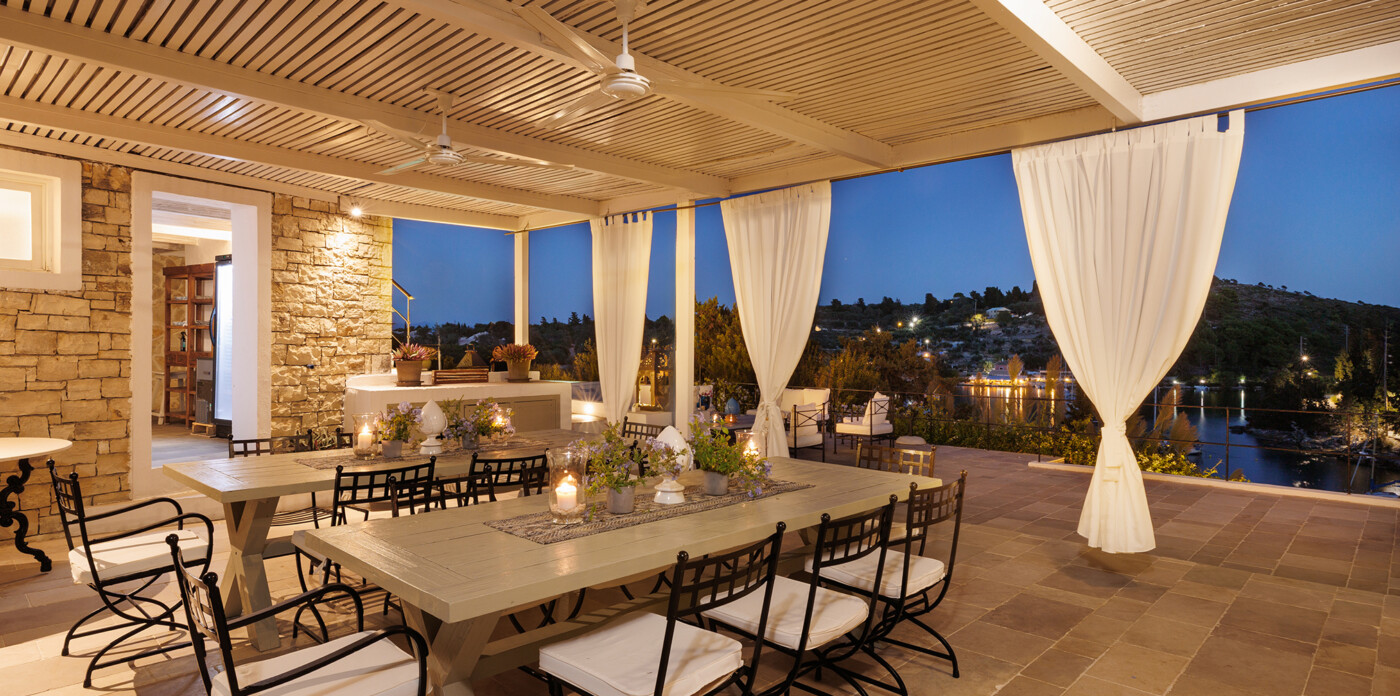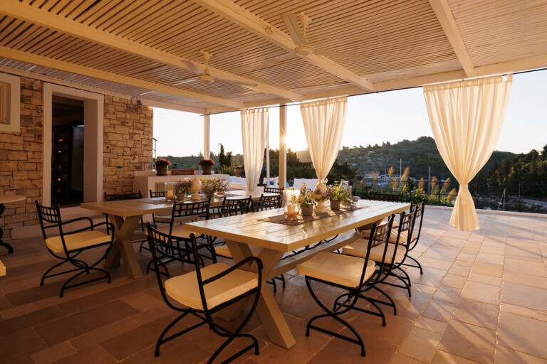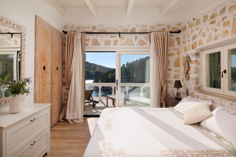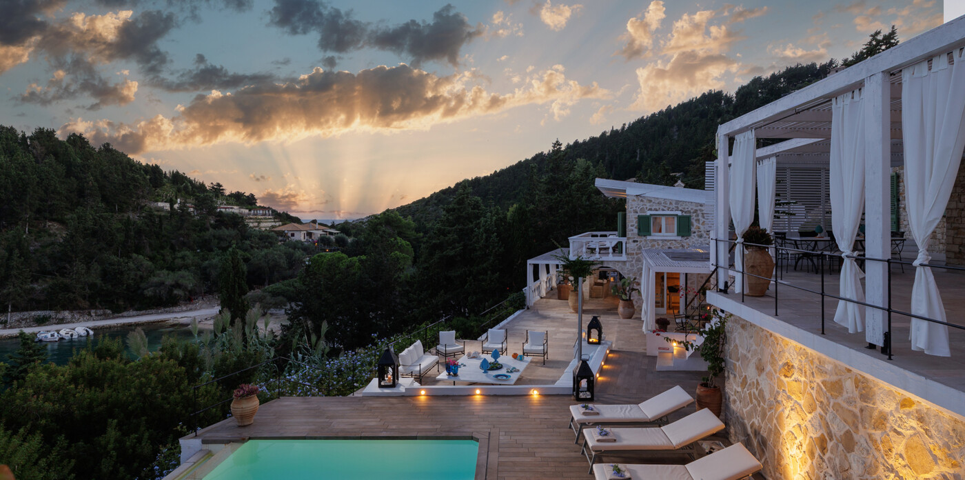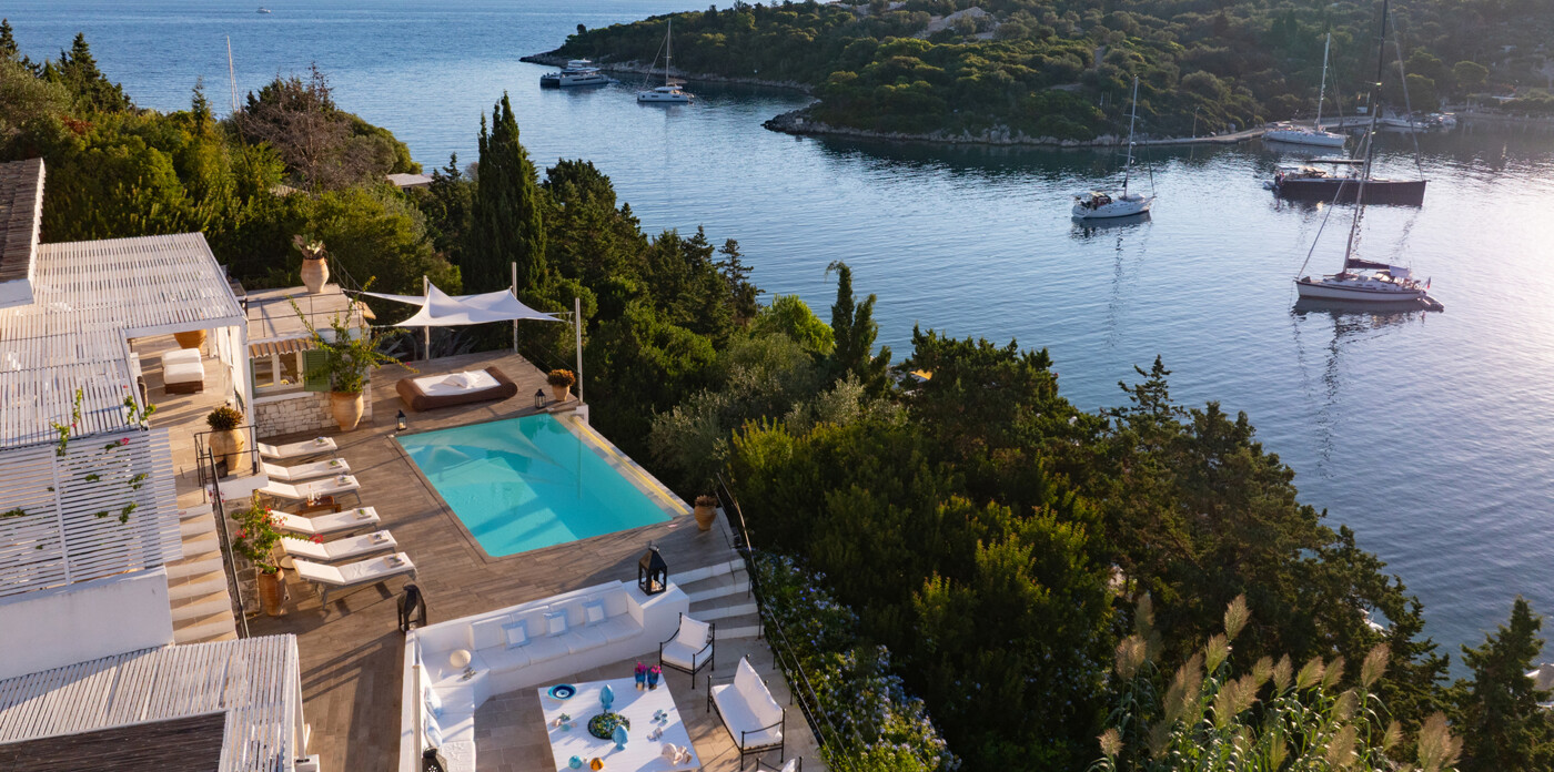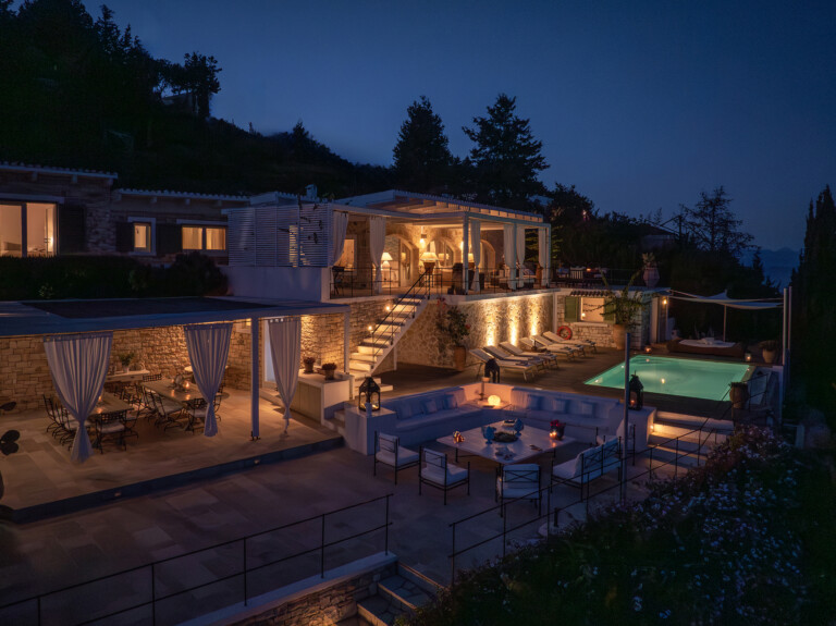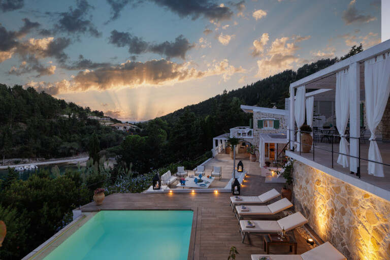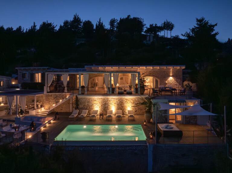 Marina occupies a direct seafront position in Paxos, with open views across the bay and immediate access to the water. The setting, scale, and privacy place it among a limited number of waterfront properties in the Ionian.
