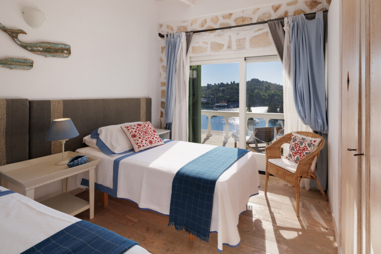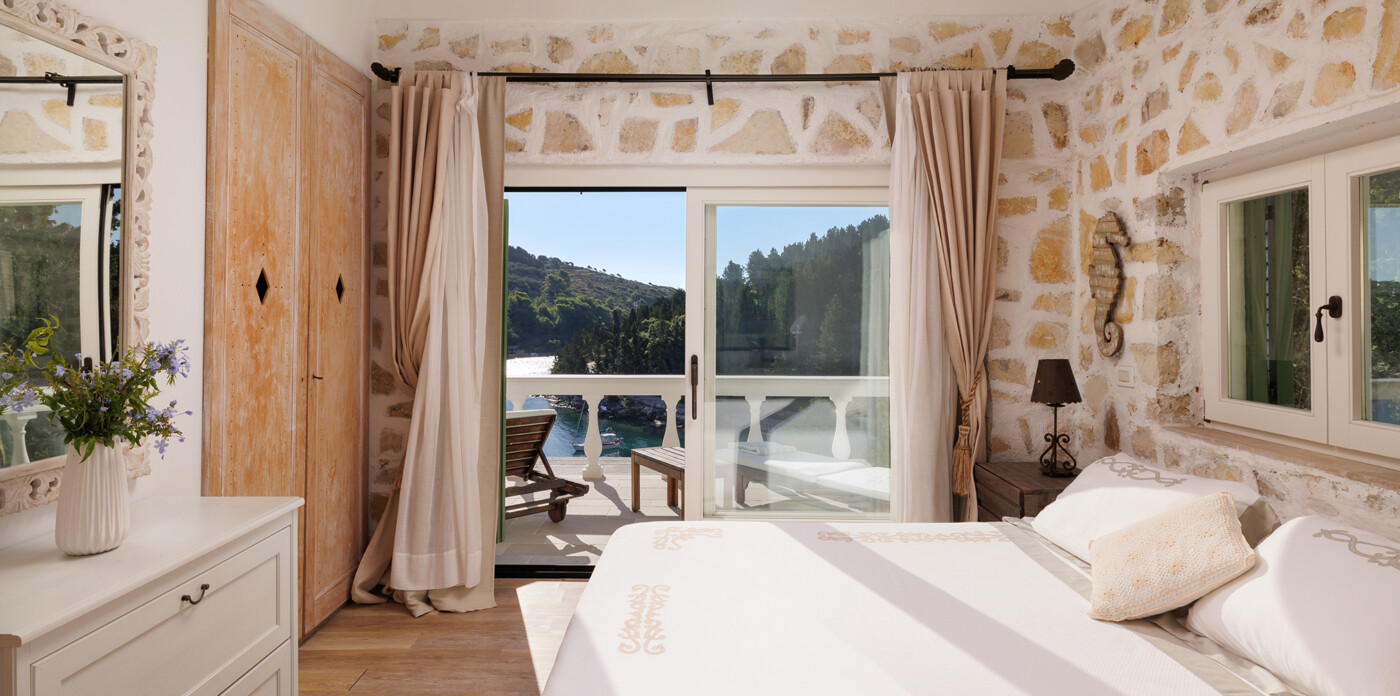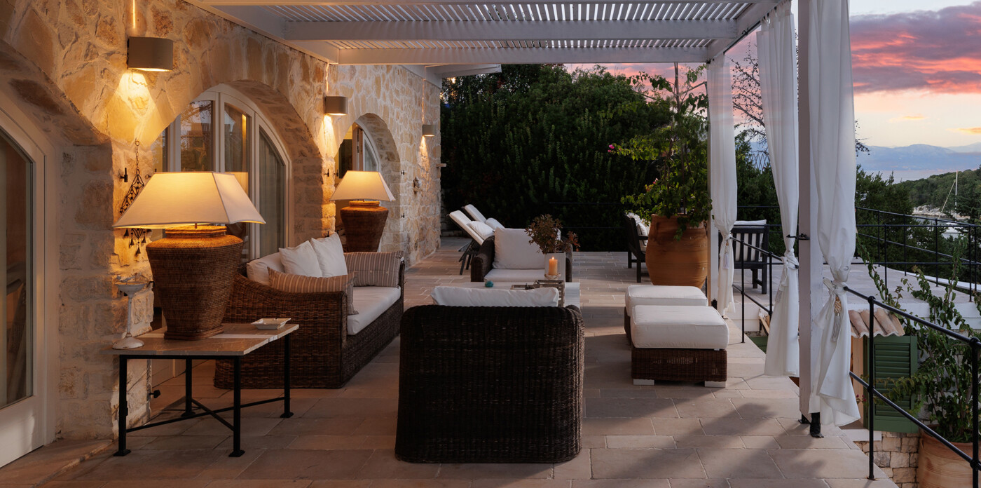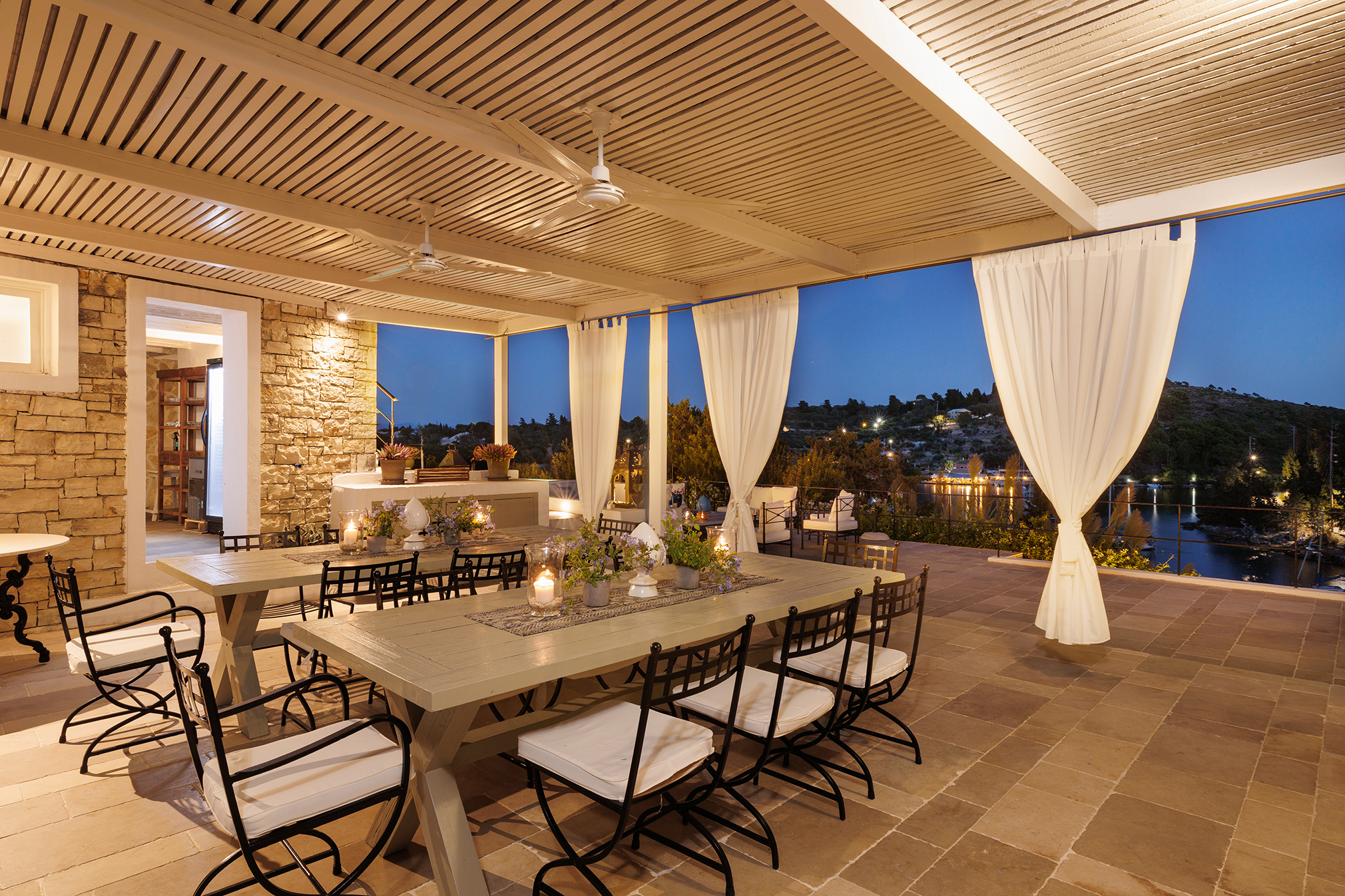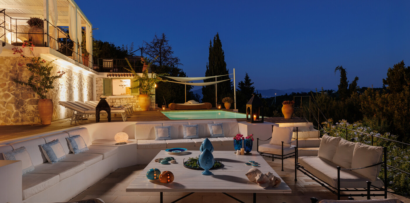 Marina occupies a direct seafront position in Paxos, with open views across the bay and immediate access to the water. The setting, scale, and privacy place it among a limited number of waterfront properties in the Ionian.