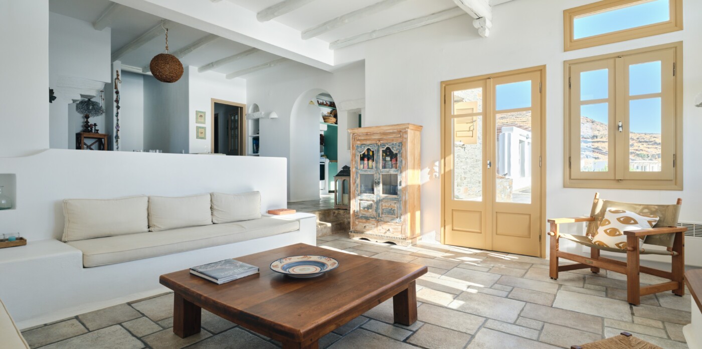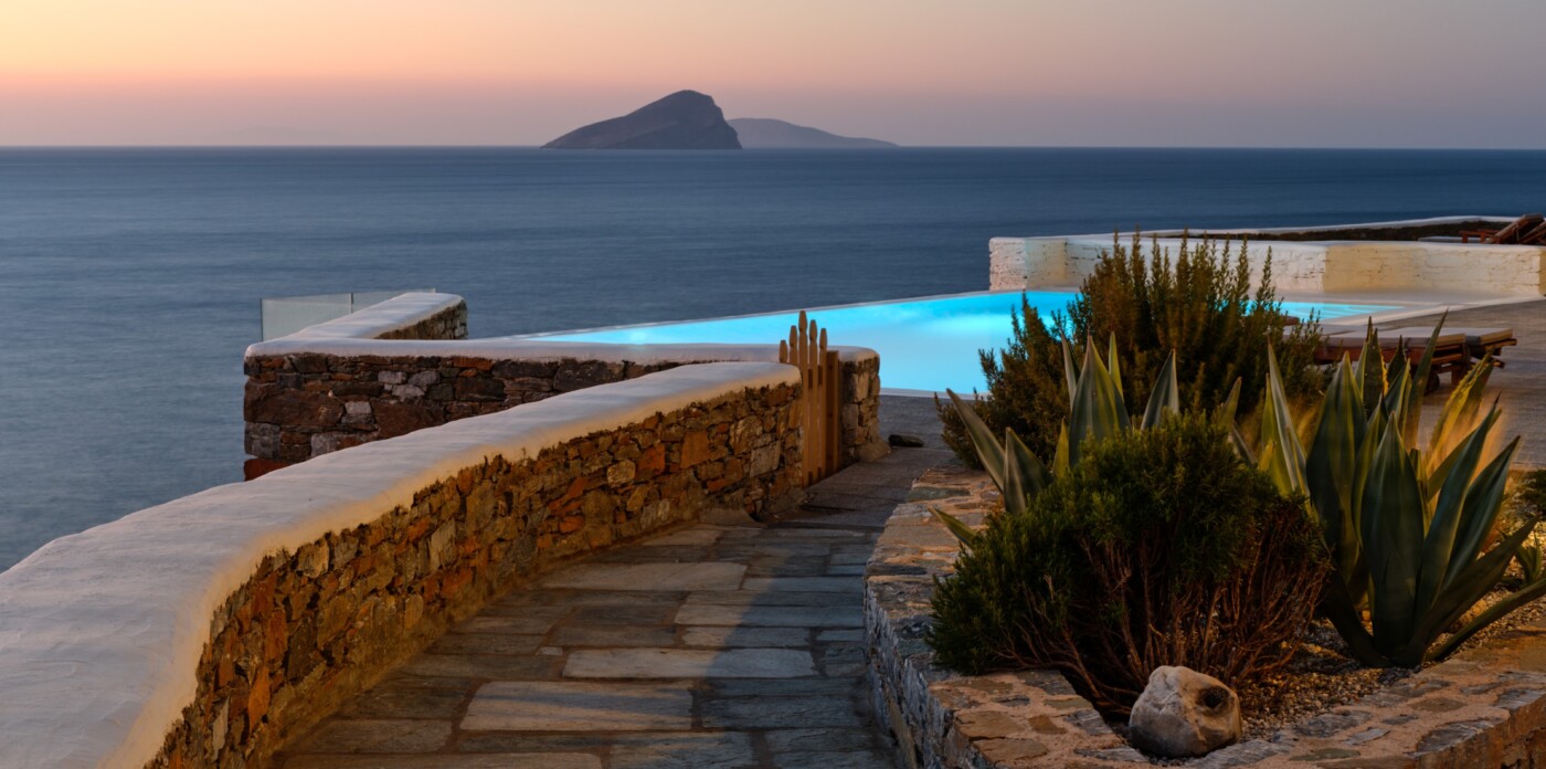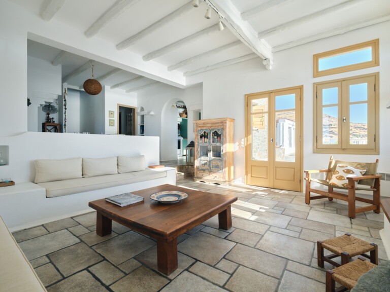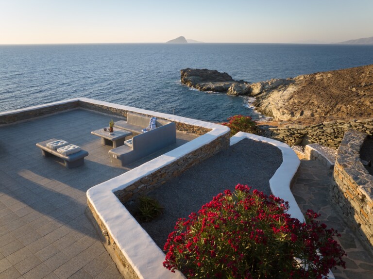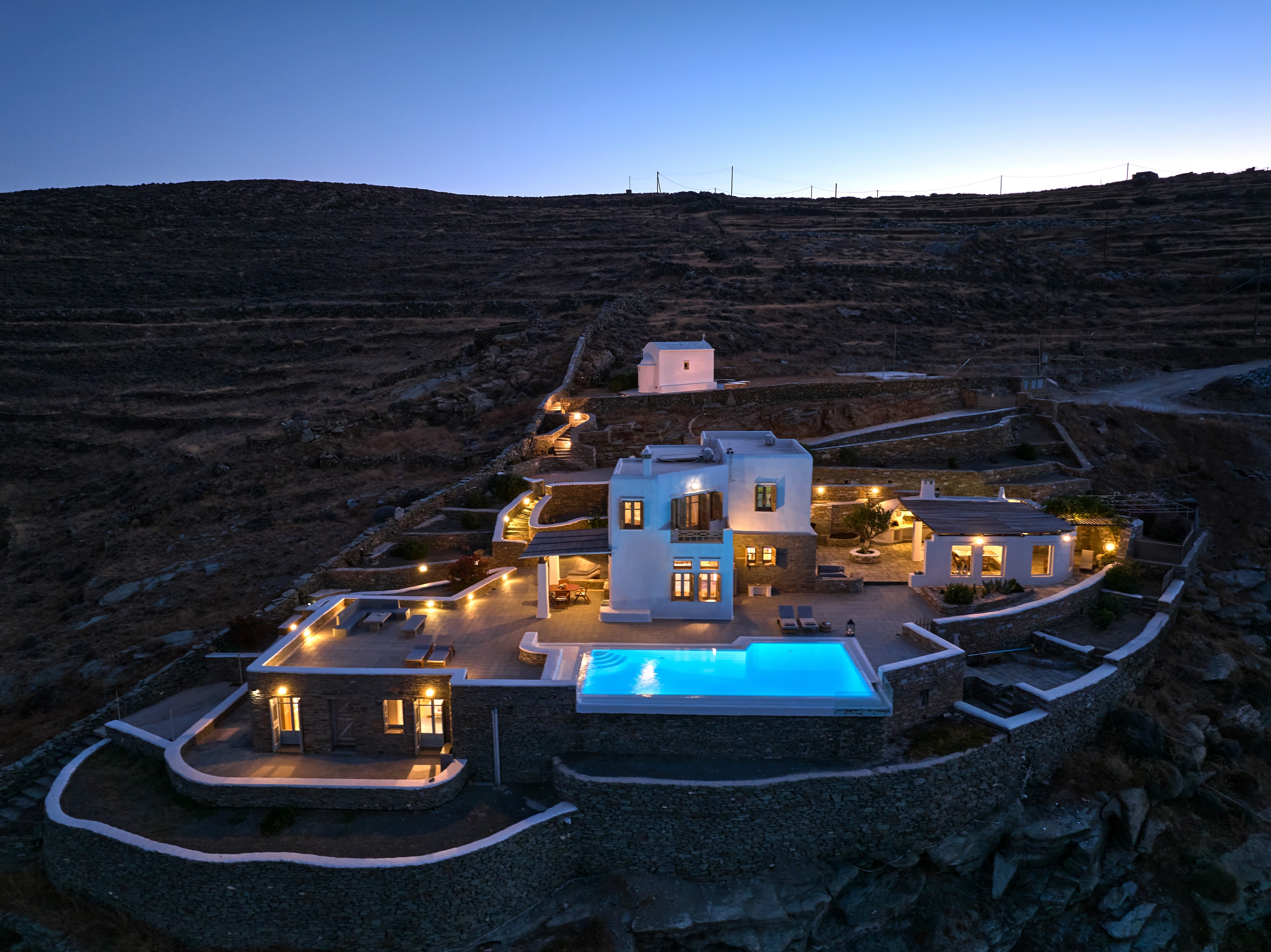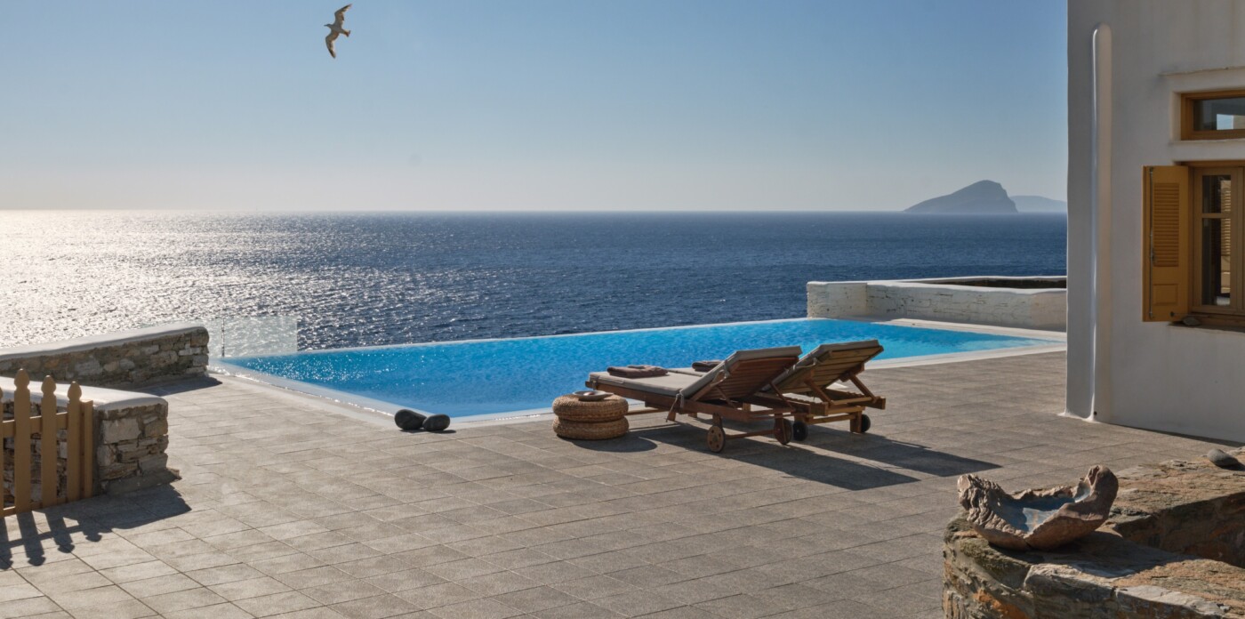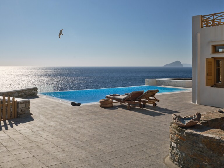 Nestled amidst the landscapes of the Cycladic island of Kythnos, Meraki is a six-bedroom villa with captivating vistas of the Aegean Sea and the picturesque islands of Syros and Serifos. Set within a natural amphitheater, this coastal retreat offers tranquility and serenity, with the gentle waves just a few steps away.