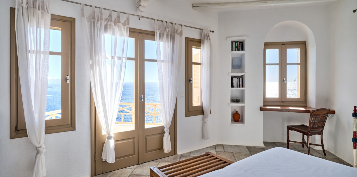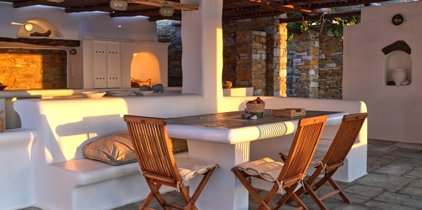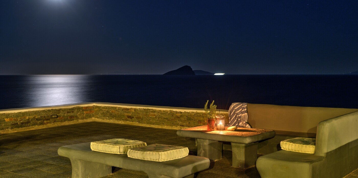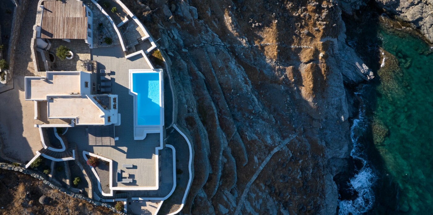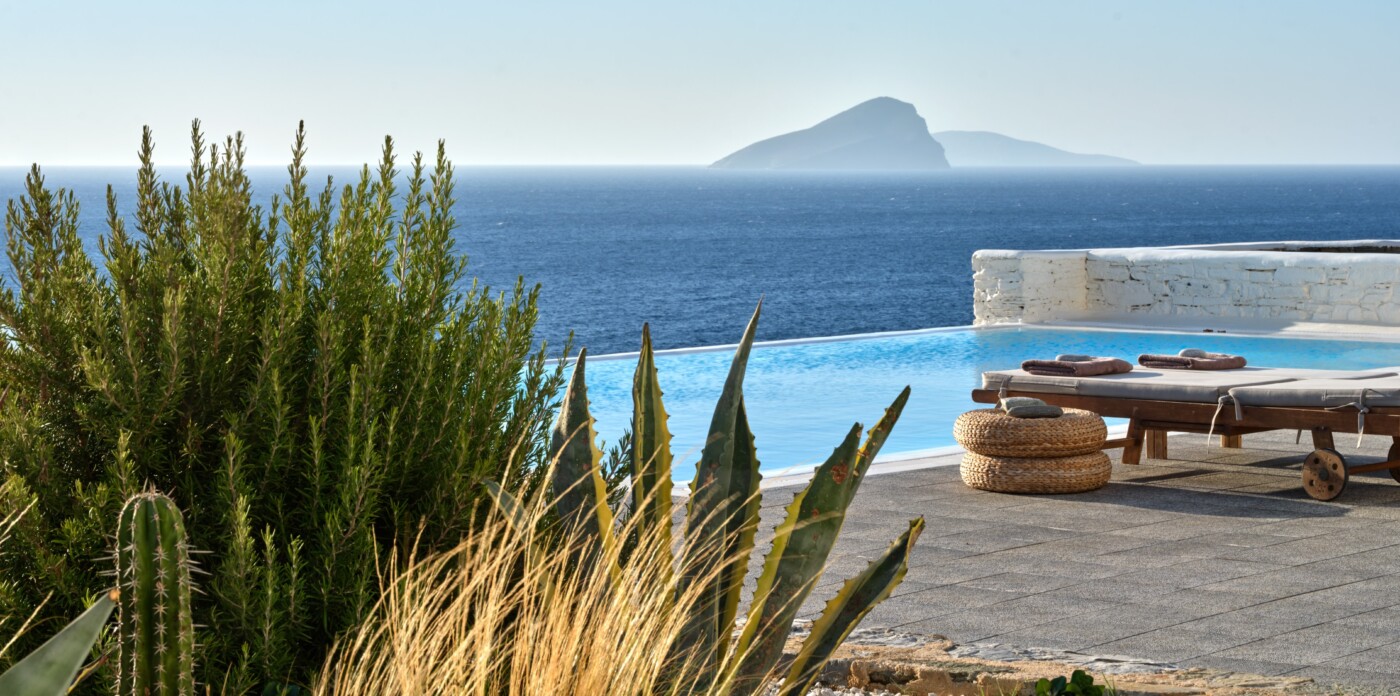 Nestled amidst the landscapes of the Cycladic island of Kythnos, Meraki is a six-bedroom villa with captivating vistas of the Aegean Sea and the picturesque islands of Syros and Serifos. Set within a natural amphitheater, this coastal retreat offers tranquility and serenity, with the gentle waves just a few steps away.