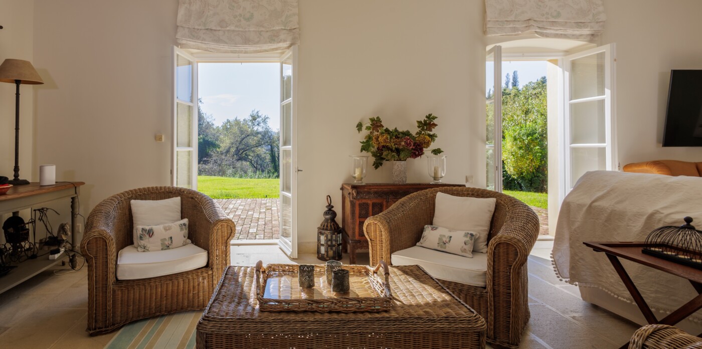 Sunlit interiors and garden-facing rooms create a warm, inviting atmosphere throughout this classic countryside estate.