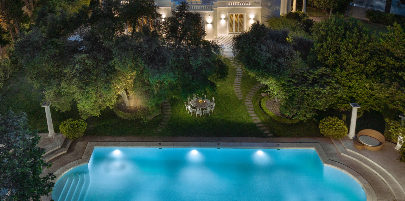 Set within a secluded plot of approximately 2,900 square meters, the property offers a total built area of 915 square meters across four thoughtfully designed levels, complemented by a 70 square meter independent pool house. Surrounded by mature landscaping and enhanced by a beautiful swimming pool, the estate captures the essence of grand Athenian living while remaining perfectly private and discreet.