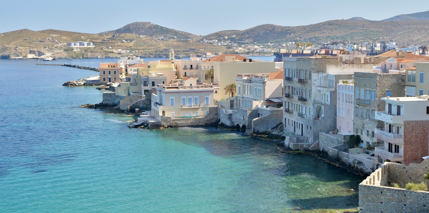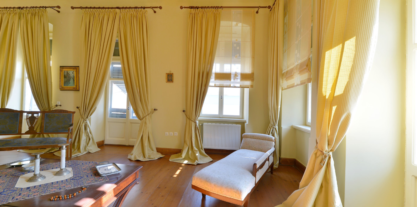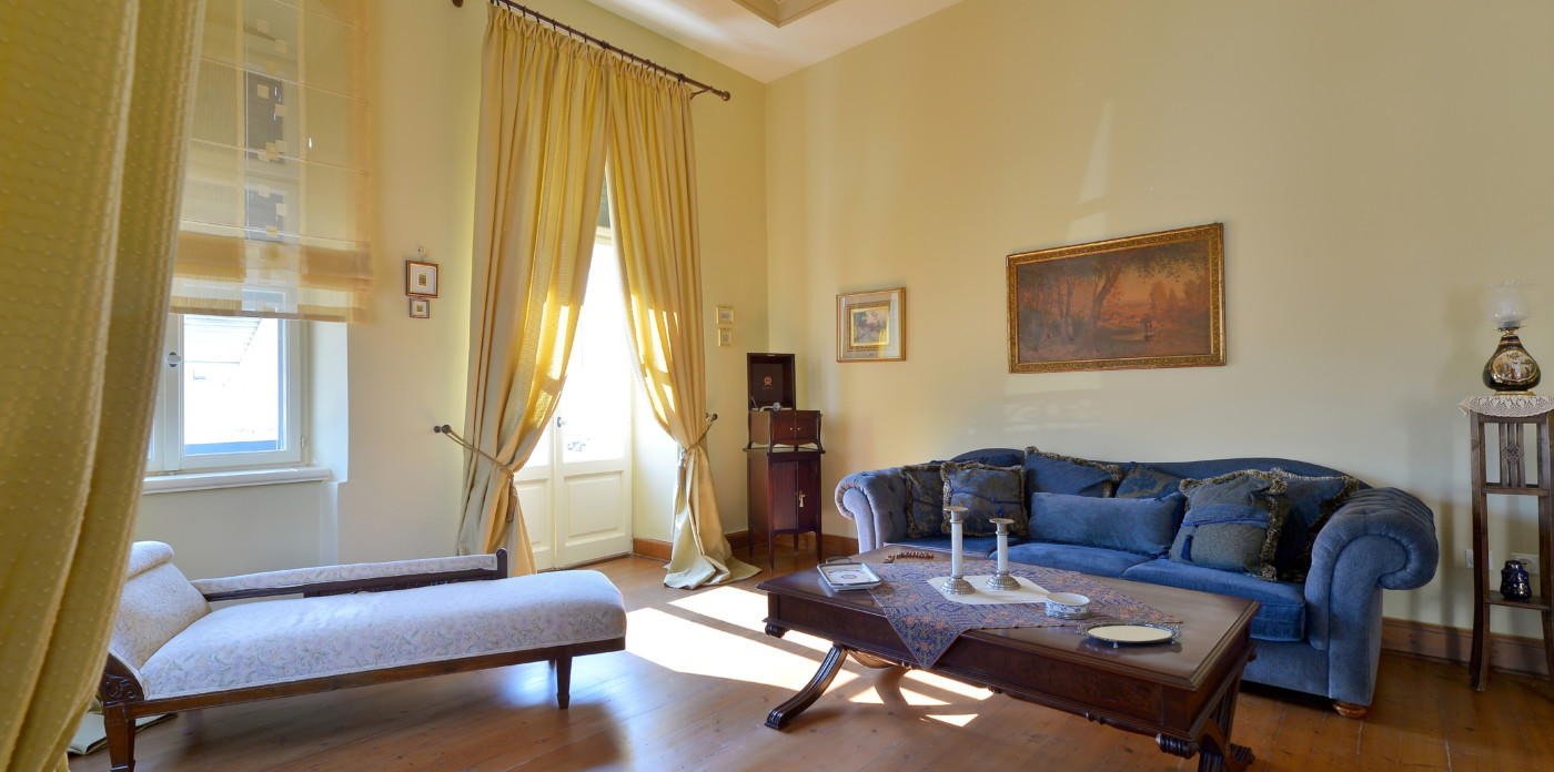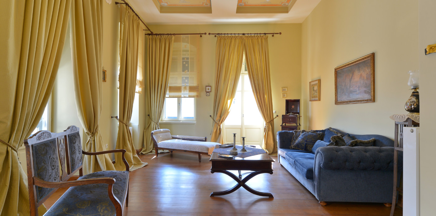 Orchestra, a beautifully restored 19th century neoclassical home showcasing beautiful architectural features unique to the island of Syros. Located in the historic quarter of Ermoupolis, the island’s capital, Orchestra enjoys panoramic sea views from its rooftop terrace.