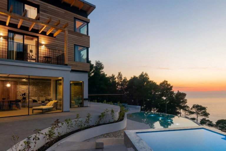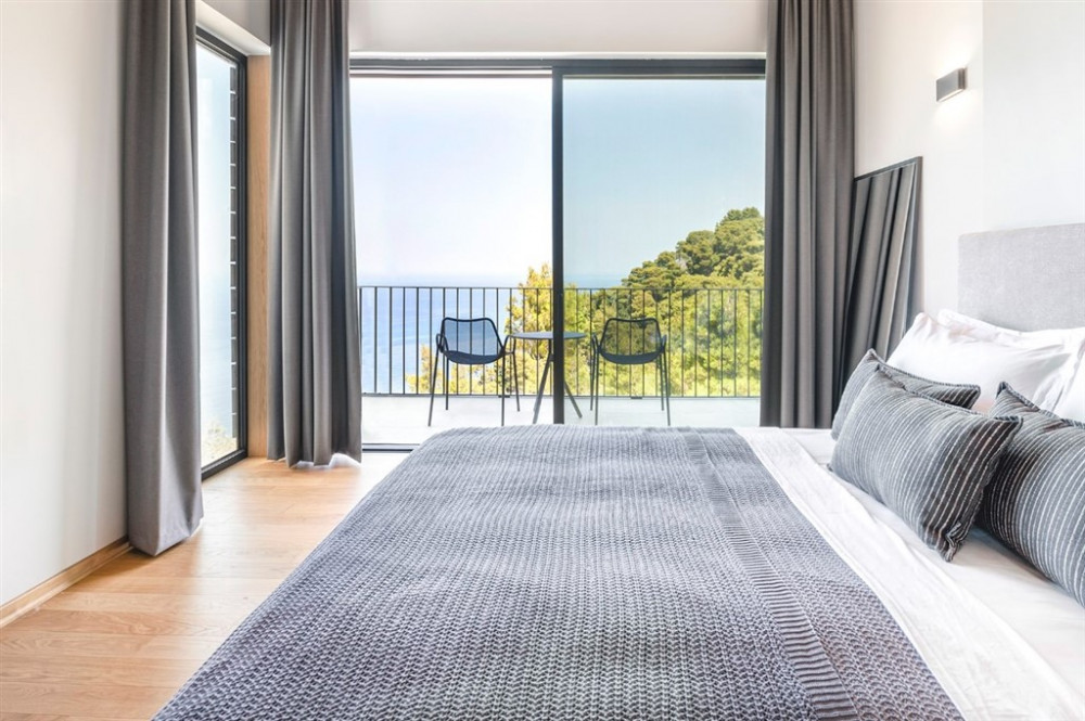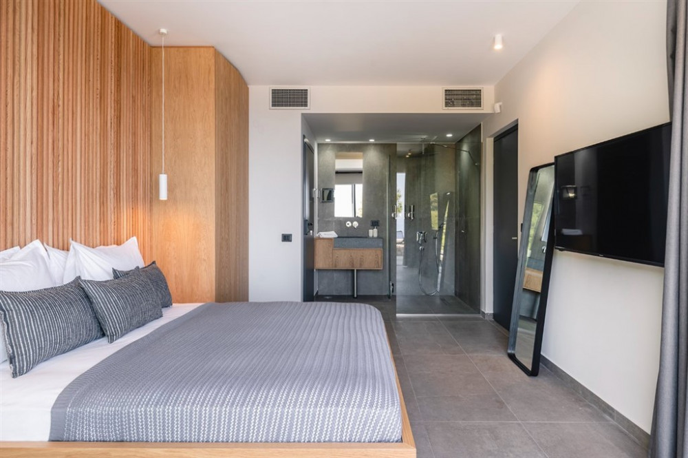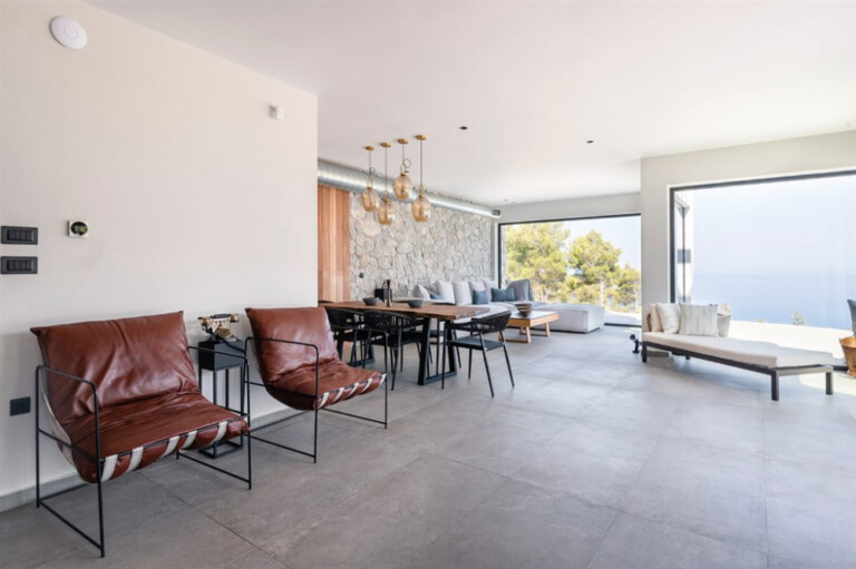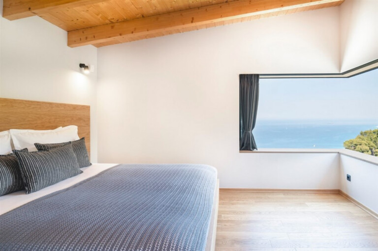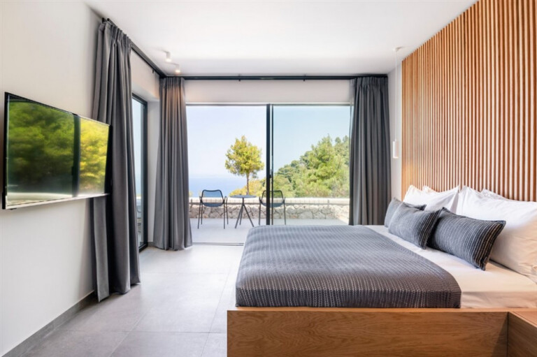 Set above the beaches of Egremni and Porto Katsiki, Orizon holds a quiet vantage point over the Ionian Sea, with open views across the water. Surrounded by woodland in the southwest of Lefkada, it sits naturally within its setting, where stone and wood are balanced by clean, contemporary lines.