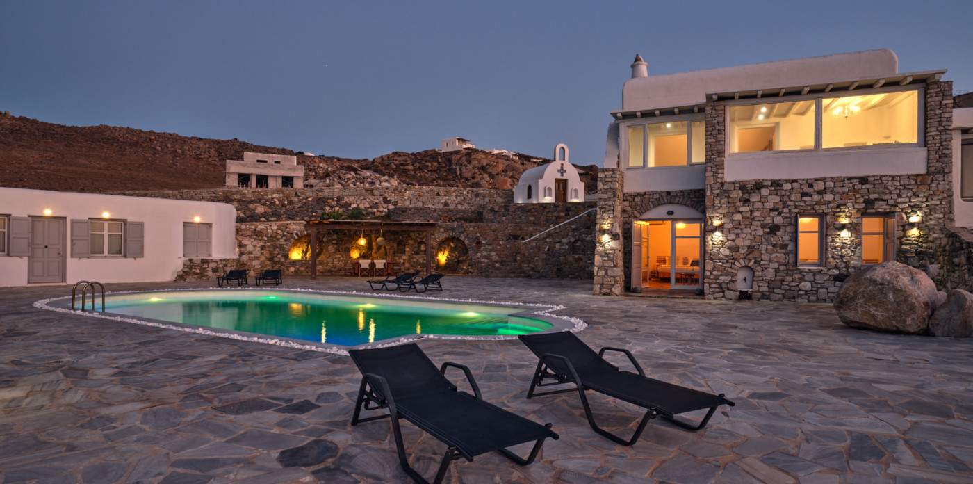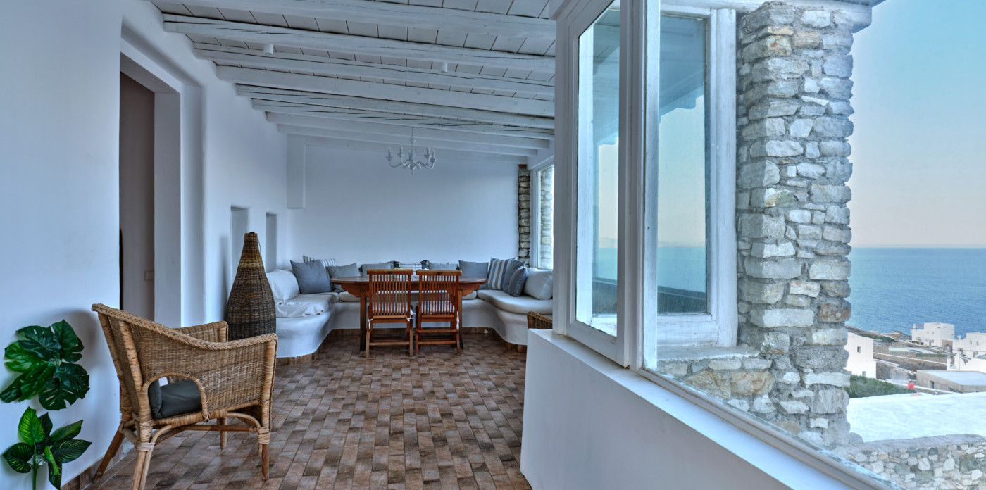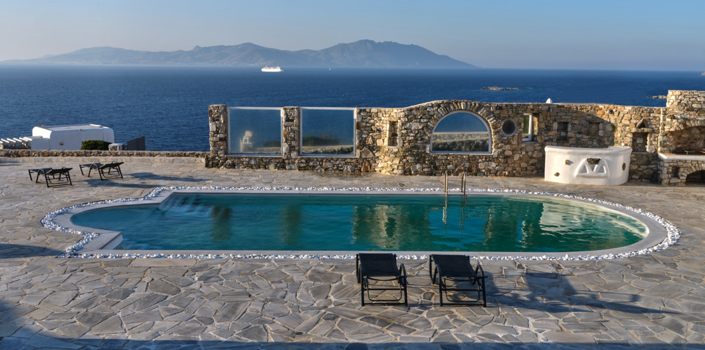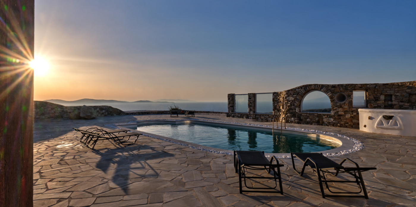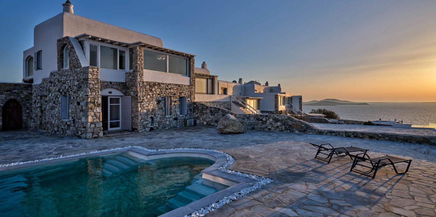 On the island of Mykonos, Ostria is a stone built, traditional villa, surrounded by wide open spaces and breathtaking sea and sunset views.
