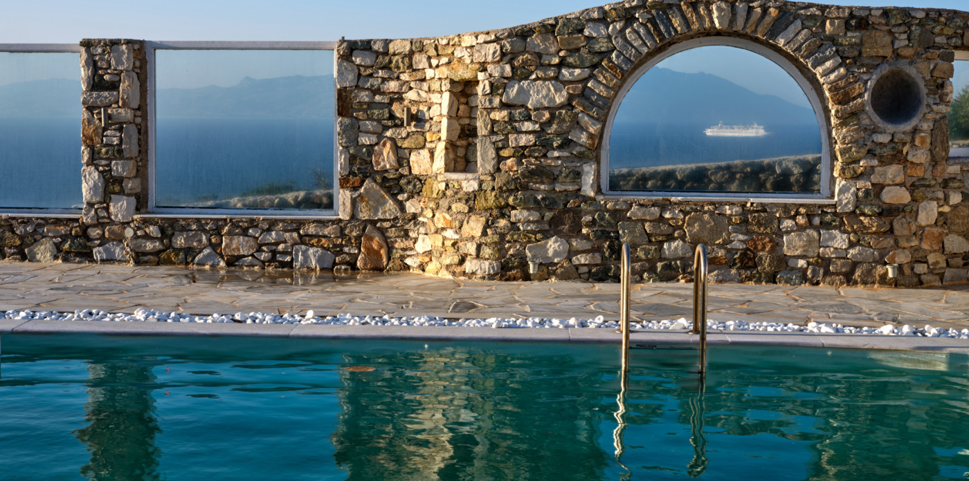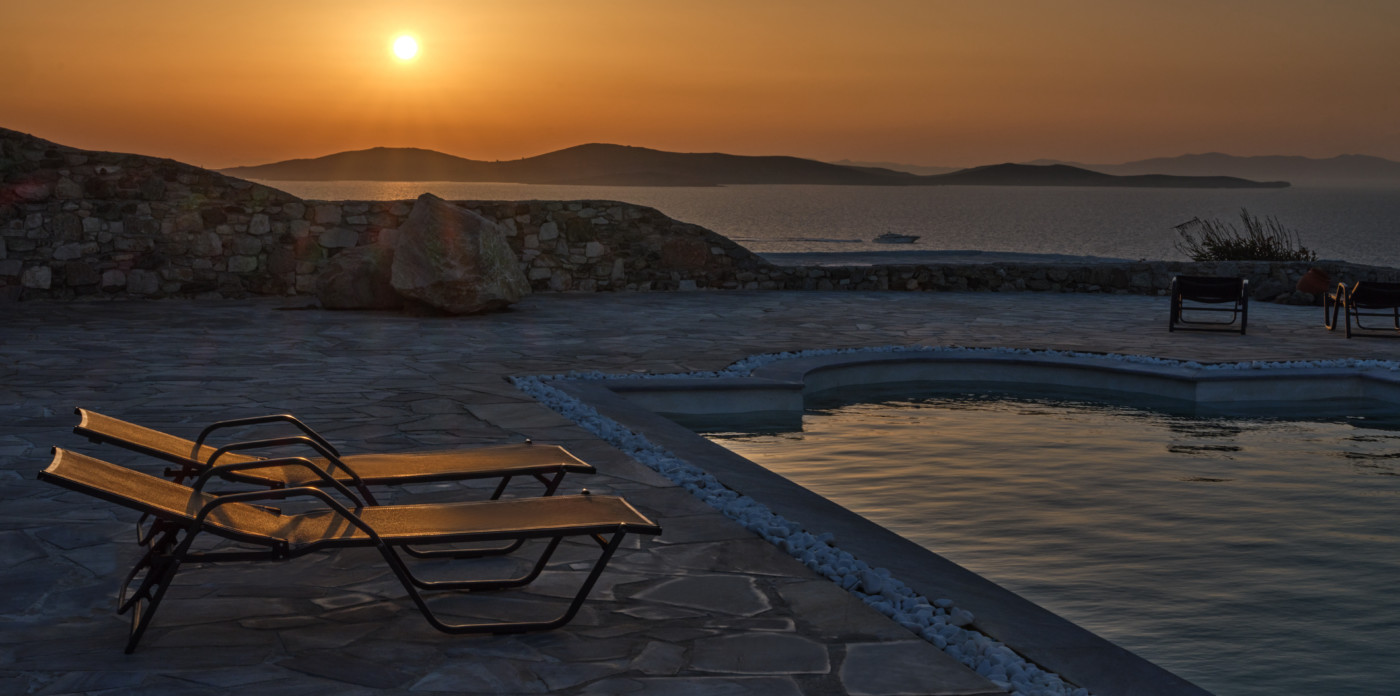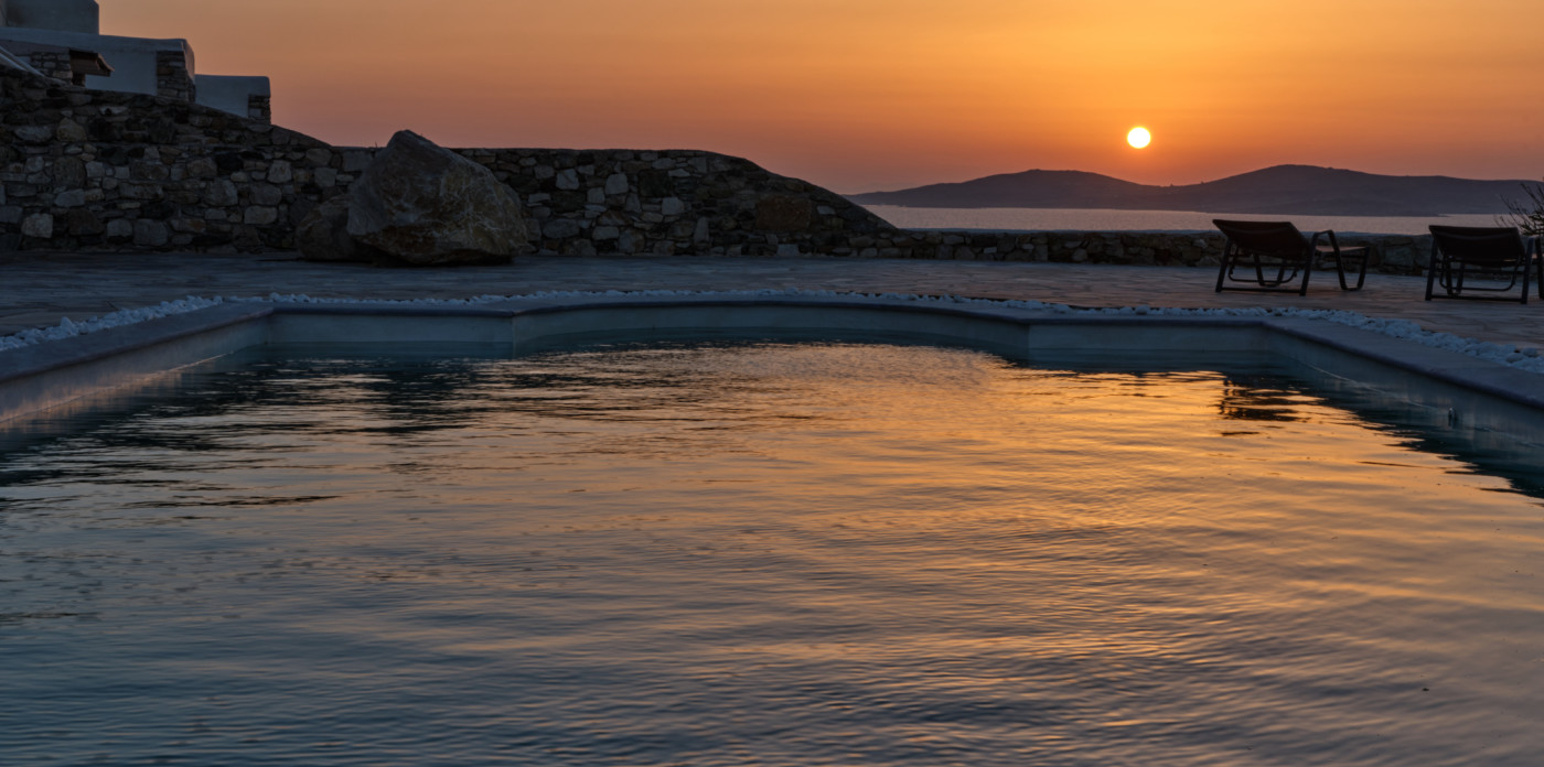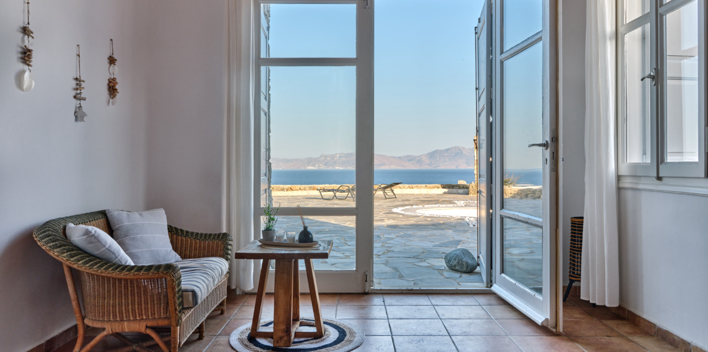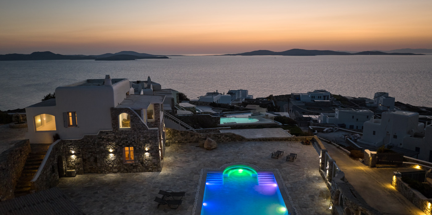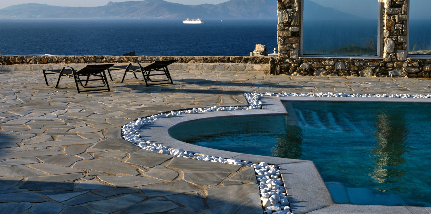 On the island of Mykonos, Ostria is a stone built, traditional villa, surrounded by wide open spaces and breathtaking sea and sunset views.