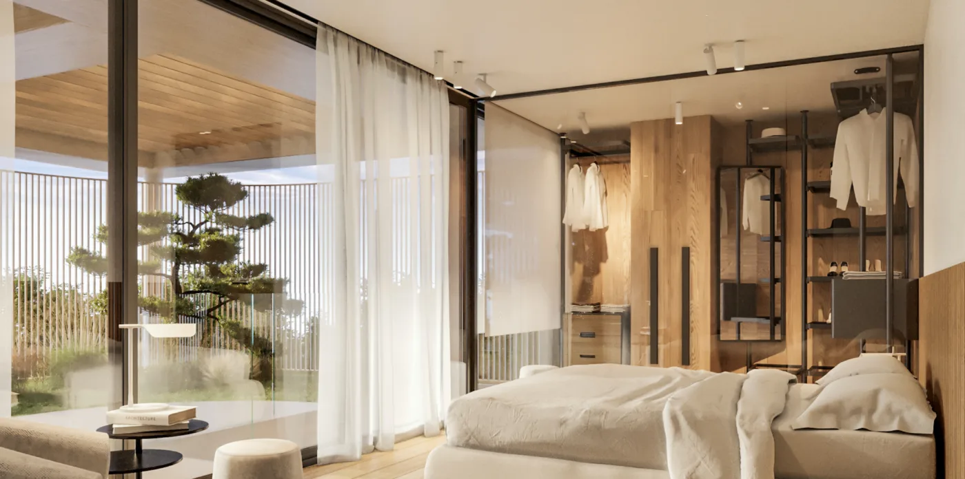 The spacious living environment at Pavilion offers four master bedrooms with en-suite bathrooms plus two guest bathrooms. There is a shared gym, a spa with a sauna, a jacuzzi and ice bath, making it a complete wellness sanctuary. The underground parking with electric charging stations, along with top-notch security and home automation, are extra highlights that ensure convenience and safety.