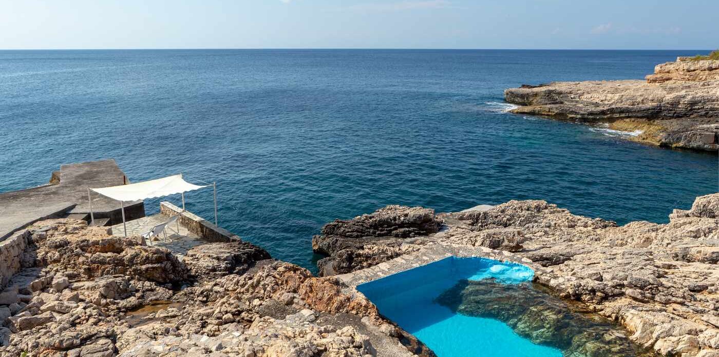 A short pathway meanders through the grounds down to a jetty and a remarkable seawater pool carved from natural rocks, where steps provide direct access to the crystalline waters. The villa’s privileged location along the untouched coastline makes it an exceptional spot for snorkelling and exploration. For those seeking to discover hidden beaches and secluded coves, a boat is the perfect companion for adventure.