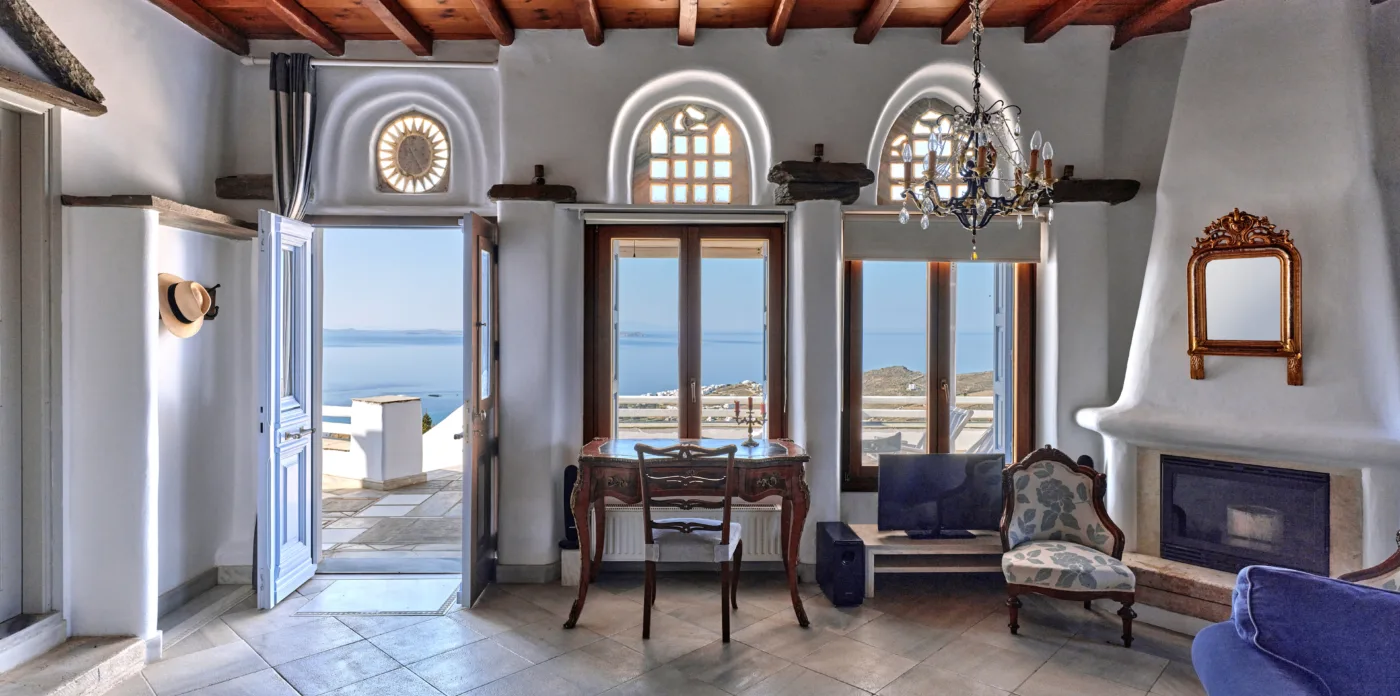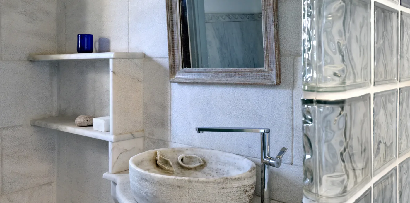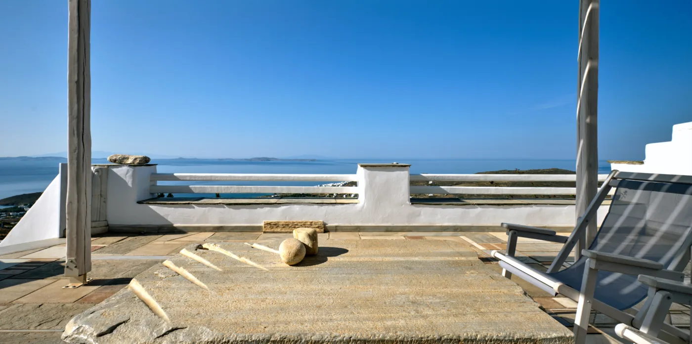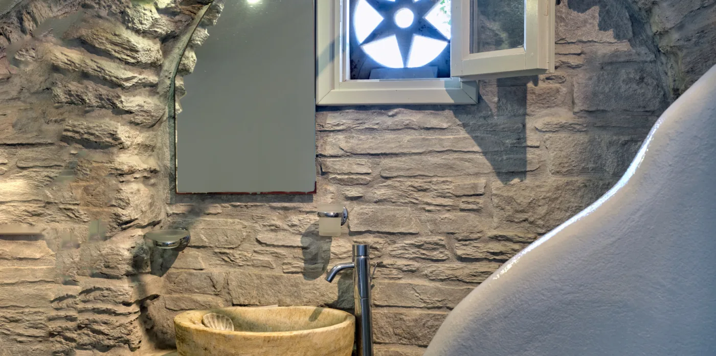 Pierrette was built with great care and attention to detail in 2009 by local builders and craftsmen, bestowing the property with a traditional sense of Tinos. Among them are engravings by famous local sculptor Christos Santamouris, who created the floor of the main veranda from marble and stone. Marble is also used to great effect in the living room and main kitchen as well as both of the first floor bathrooms.
