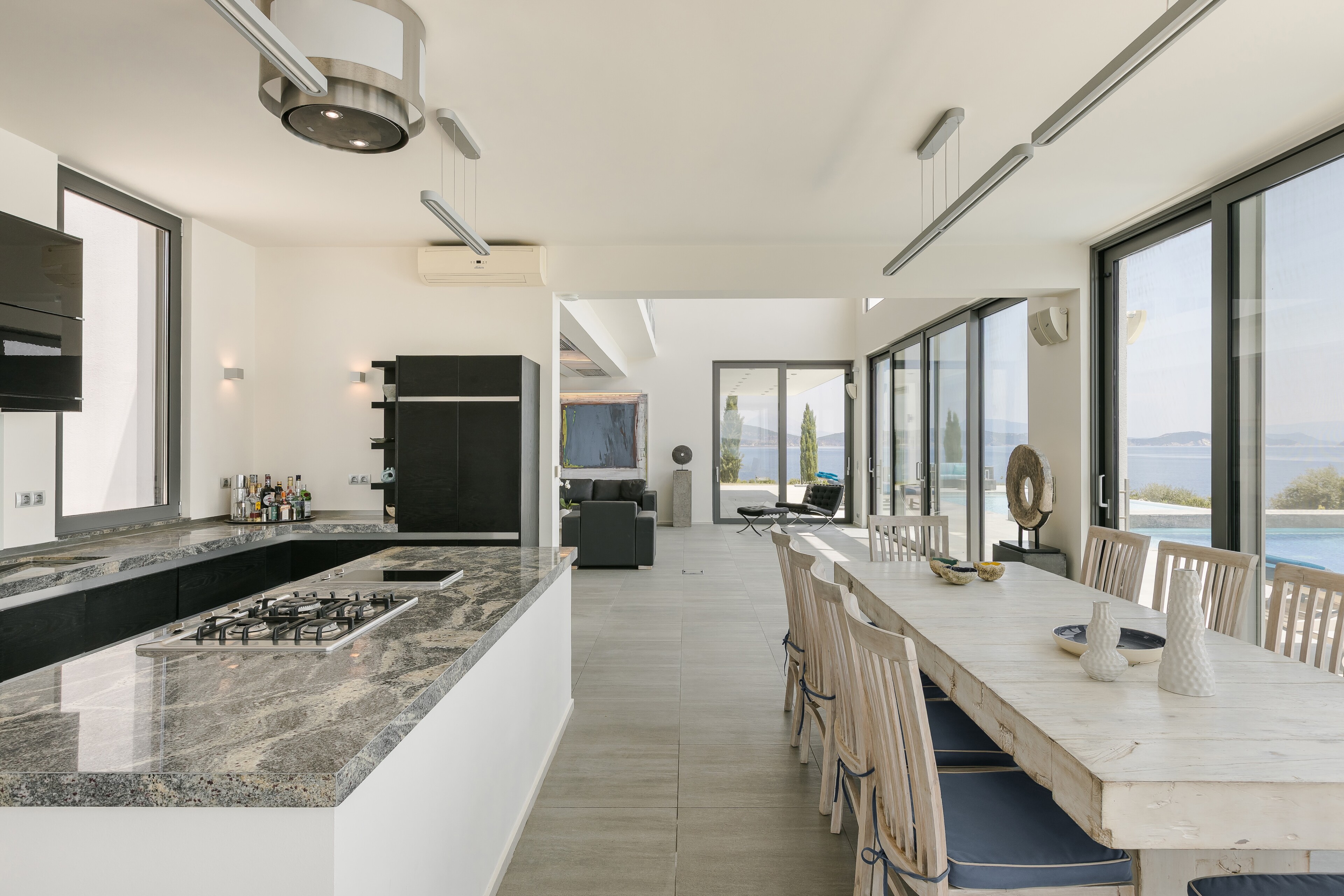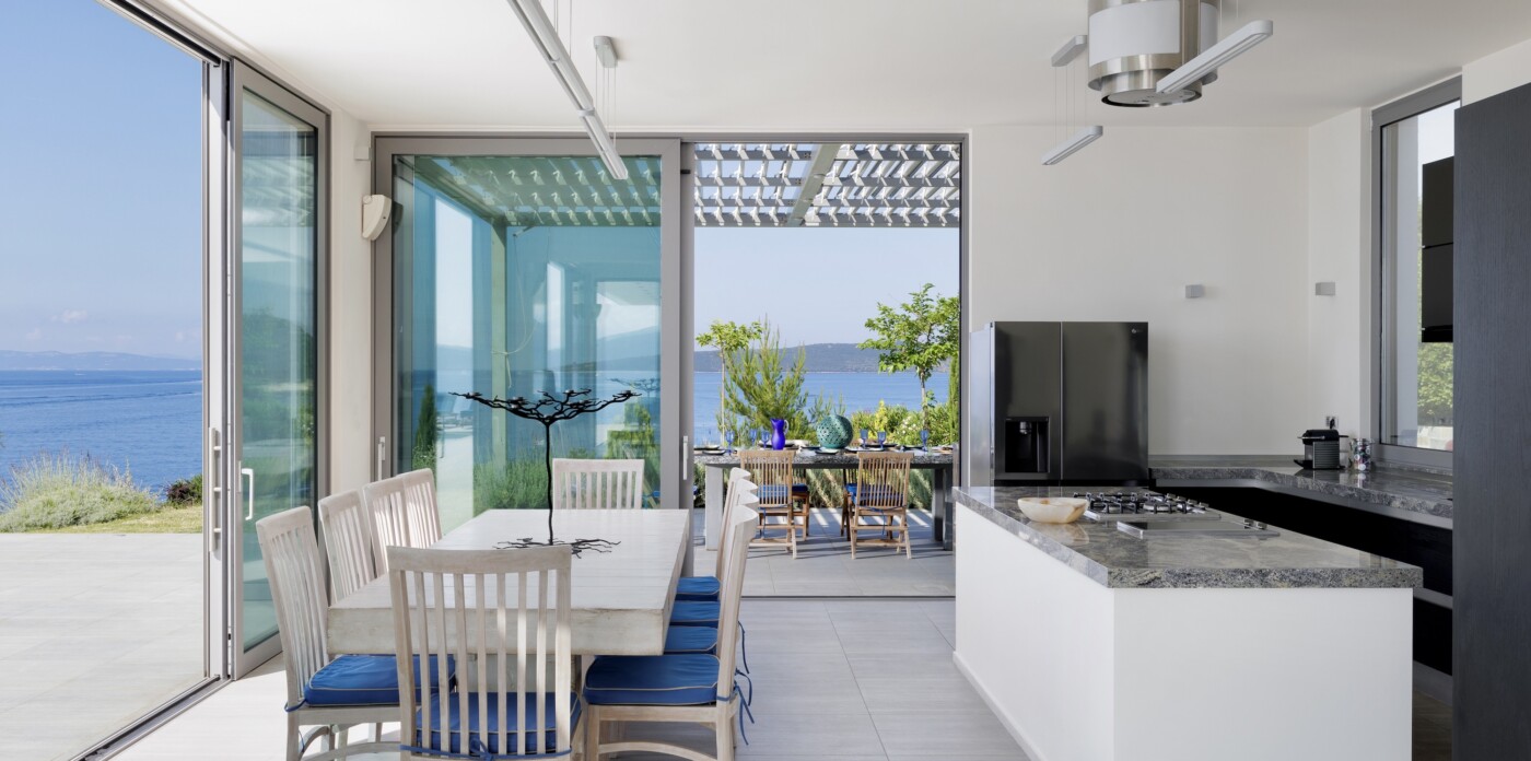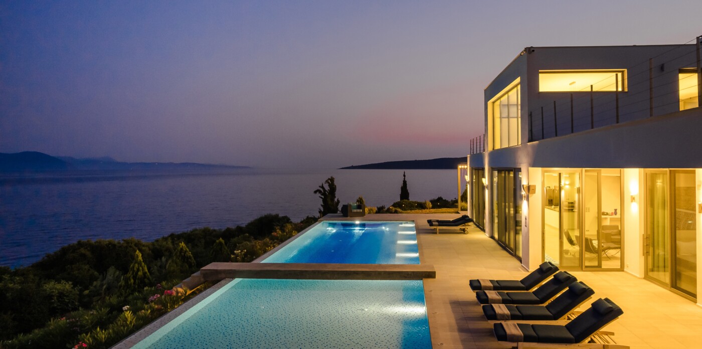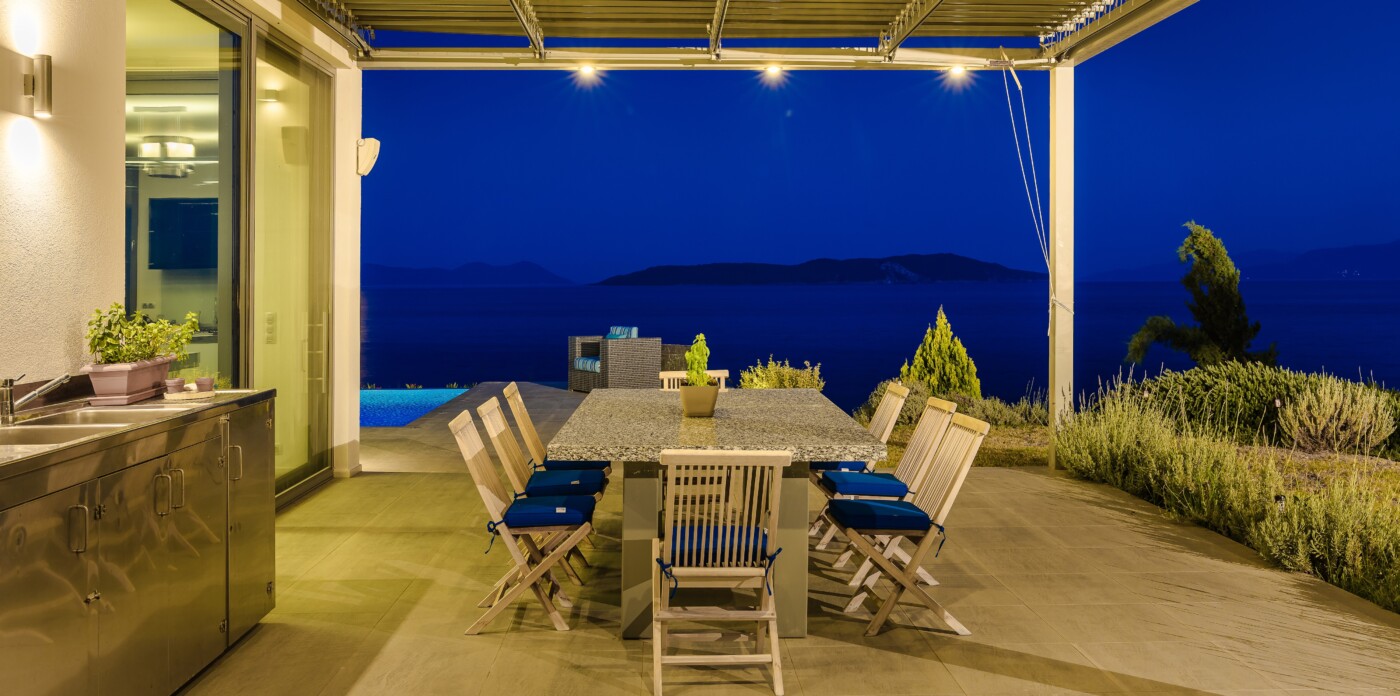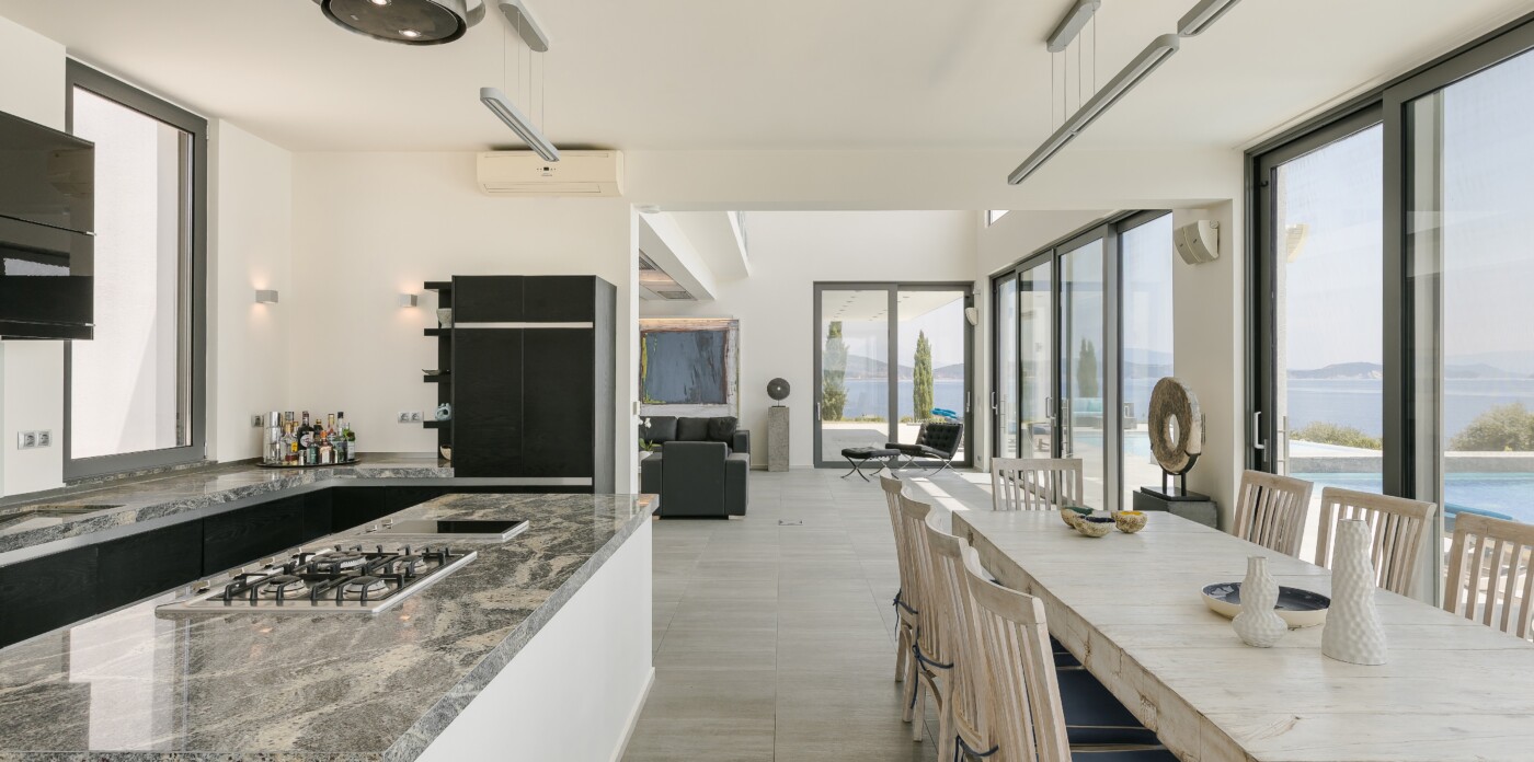 Multiple terraces provide ideal spots for dining, lounging, and entertaining, and barbecue area encourages long, leisurely meals in the open air. At the heart of it all is the stunning infinity pool, seemingly suspended above the sea and offering mesmerising sunset views that shift in colour and intensity as the day fades into evening.