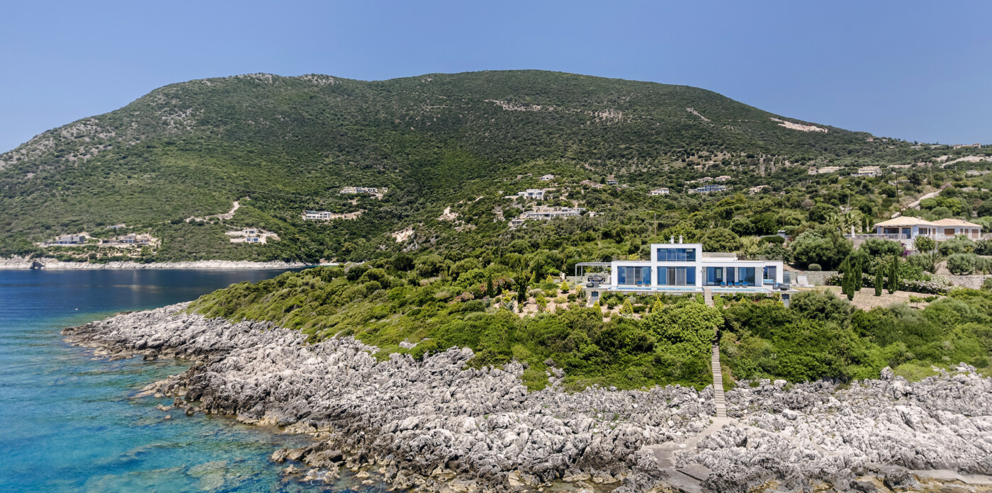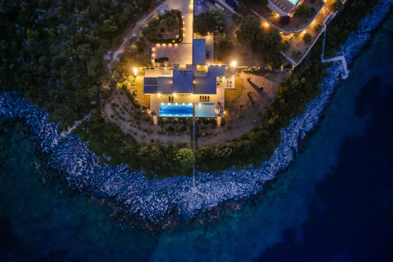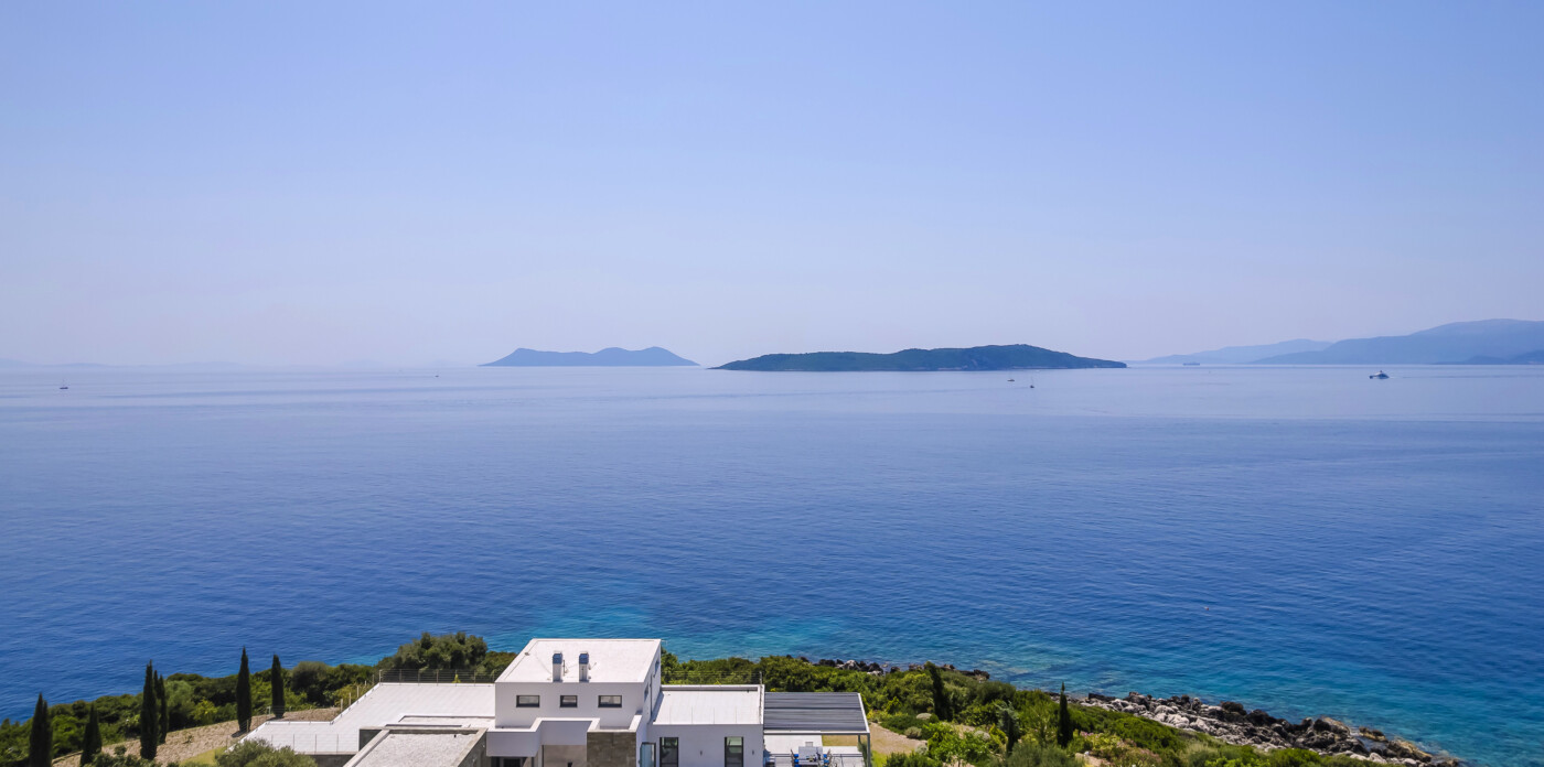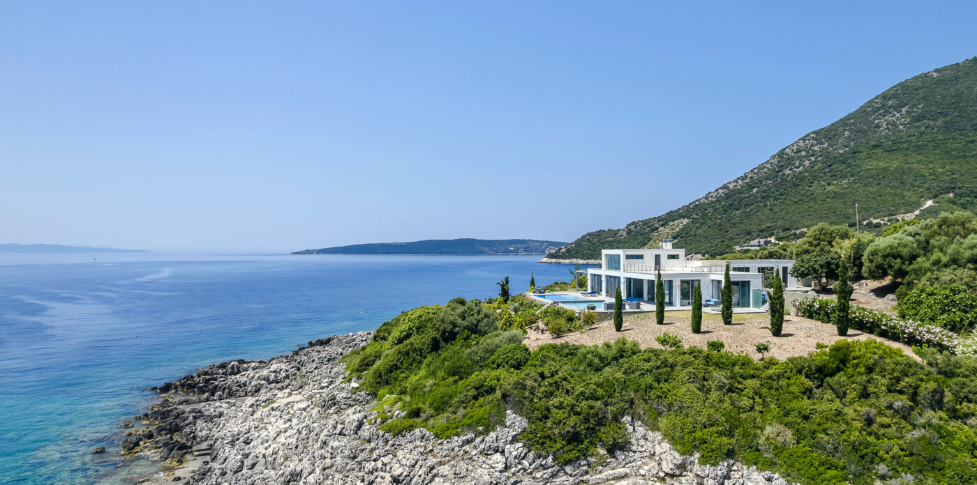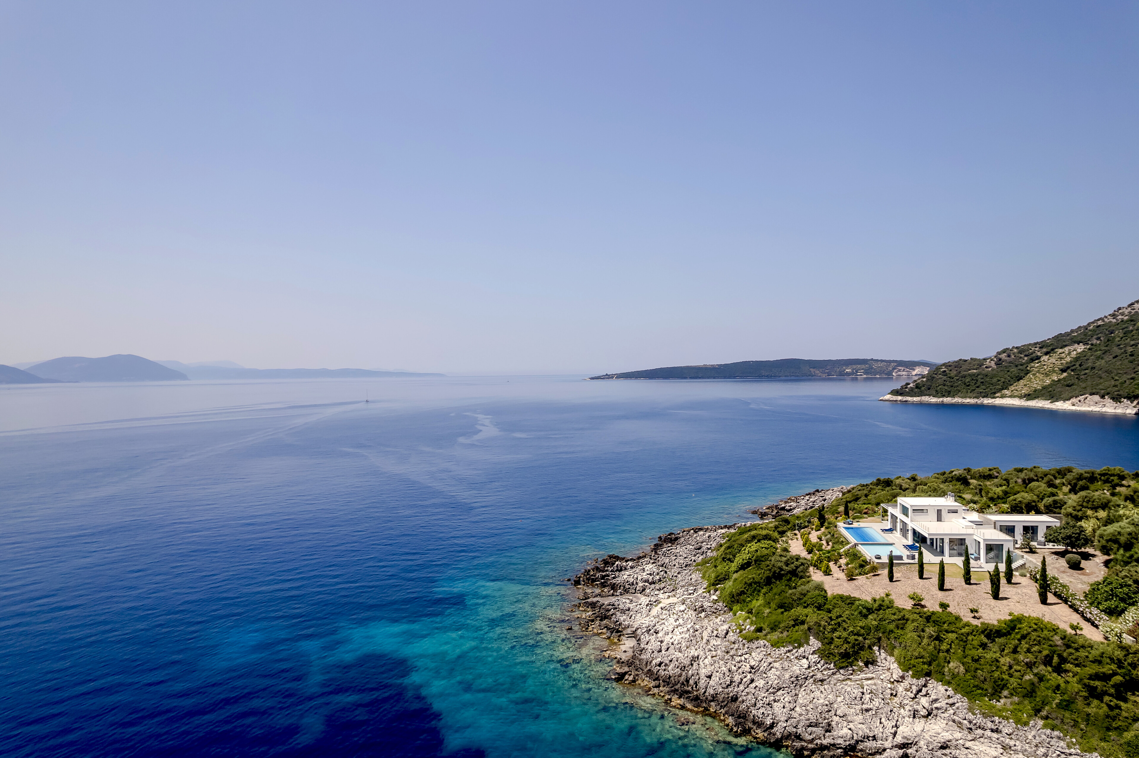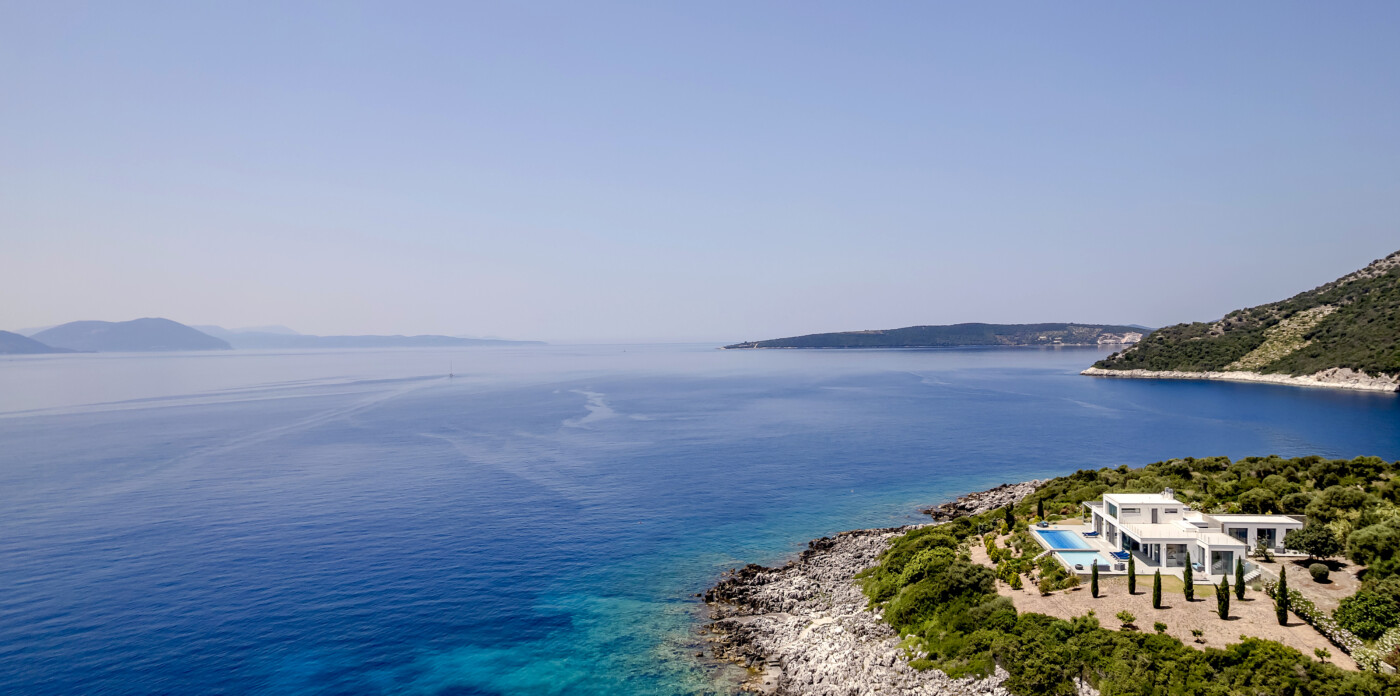Portrait is a rare waterfront retreat set in one of the most privileged locations on the Ionian island of Lefkada. Found at the tip of a private peninsula, the property enjoys uninterrupted, panoramic views spanning 280 degrees across the sea to the legendary islands of Ithaca, Cephalonia, Meganisi, Kalamos, Kastos, and Akoudi. Its extraordinary positioning not only ensures privacy and tranquility, but also south-facing orientation—an uncommon feature—bathing the home in sunlight from dawn until dusk.