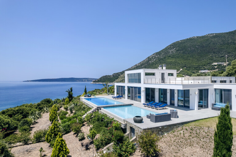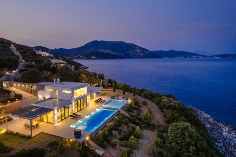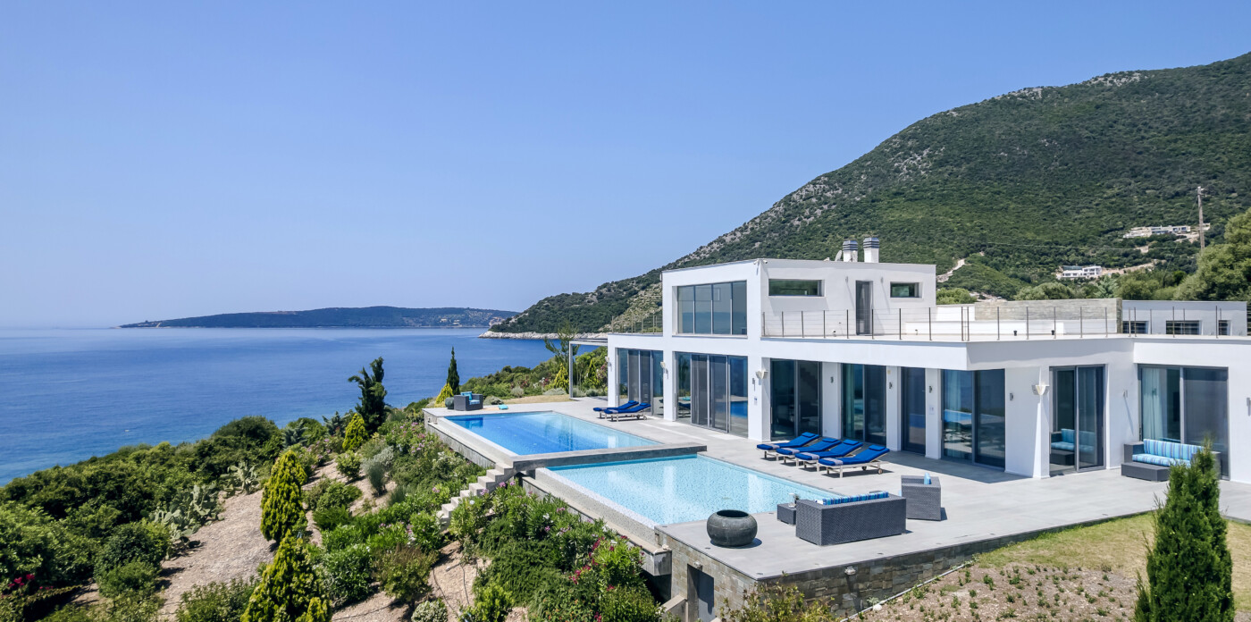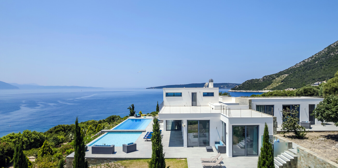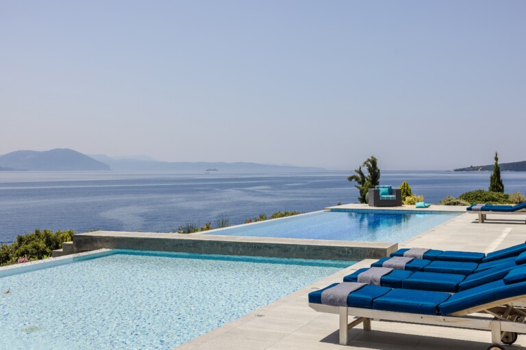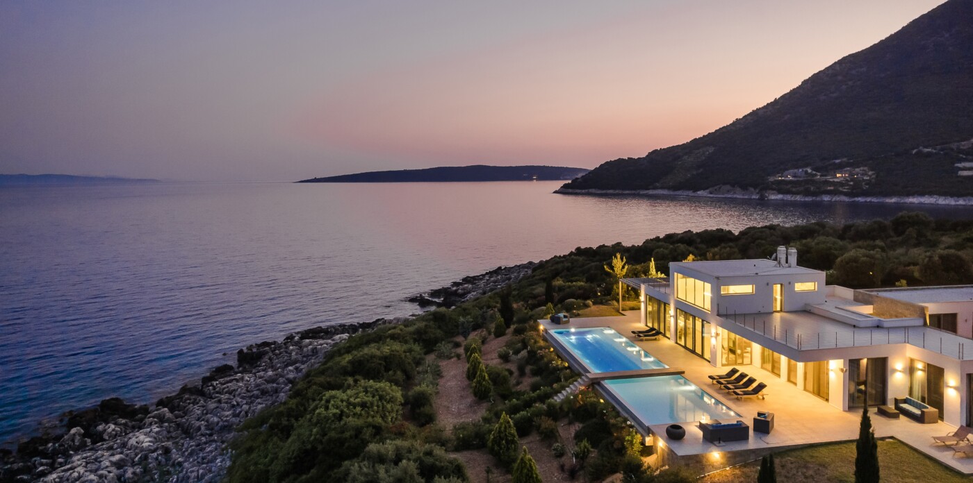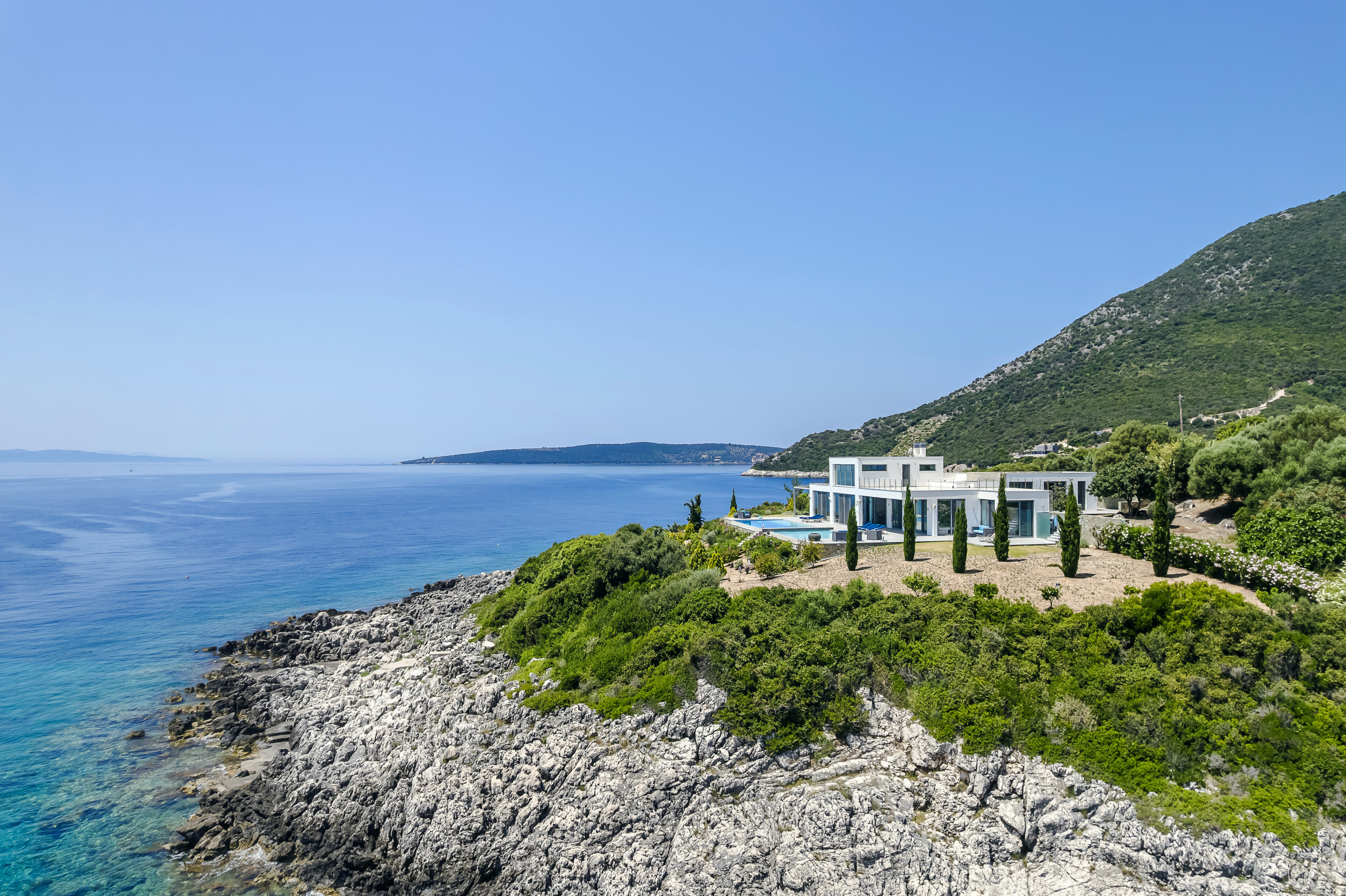 Portrait is a rare waterfront retreat set in one of the most privileged locations on the Ionian island of Lefkada. Found at the tip of a private peninsula, the property enjoys uninterrupted, panoramic views spanning 280 degrees across the sea to the legendary islands of Ithaca, Cephalonia, Meganisi, Kalamos, Kastos, and Akoudi. Its extraordinary positioning not only ensures privacy and tranquility, but also south-facing orientation—an uncommon feature—bathing the home in sunlight from dawn until dusk.