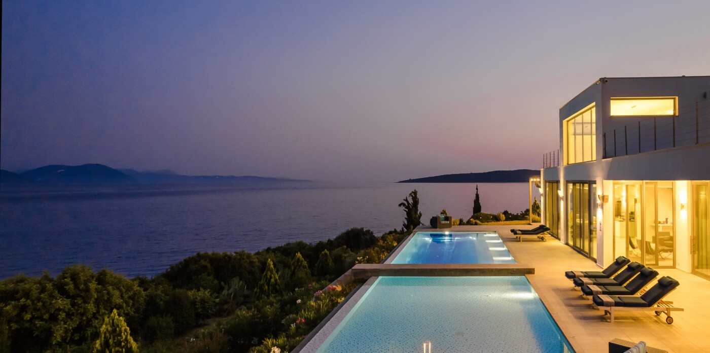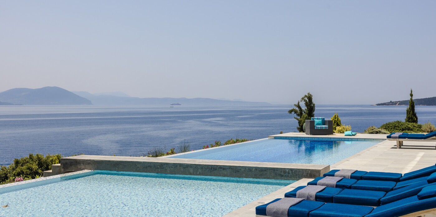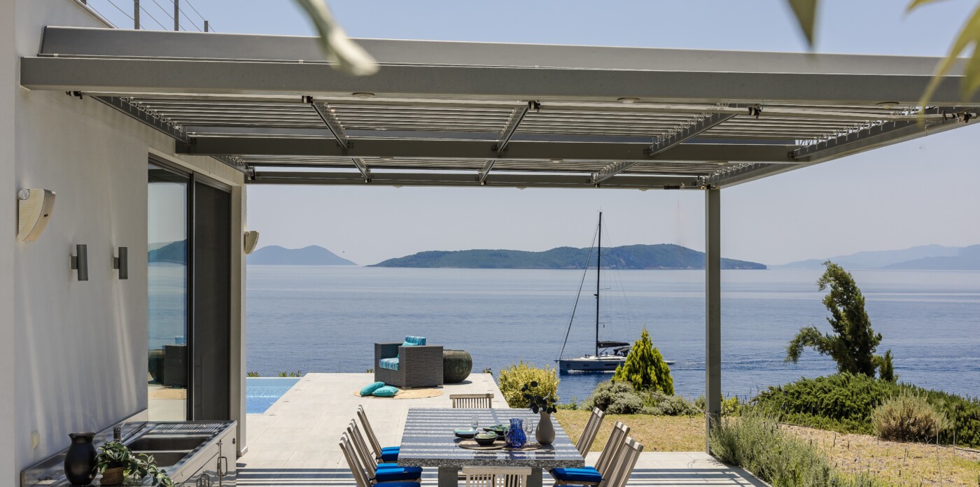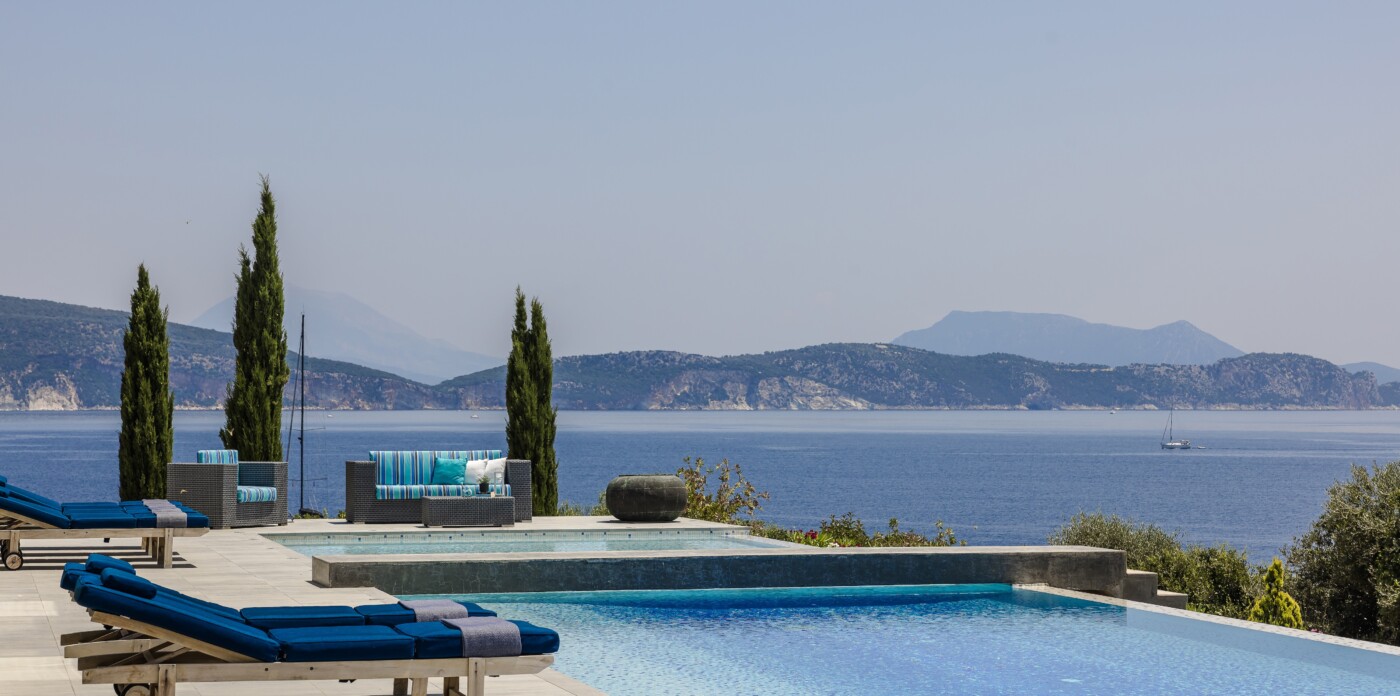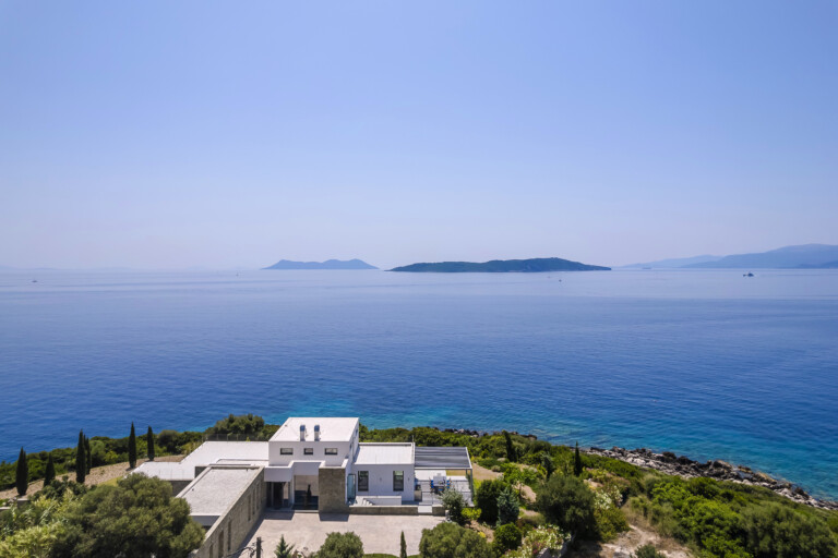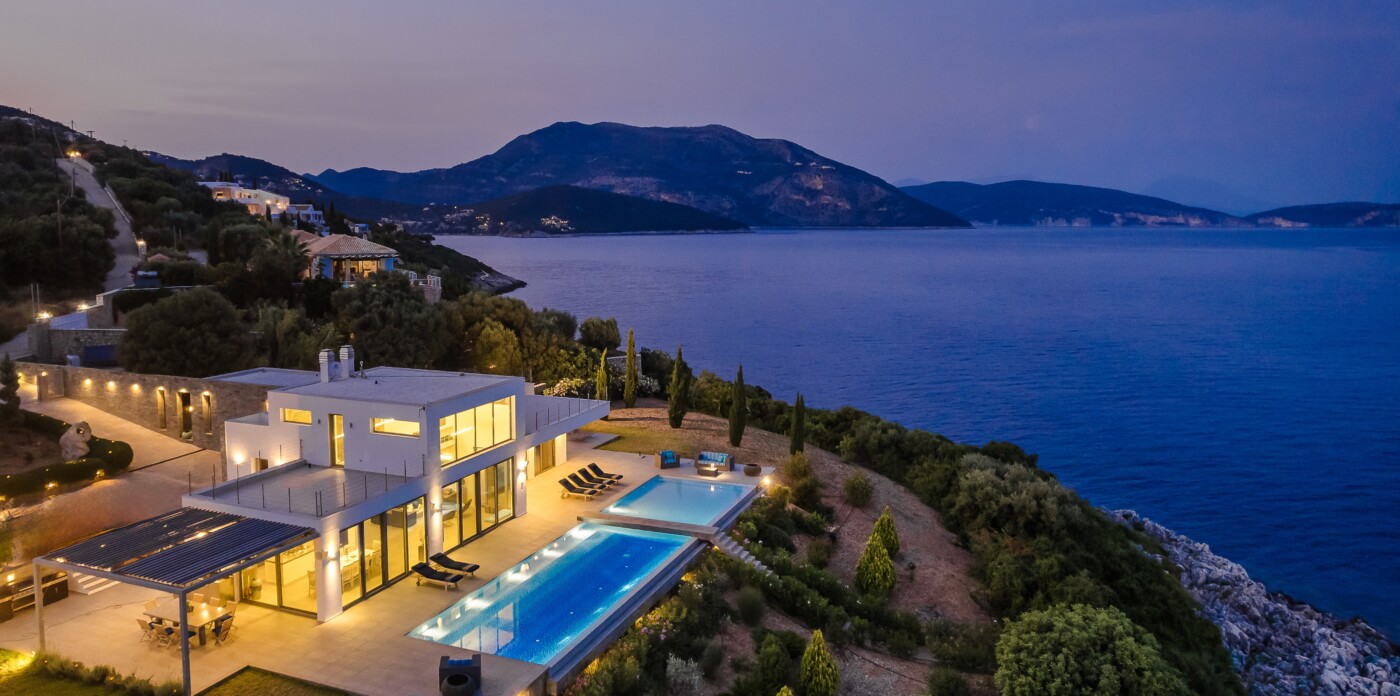 Portrait is a rare waterfront retreat set in one of the most privileged locations on the Ionian island of Lefkada. Found at the tip of a private peninsula, the property enjoys uninterrupted, panoramic views spanning 280 degrees across the sea to the legendary islands of Ithaca, Cephalonia, Meganisi, Kalamos, Kastos, and Akoudi. Its extraordinary positioning not only ensures privacy and tranquility, but also south-facing orientation—an uncommon feature—bathing the home in sunlight from dawn until dusk.