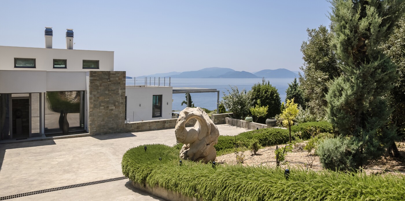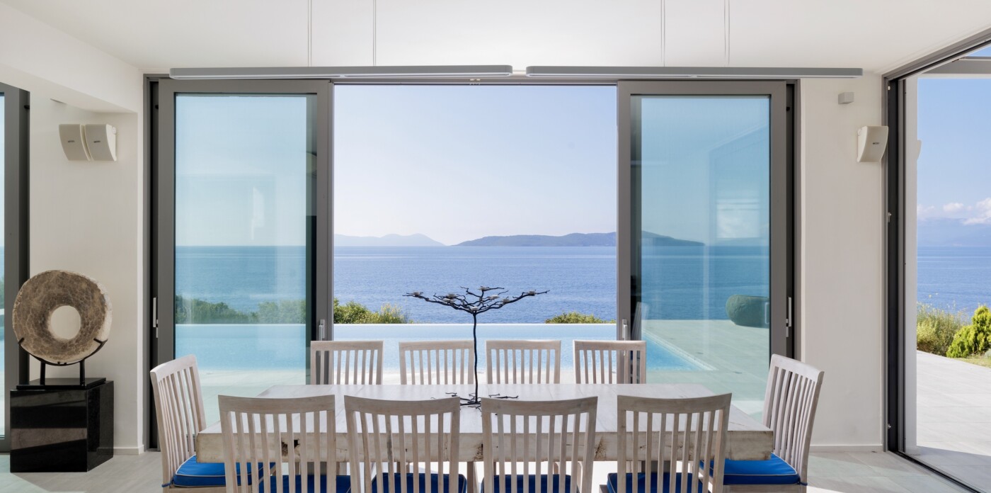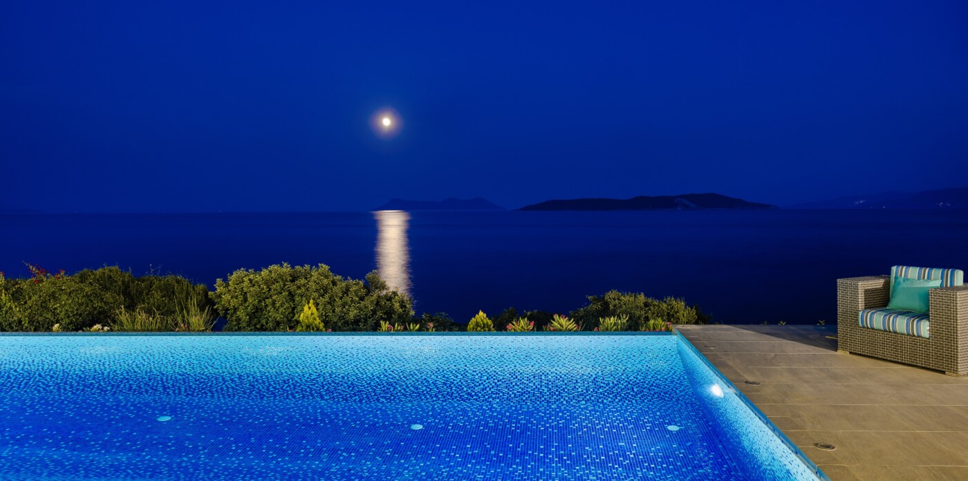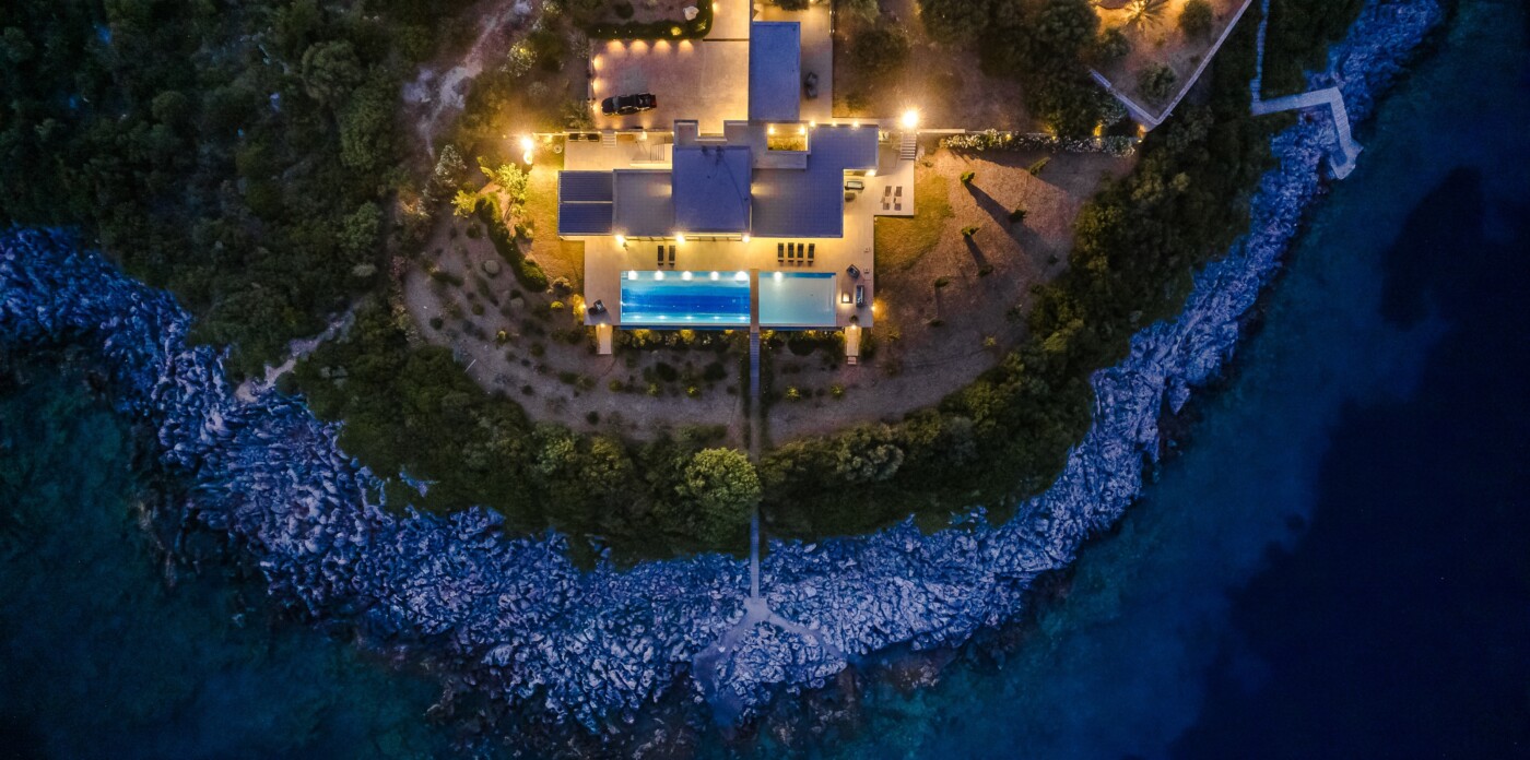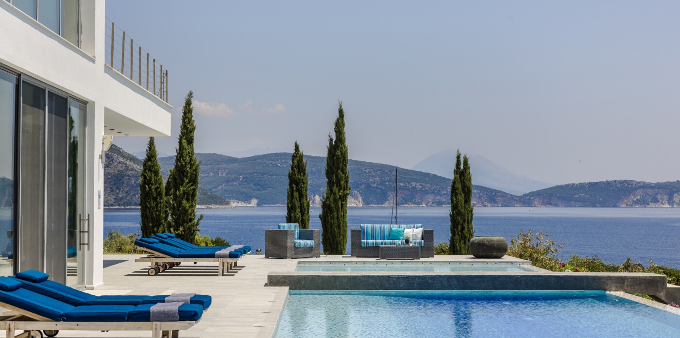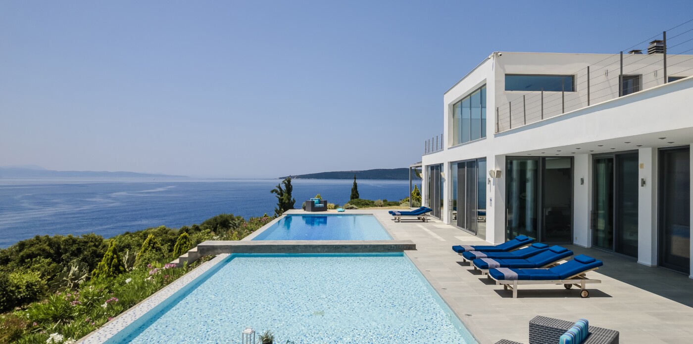 Portrait is a rare waterfront retreat set in one of the most privileged locations on the Ionian island of Lefkada. Found at the tip of a private peninsula, the property enjoys uninterrupted, panoramic views spanning 280 degrees across the sea to the legendary islands of Ithaca, Cephalonia, Meganisi, Kalamos, Kastos, and Akoudi. Its extraordinary positioning not only ensures privacy and tranquility, but also south-facing orientation—an uncommon feature—bathing the home in sunlight from dawn until dusk.