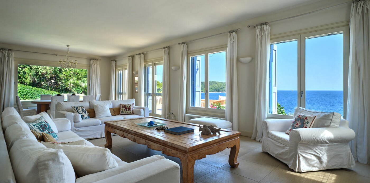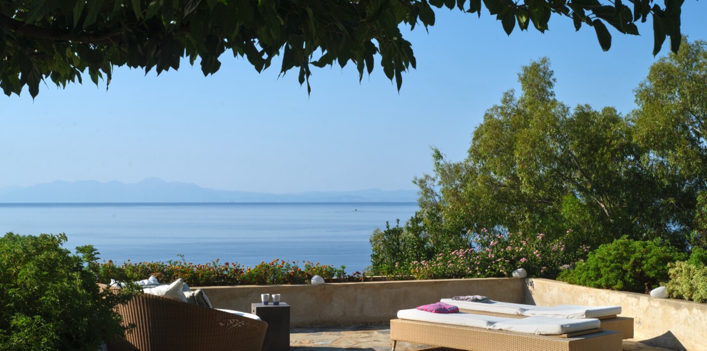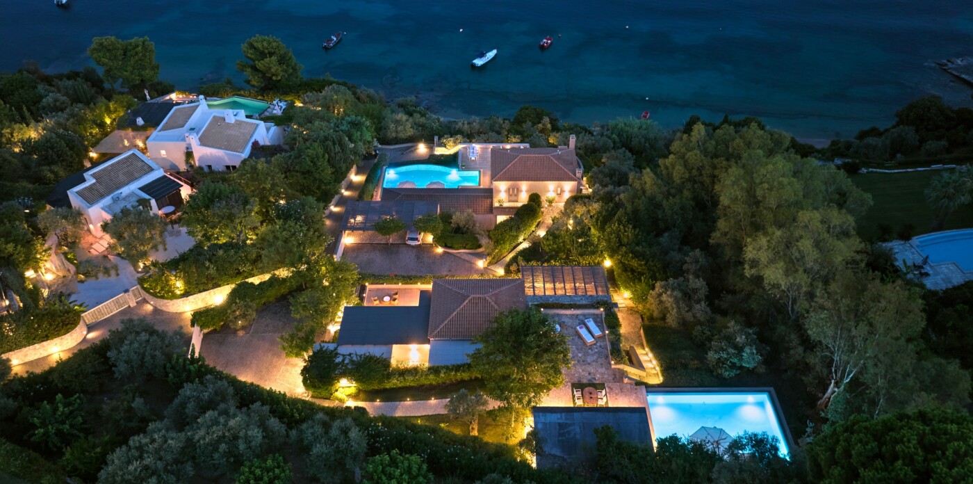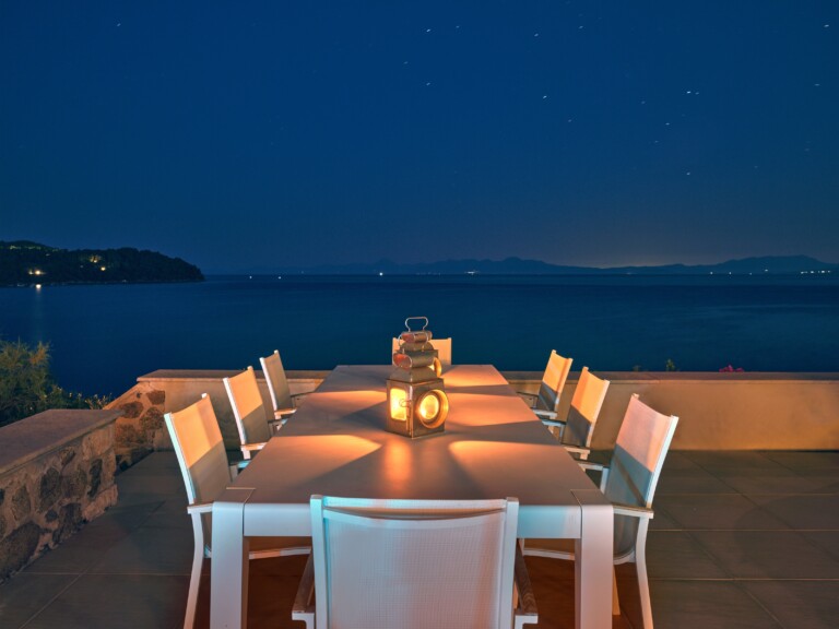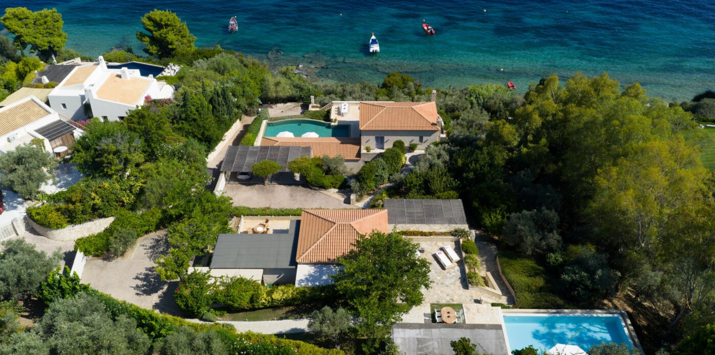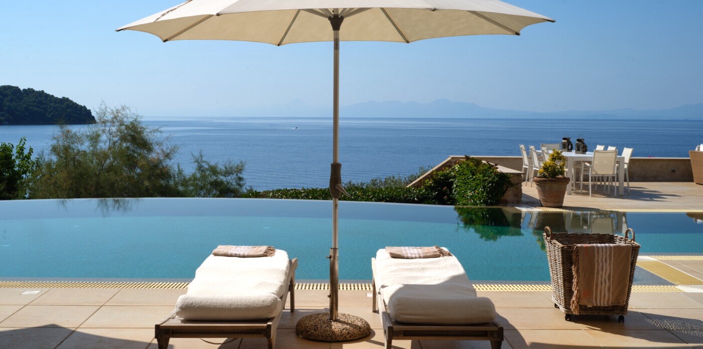 Discover Seaside Vista, an exquisite beachfront estate nestled in the peaceful Agia Paraskevi of Skiathos, featuring two magnificent villas with five and six bedrooms respectively. Just steps from your door, a secluded, south-facing golden sandy beach awaits, offering an ultra-luxurious blend of privacy and calm.