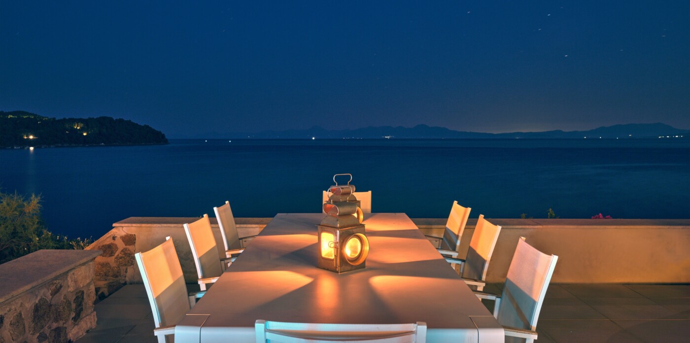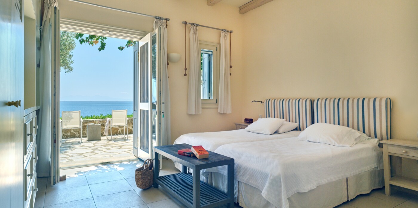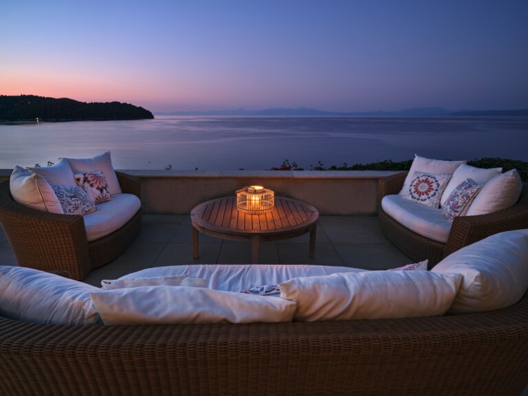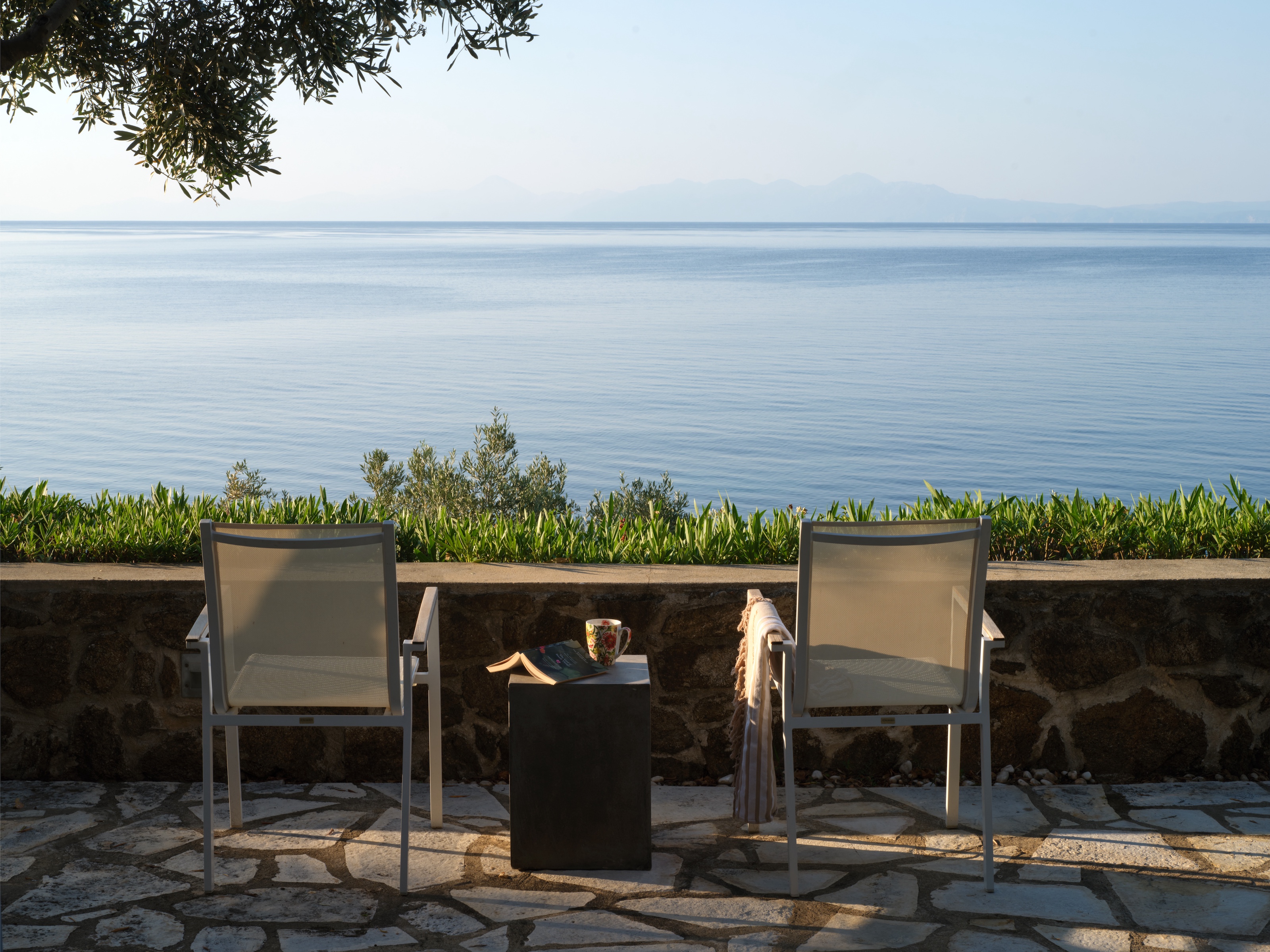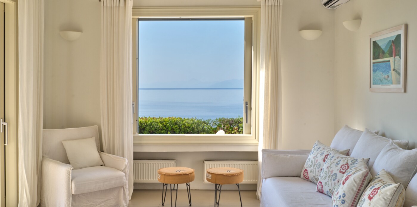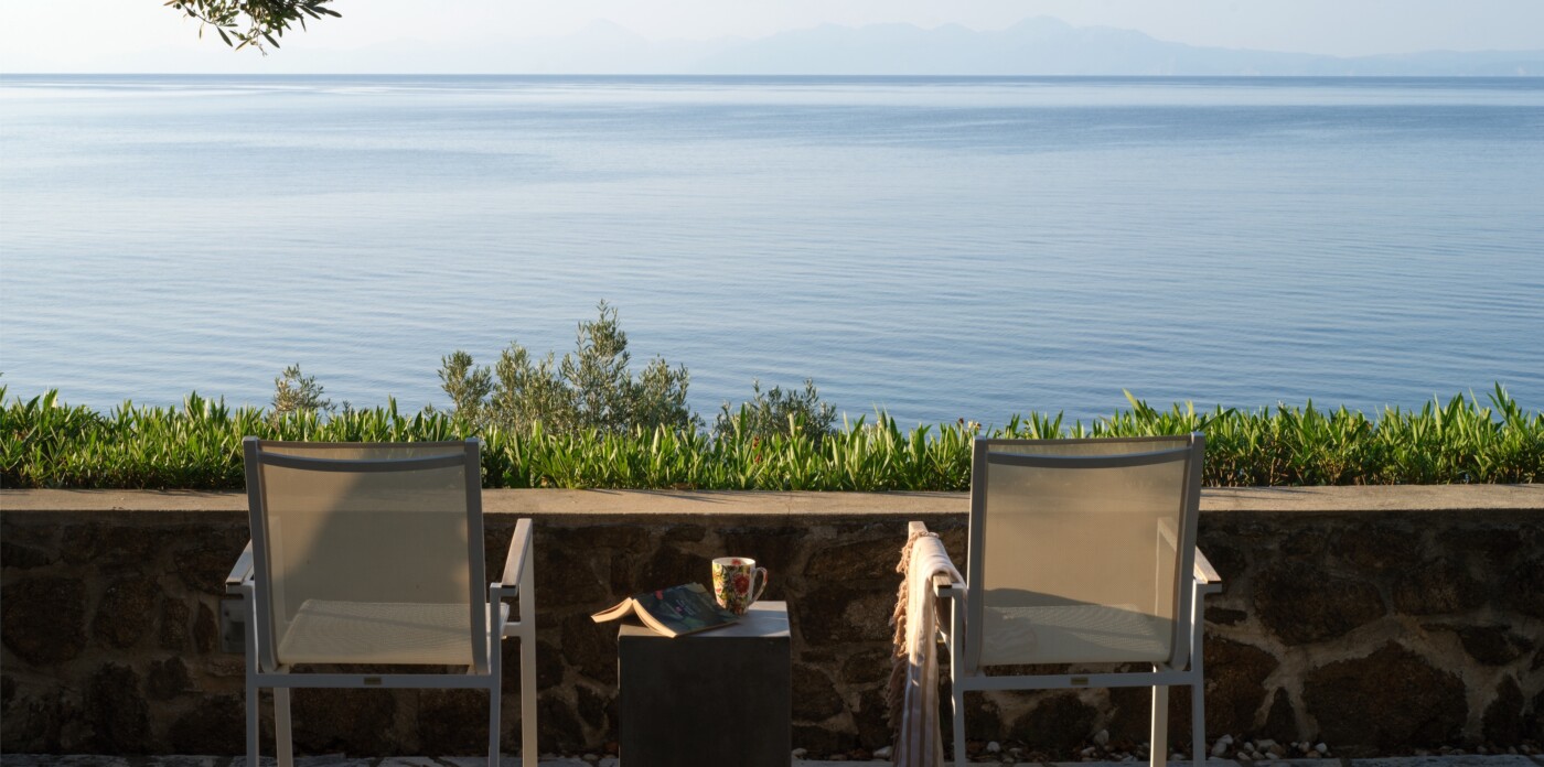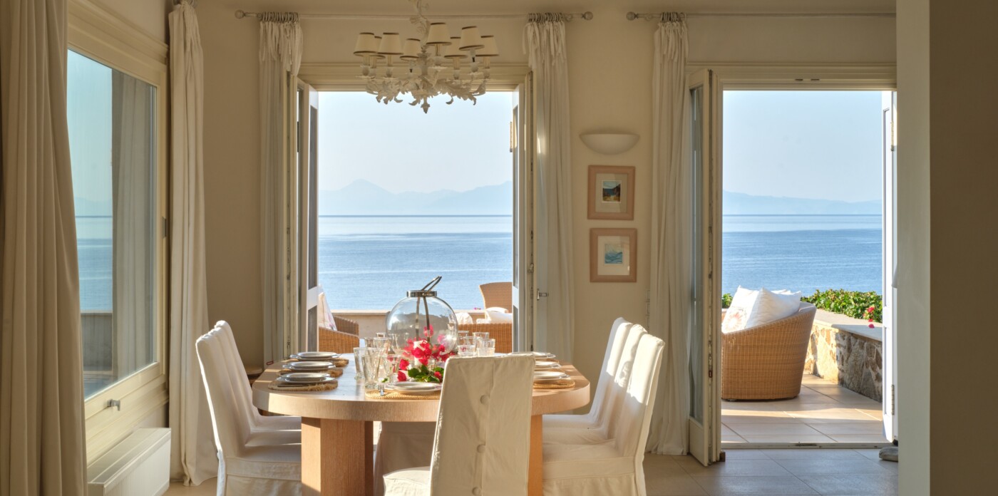 Discover Seaside Vista, an exquisite beachfront estate nestled in the peaceful Agia Paraskevi of Skiathos, featuring two magnificent villas with five and six bedrooms respectively. Just steps from your door, a secluded, south-facing golden sandy beach awaits, offering an ultra-luxurious blend of privacy and calm.