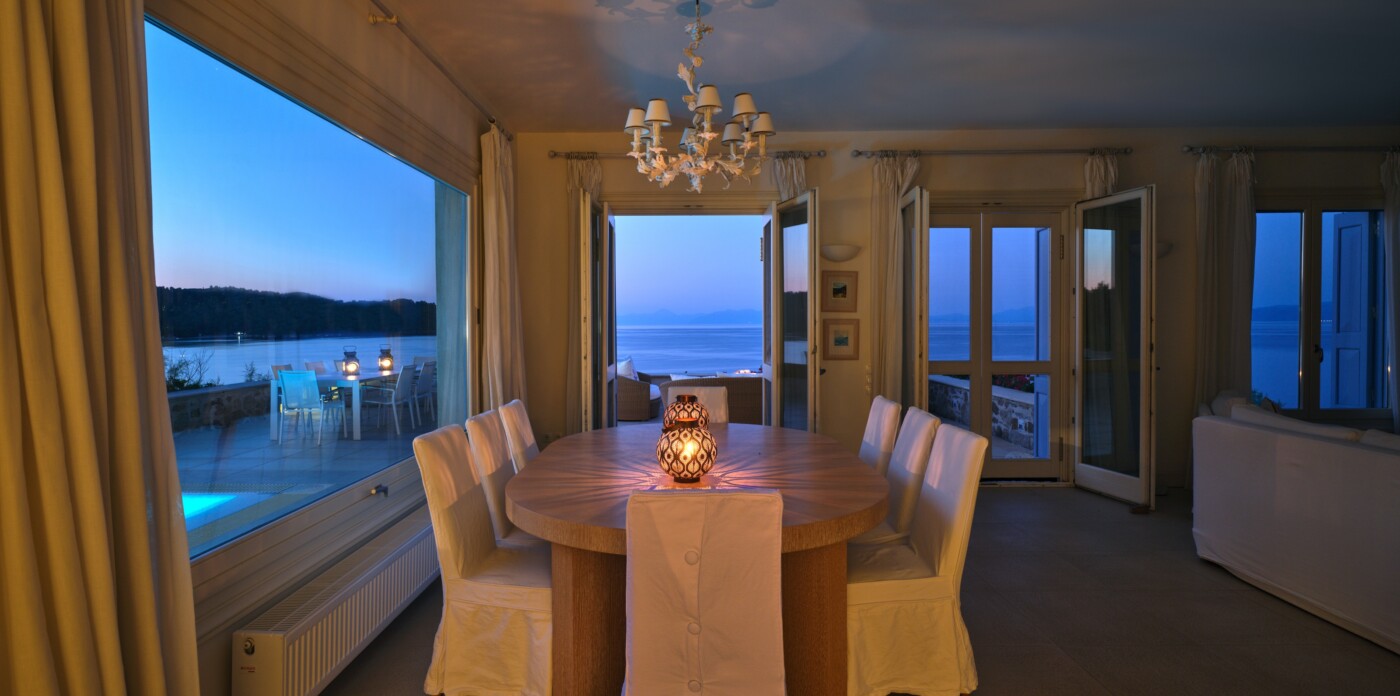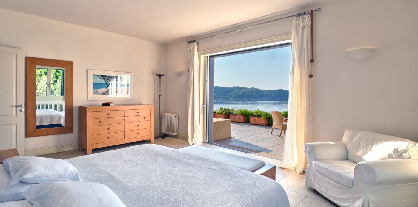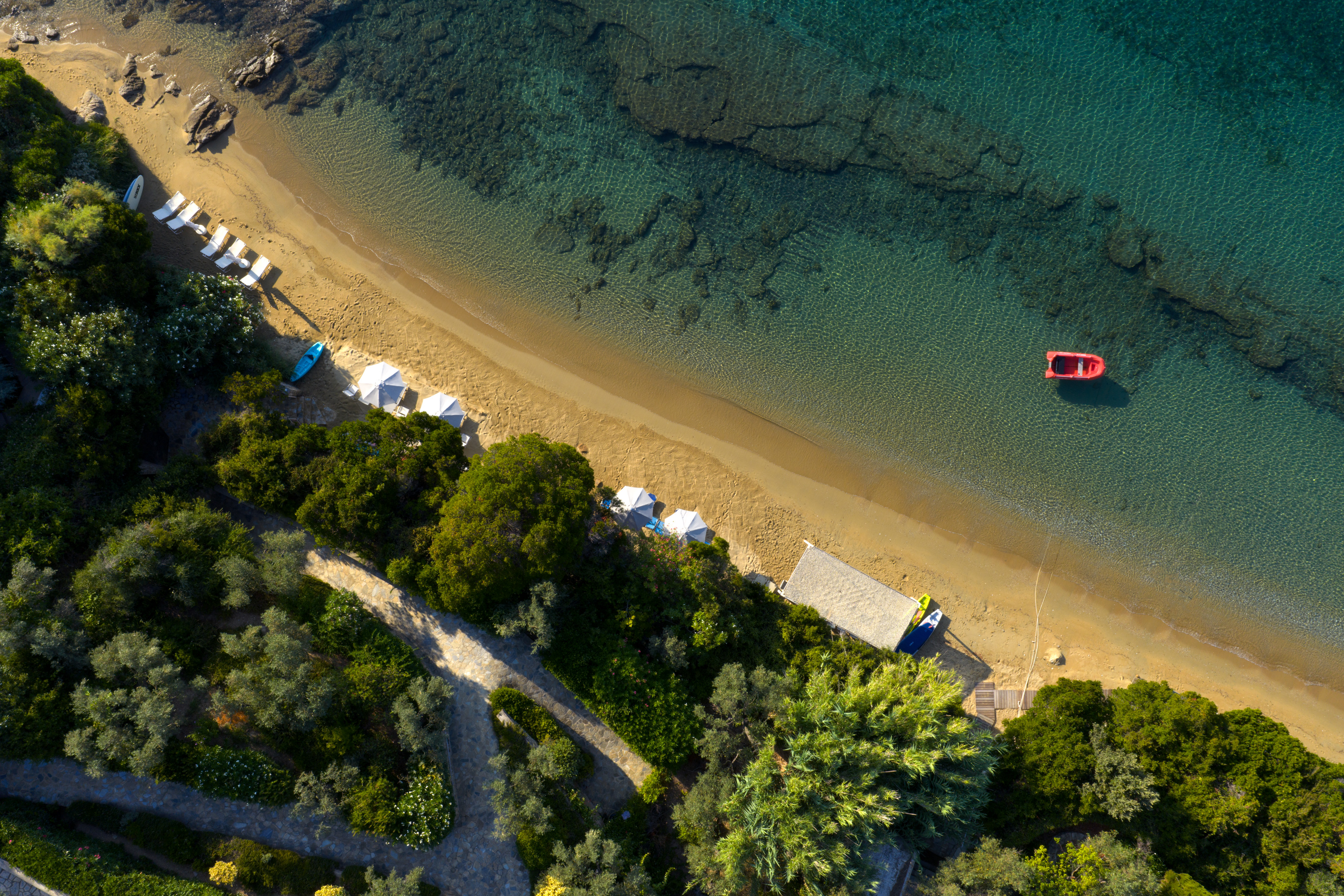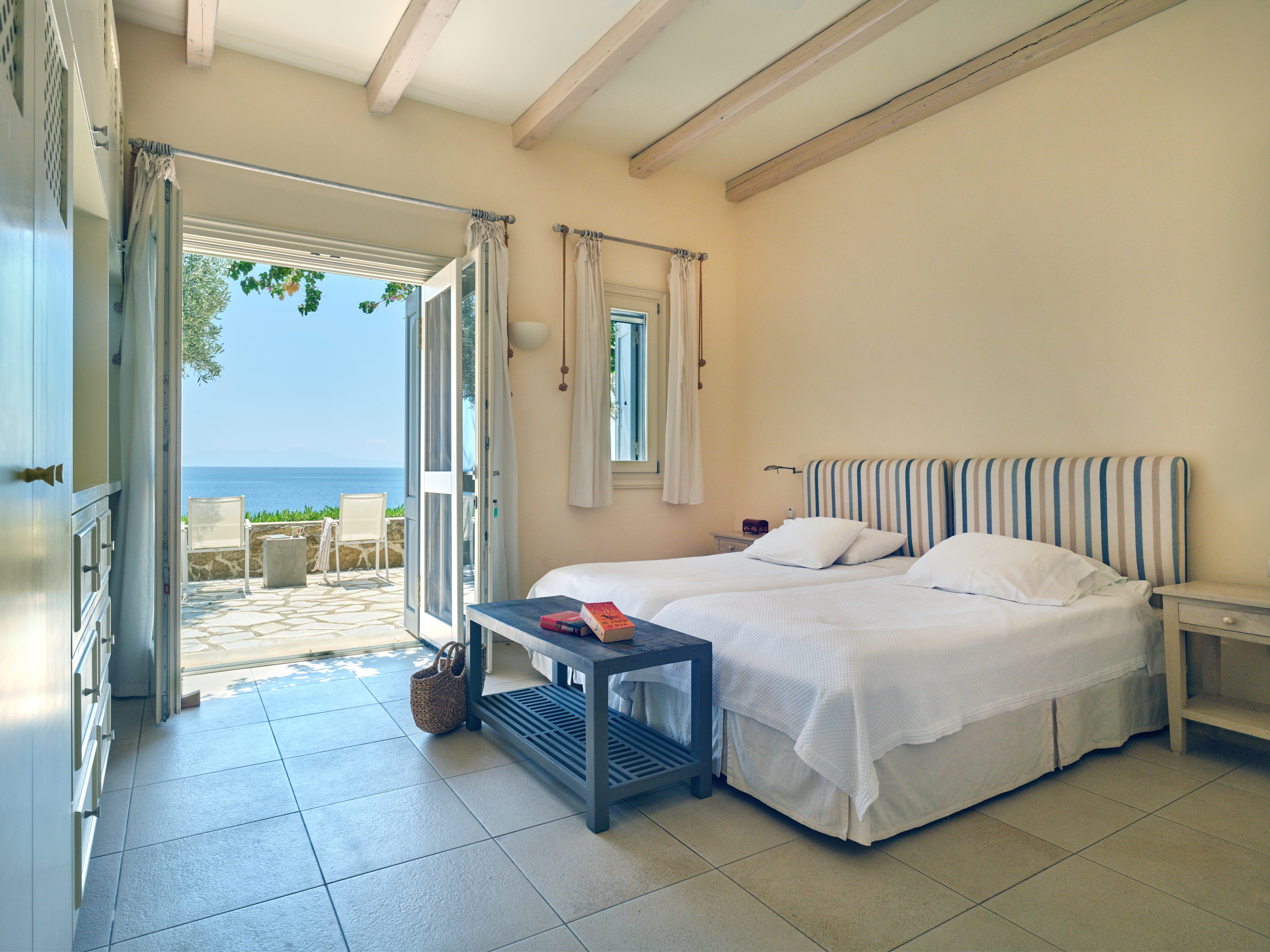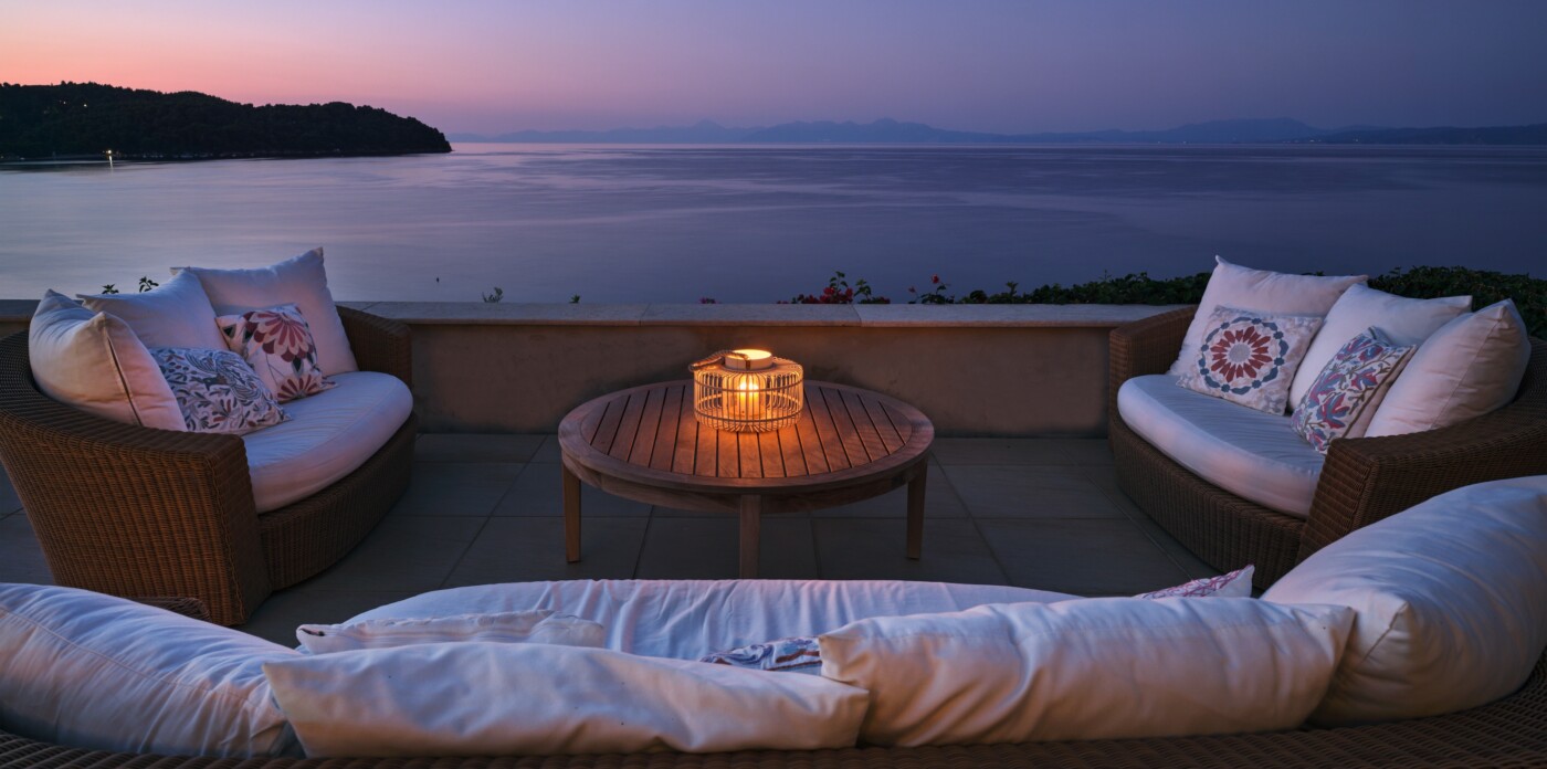 Discover Seaside Vista, an exquisite beachfront estate nestled in the peaceful Agia Paraskevi of Skiathos, featuring two magnificent villas with five and six bedrooms respectively. Just steps from your door, a secluded, south-facing golden sandy beach awaits, offering an ultra-luxurious blend of privacy and calm.