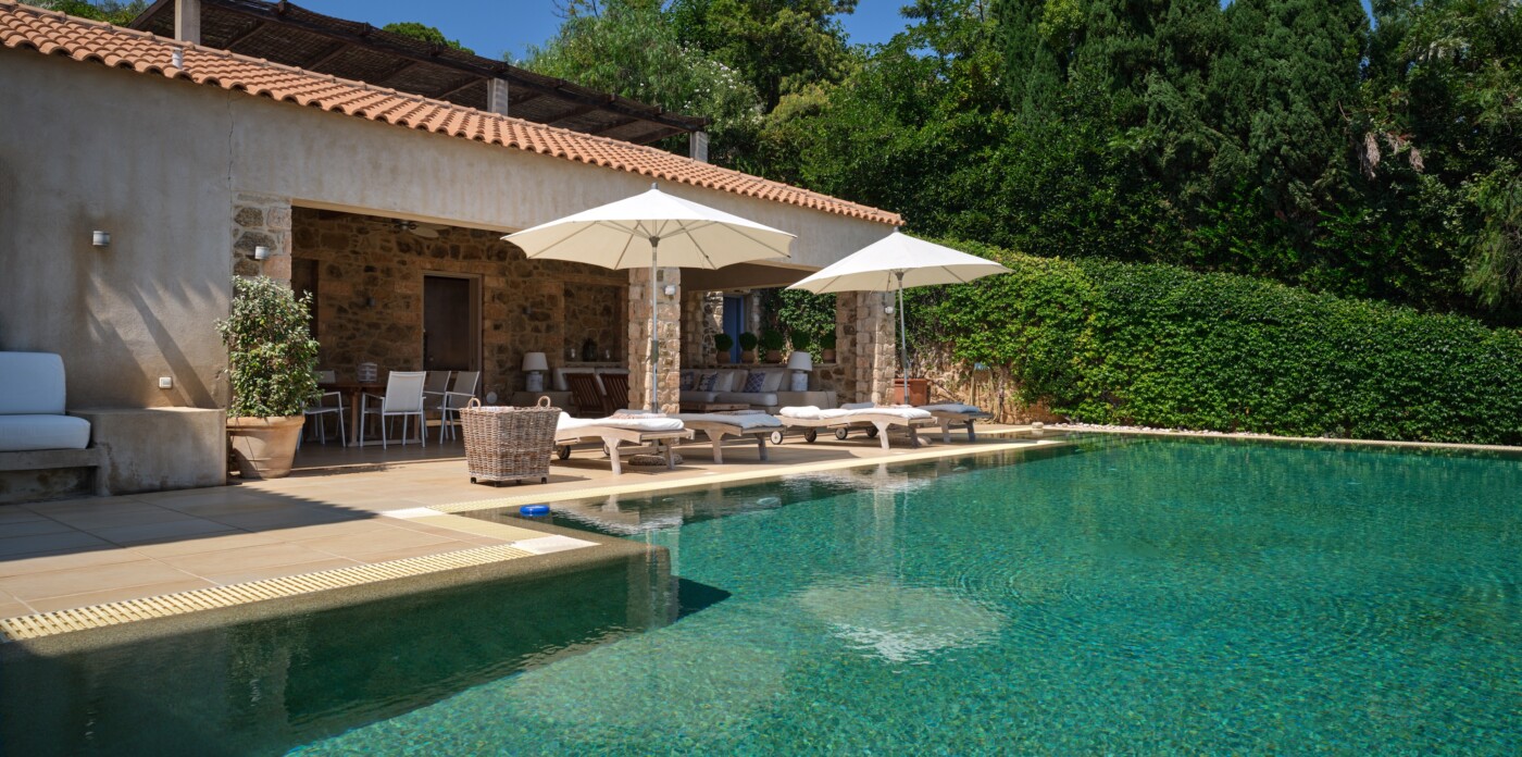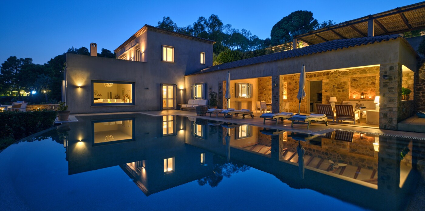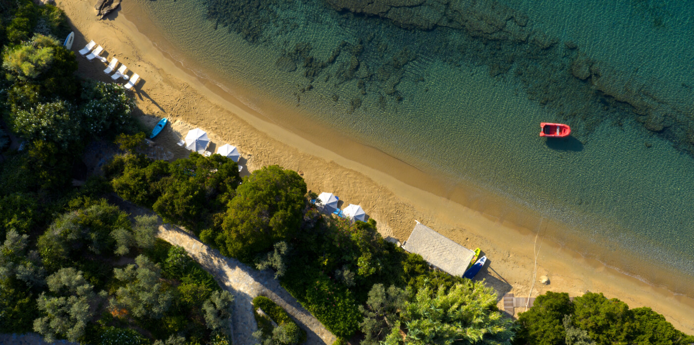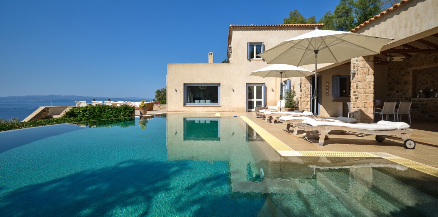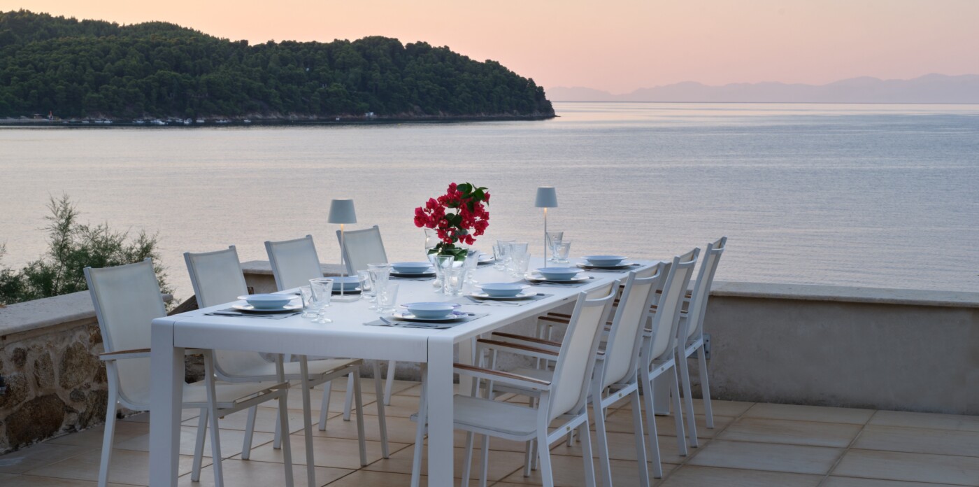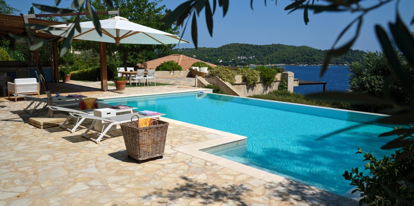 Discover Seaside Vista, an exquisite beachfront estate nestled in the peaceful Agia Paraskevi of Skiathos, featuring two magnificent villas with five and six bedrooms respectively. Just steps from your door, a secluded, south-facing golden sandy beach awaits, offering an ultra-luxurious blend of privacy and calm.