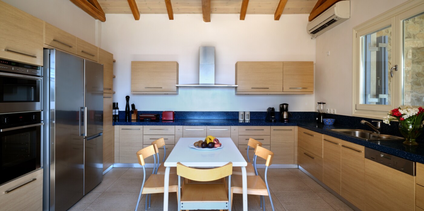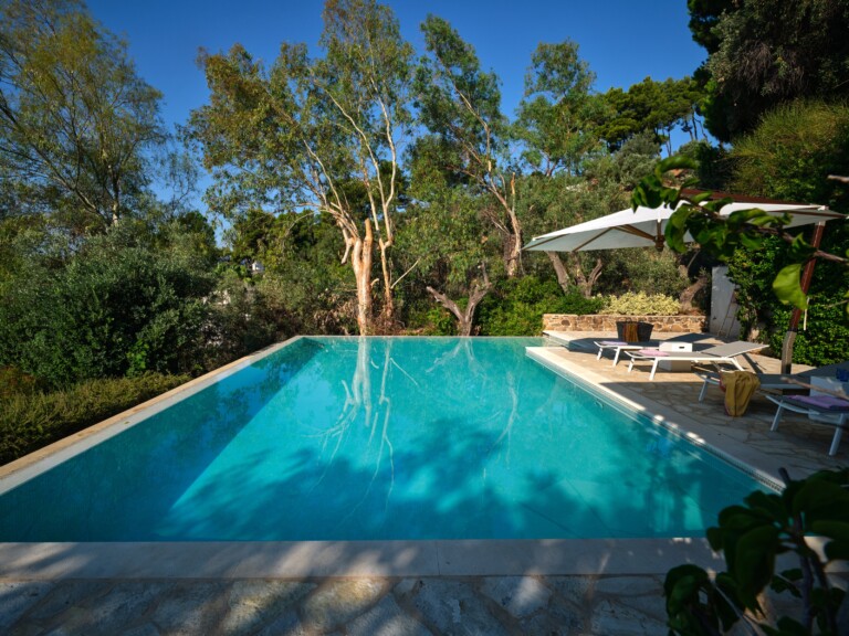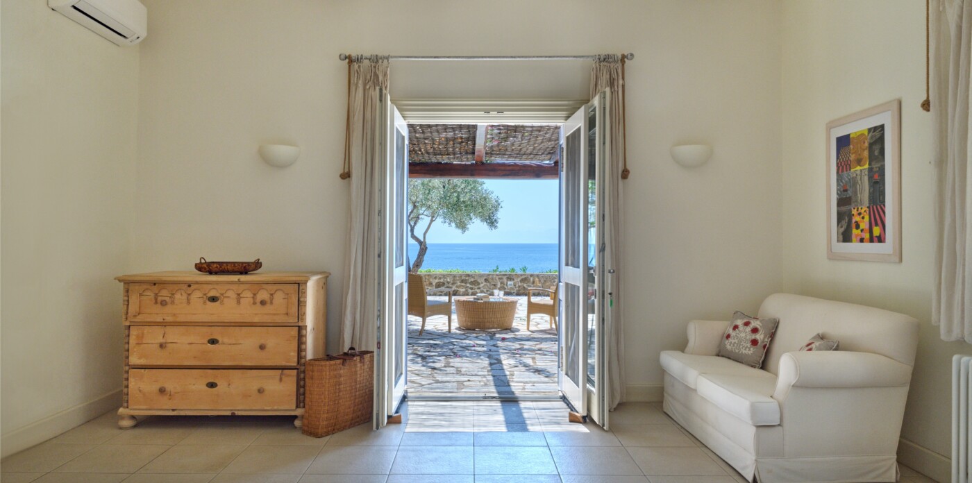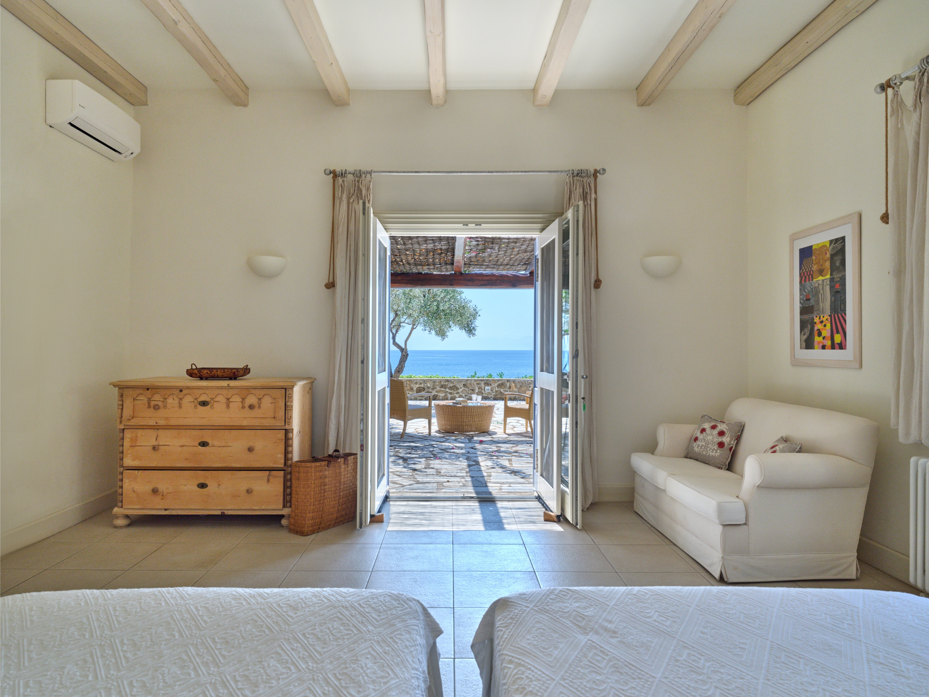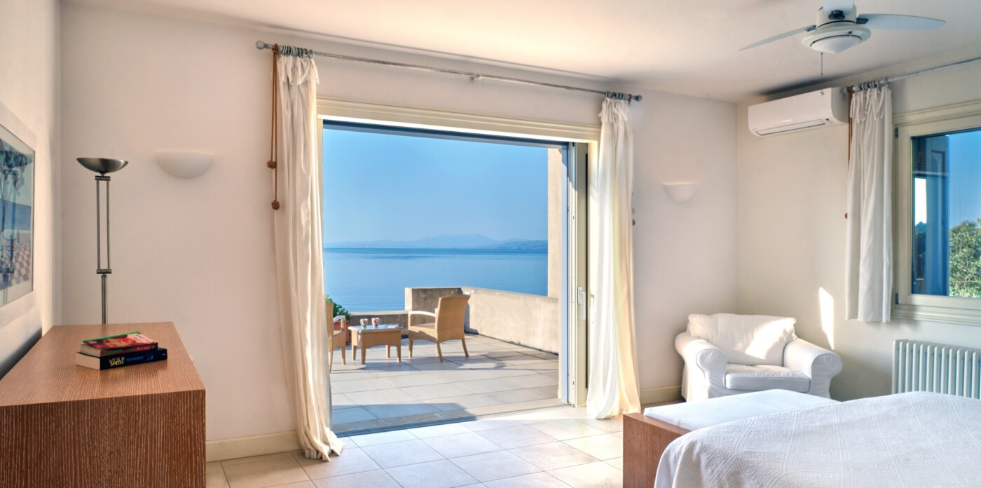 Around the shimmering infinity pool, you’ll discover a wealth of open-air sitting areas, perfect for relaxation. The top floor is dedicated to a luxurious master bedroom, complete with its own private entrance. Adjacent to it, a separate study provides access to a private balcony, commanding breathtaking views of the Aegean Sea.