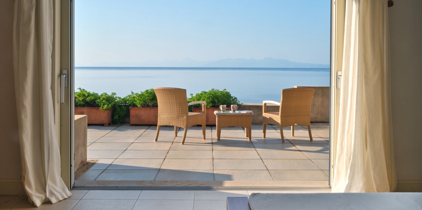 Indulge in luxury with two infinity pools and numerous balconies, all offering breathtaking Aegean views under the glorious Greek sun.