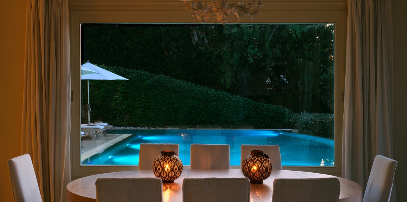 The lower level villa, spanning over 500 sq.m, offers five beautifully appointed bedrooms. Designed for seamless living, it features two expansive living and dining areas—one sophisticated indoor space and another integrated seamlessly outdoors.