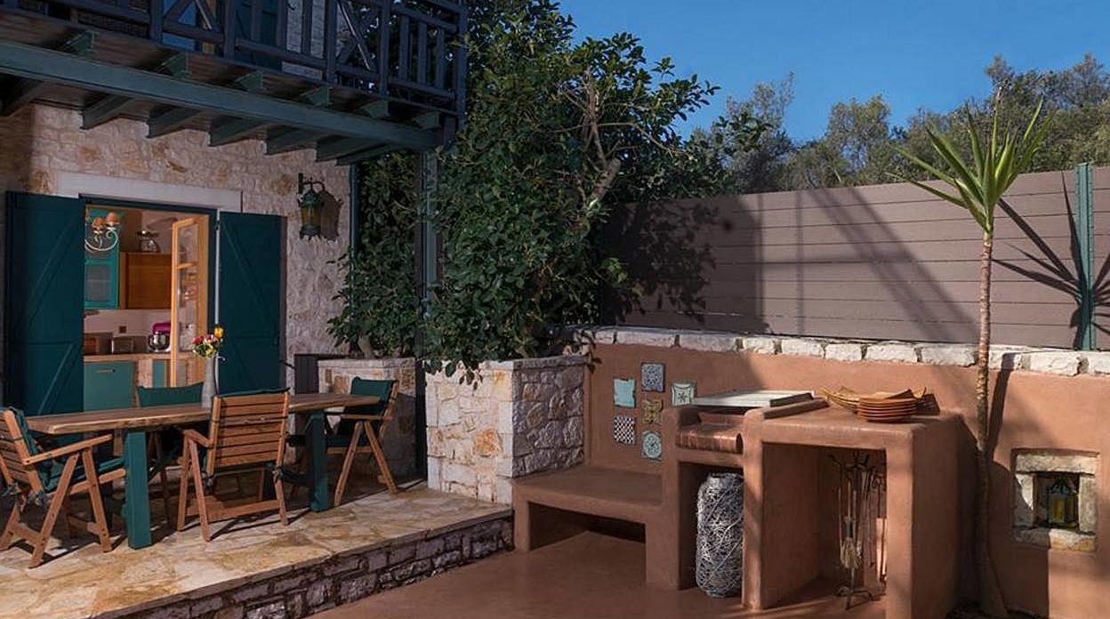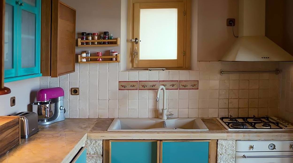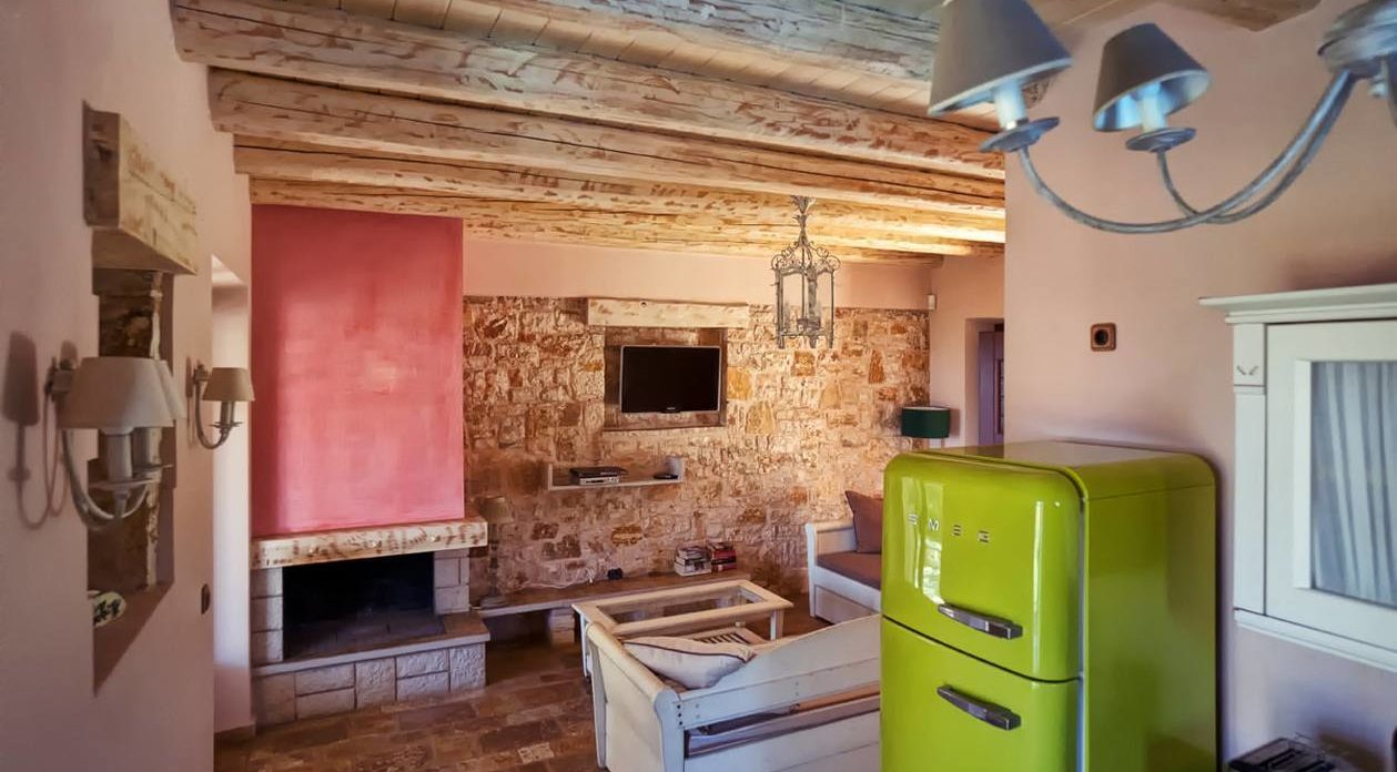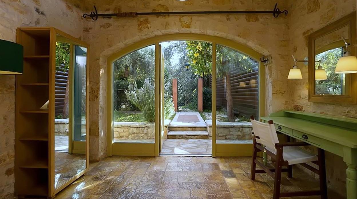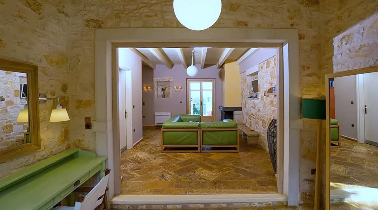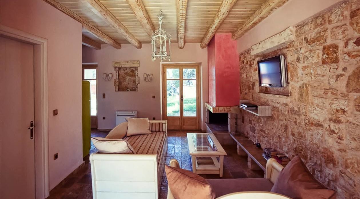 The stone-built holiday complex features romantic, country-style interiors with distressed wood furnishings, organic materials and hand-painted details. Each unit consists of 2 bedrooms, a living room and a fully equipped kitchen.