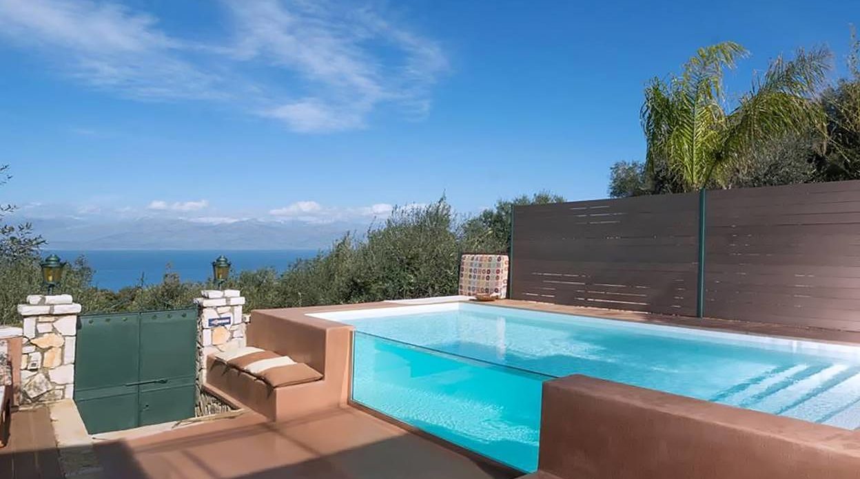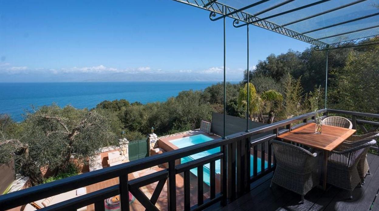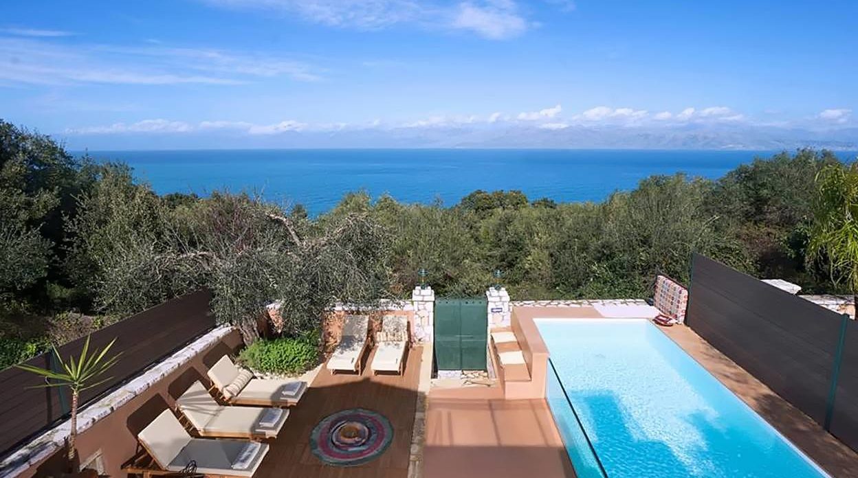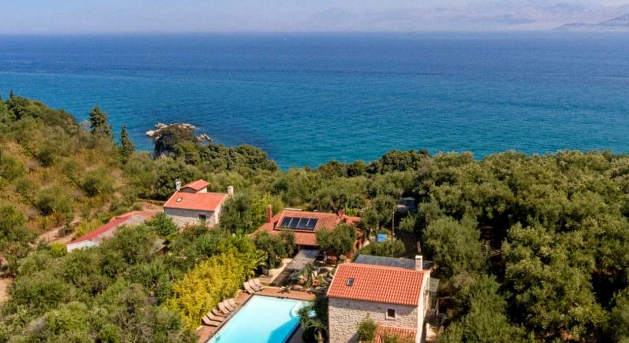 This unique, sea view estate for sale is set on a secluded hillside, amidst lush olive groves. The Estate is made up of a small hamlet of properties all of traditional Corfiot architecture and is harmonically met with modern day aesthetics. It consists of 1 villa, 2 bungalows and a separate cottage surrounded by a beautiful garden with a pool. The beach of Agios Spyridonas is just 500 meters away. A small stone path leads from the property directly down to a small , very secluded beach.