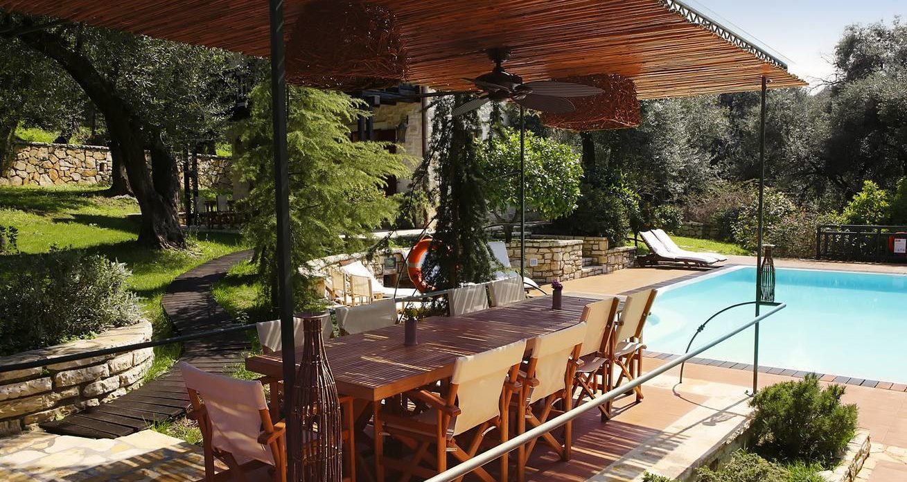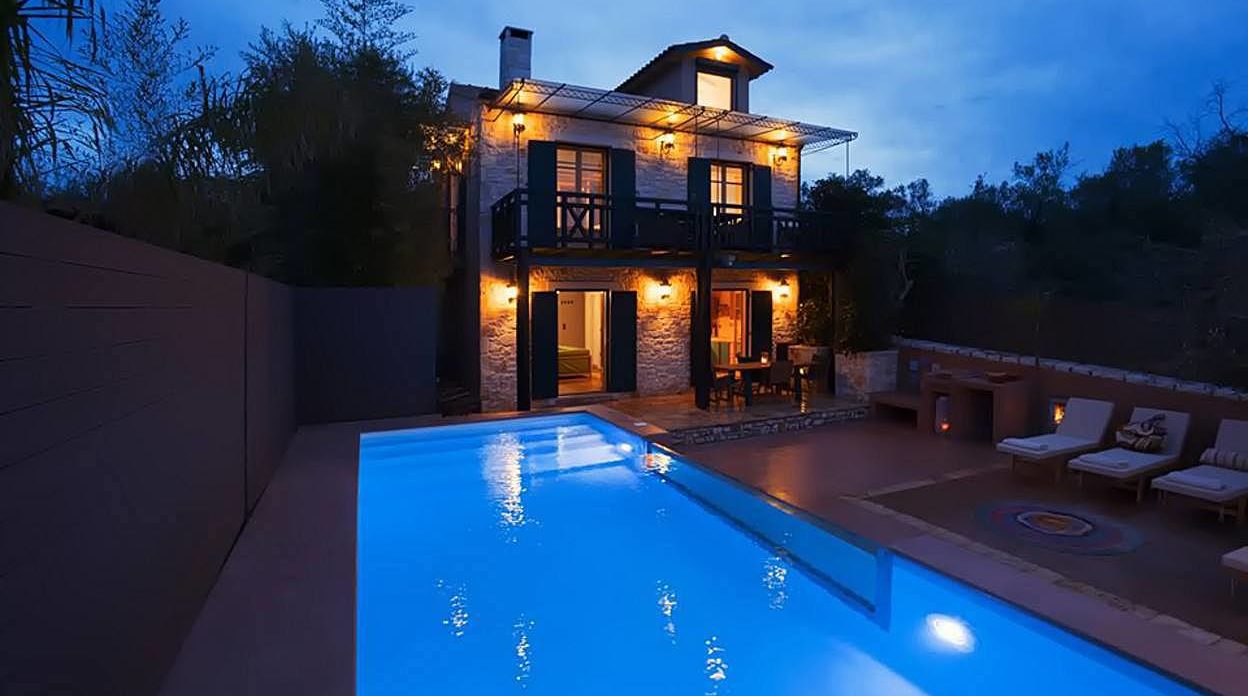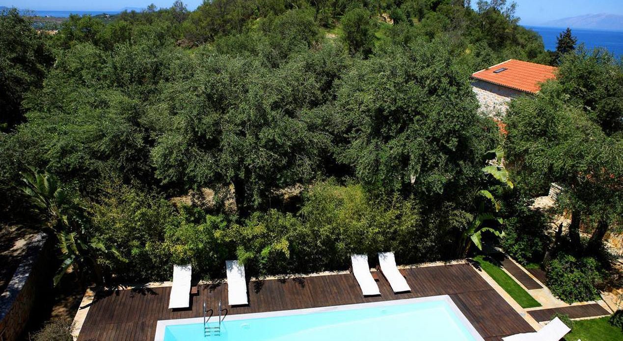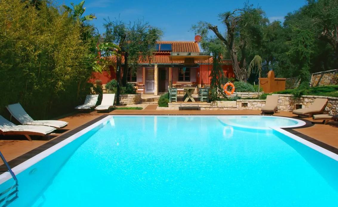 This unique, sea view estate for sale is set on a secluded hillside, amidst lush olive groves. The Estate is made up of a small hamlet of properties all of traditional Corfiot architecture and is harmonically met with modern day aesthetics. It consists of 1 villa, 2 bungalows and a separate cottage surrounded by a beautiful garden with a pool. The beach of Agios Spyridonas is just 500 meters away. A small stone path leads from the property directly down to a small , very secluded beach.
