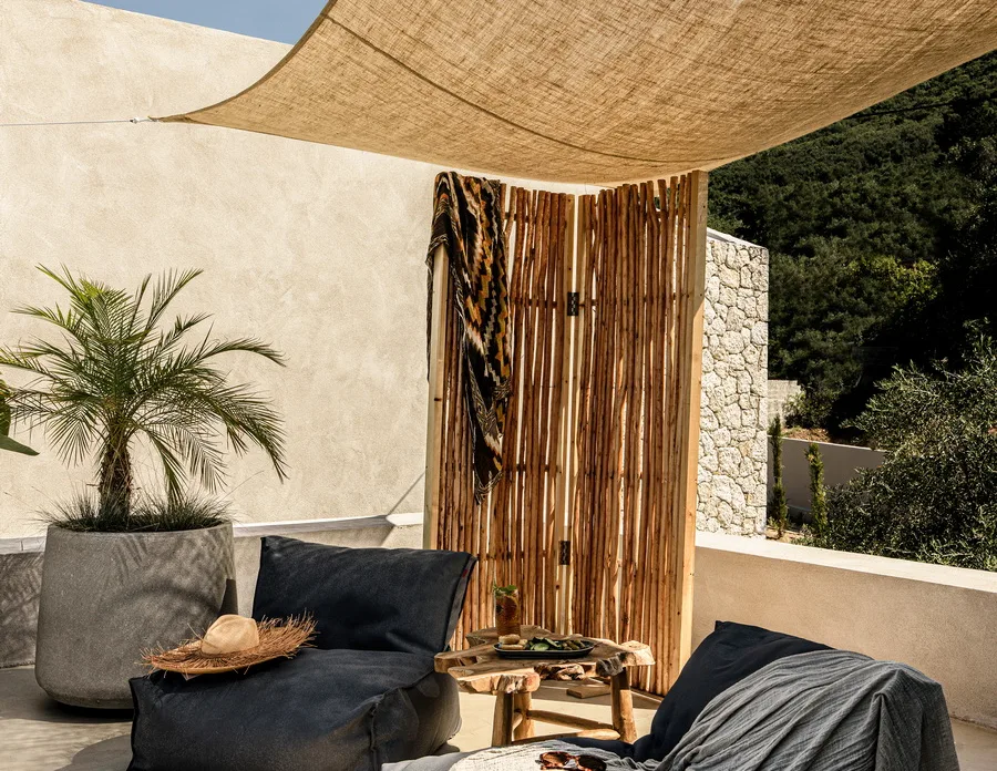Villa 2 offers a similar layout, with a lush exterior Hydro Spa and a private terrace overlooking the sea. The primary bedroom on the upper level provides a peaceful escape with its own private terrace.