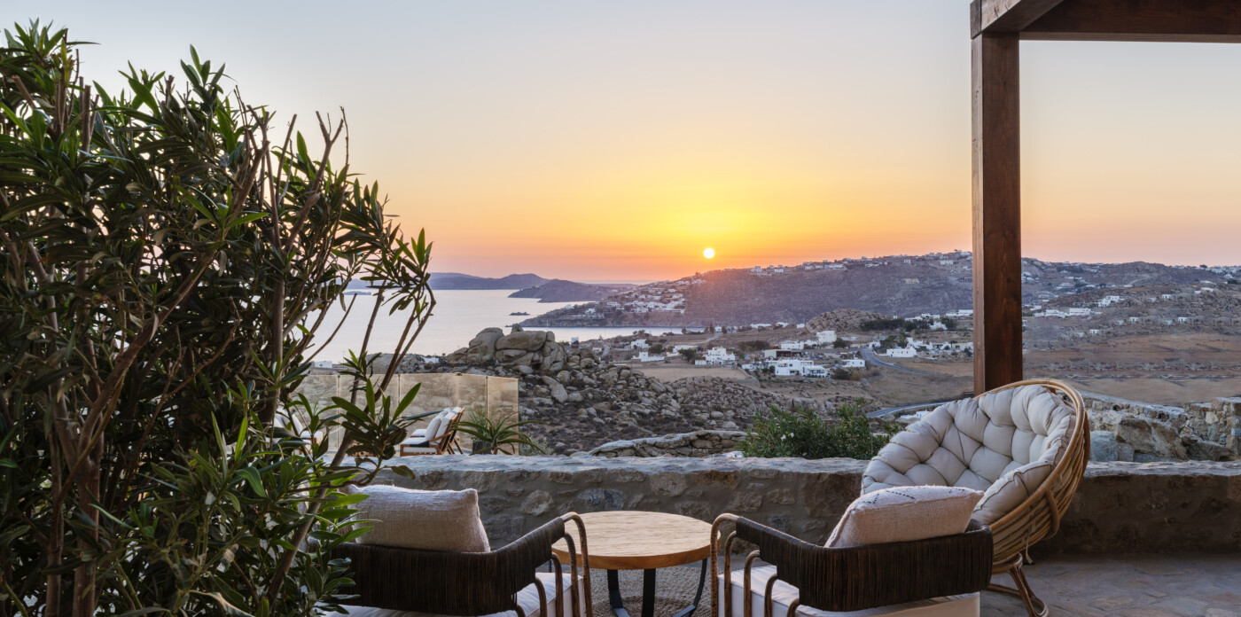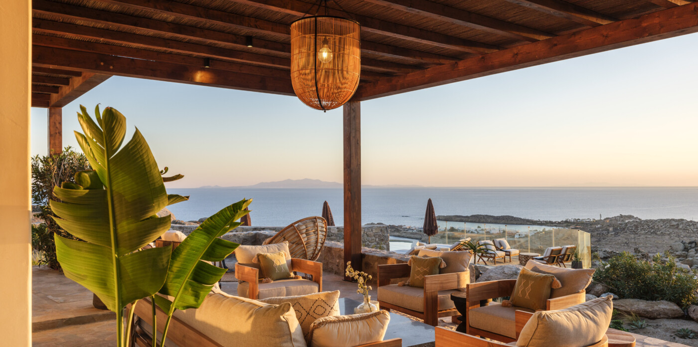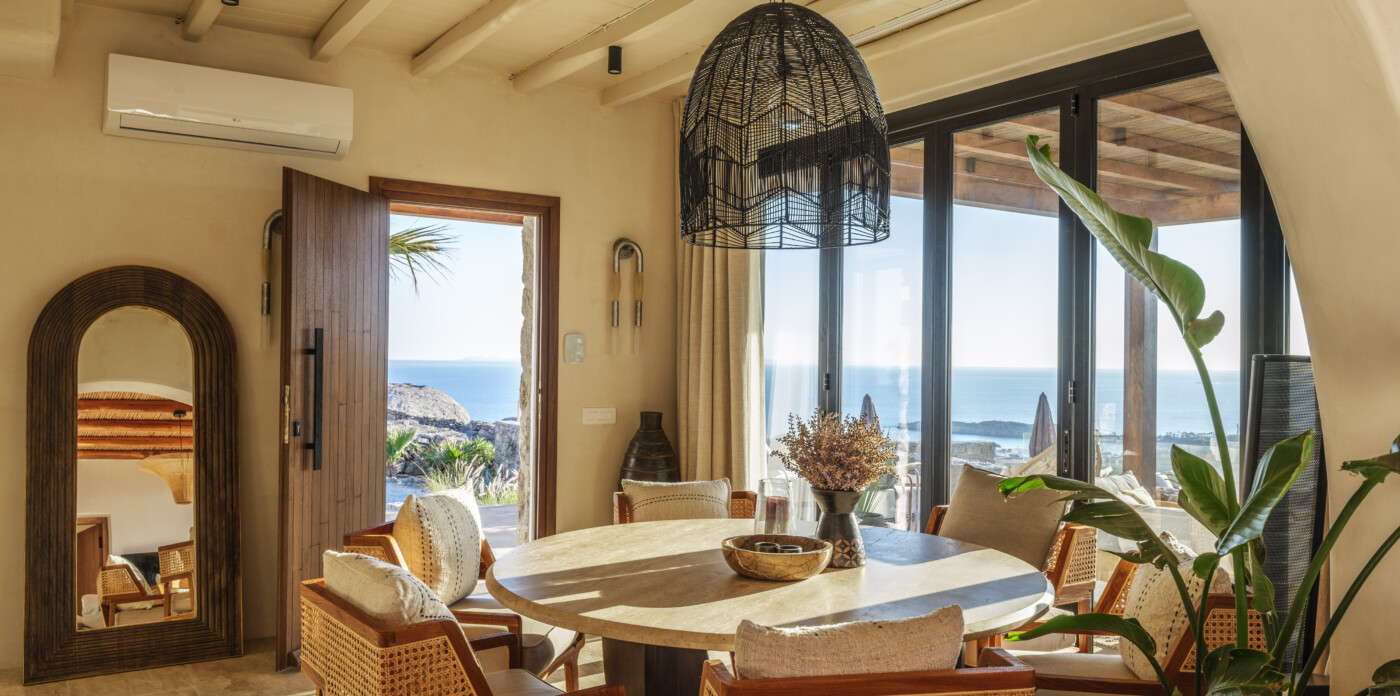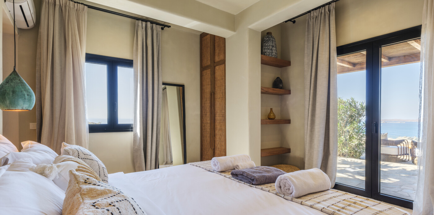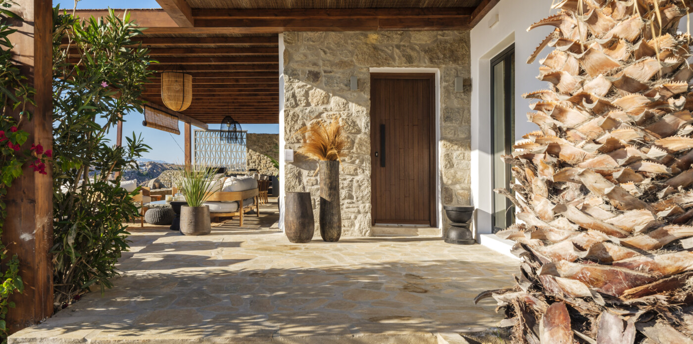 Located in the beautiful area of Pyrgi, just minutes from Mykonos’ most iconic beach clubs like Scorpios and Soho House, Solasta is a stunning four-bedroom en suite villa that redefines island elegance and effortless living. Its prime position offers magnificent sea views and a captivating panorama of the island’s famous sunsets.