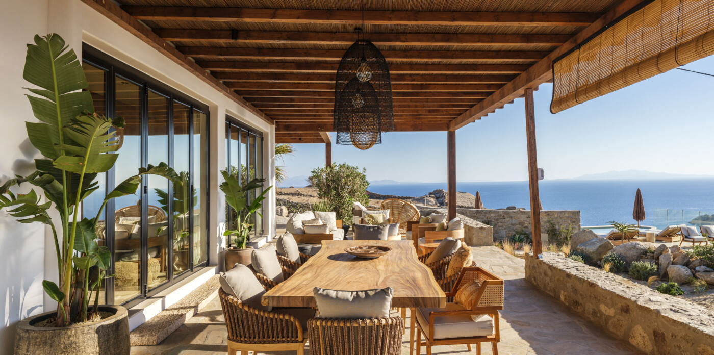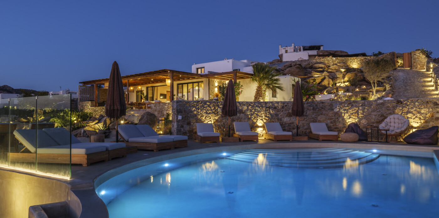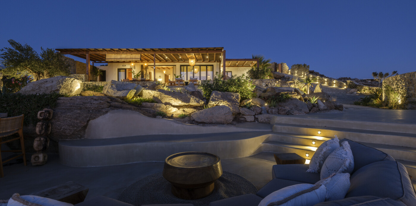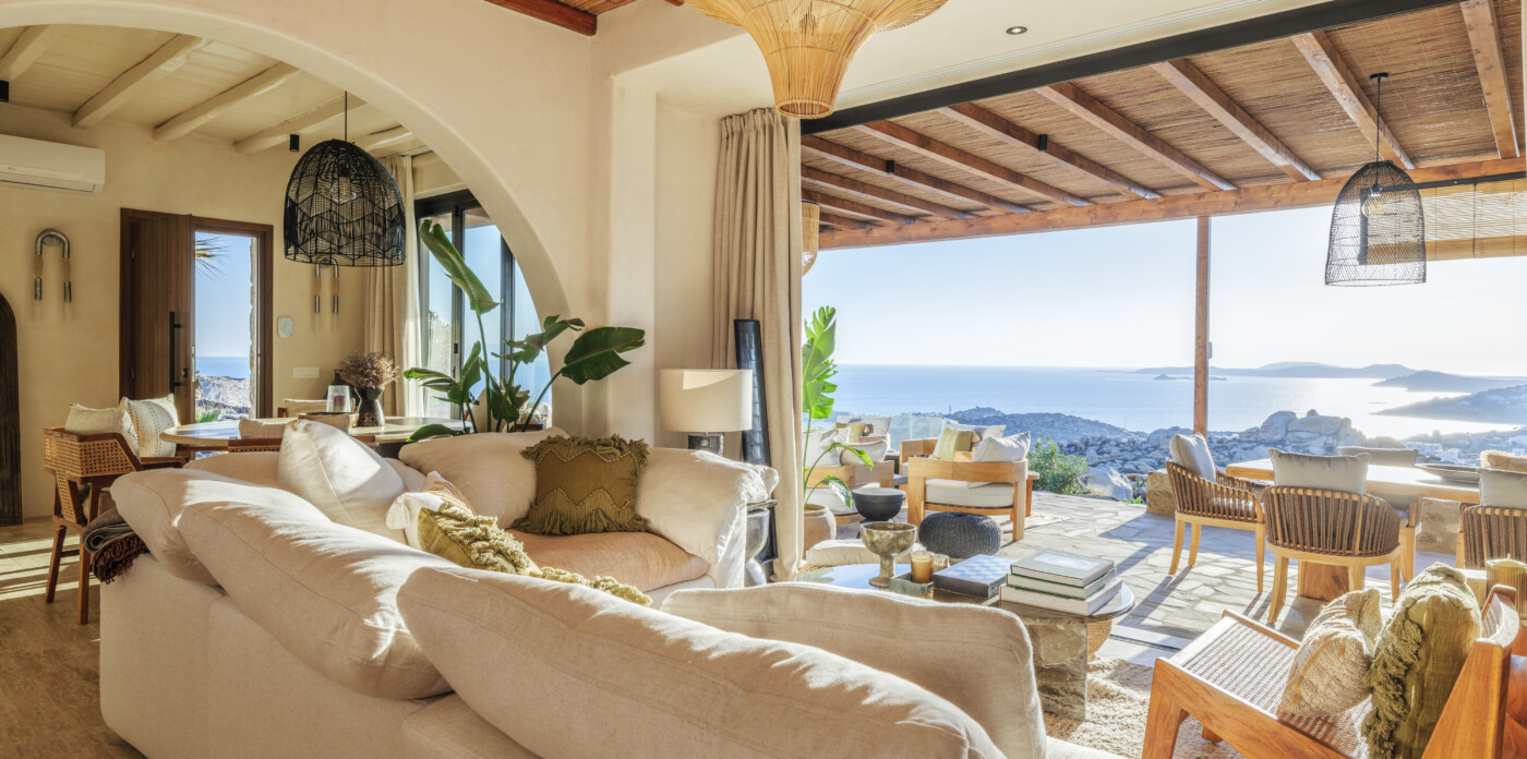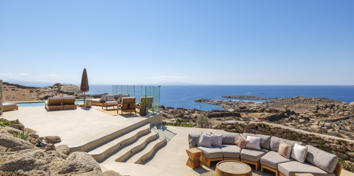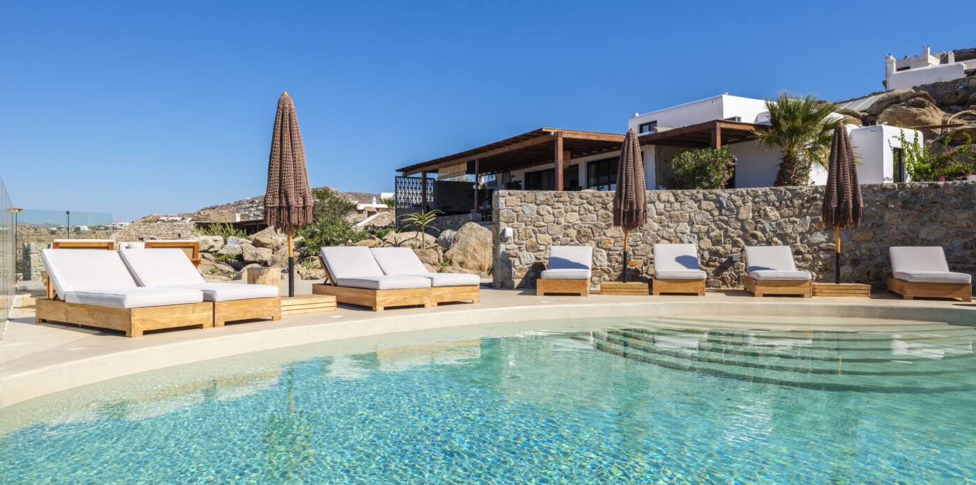 Located in the beautiful area of Pyrgi, just minutes from Mykonos’ most iconic beach clubs like Scorpios and Soho House, Solasta is a stunning four-bedroom en suite villa that redefines island elegance and effortless living. Its prime position offers magnificent sea views and a captivating panorama of the island’s famous sunsets.