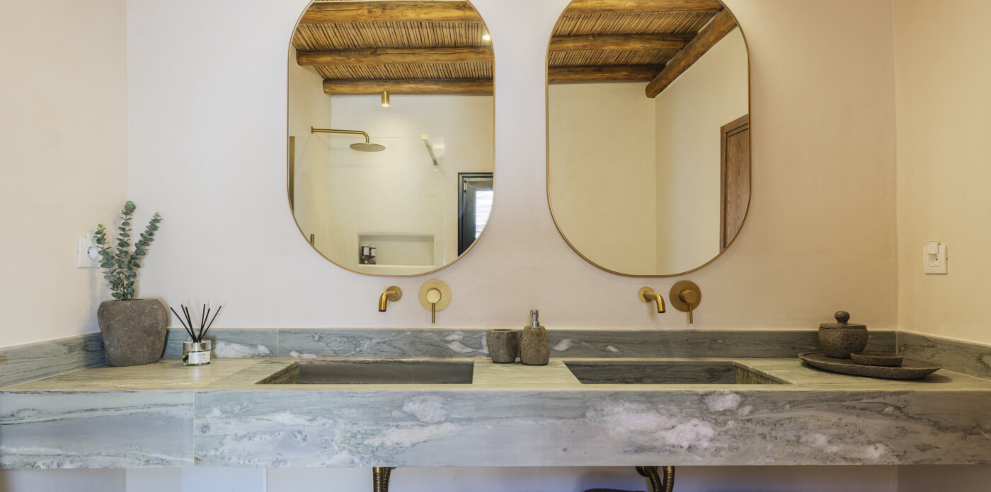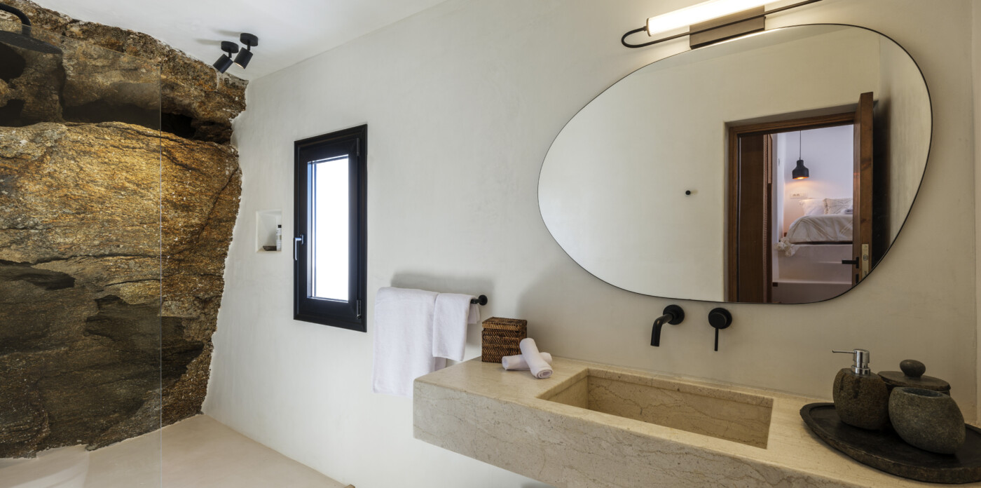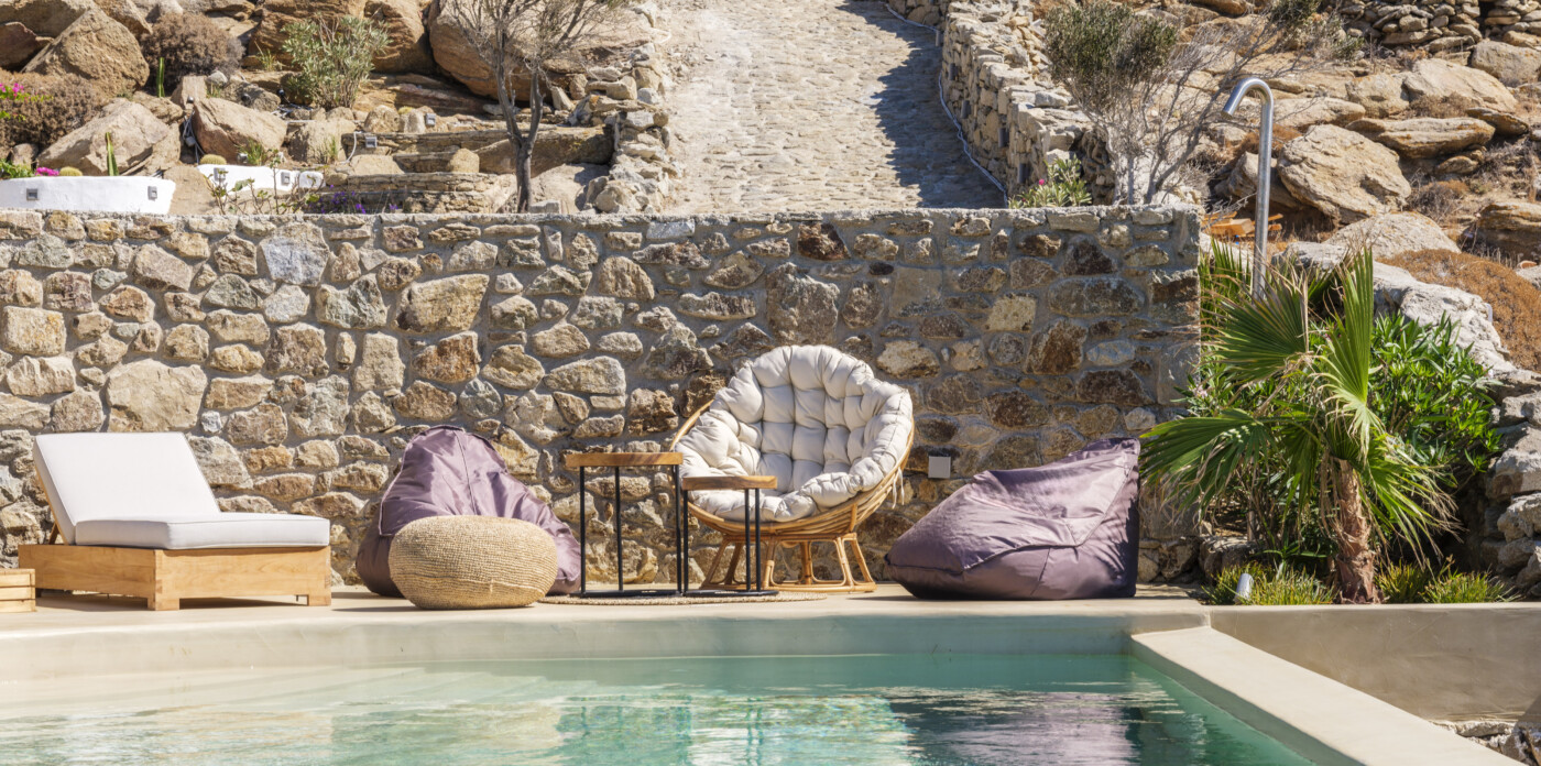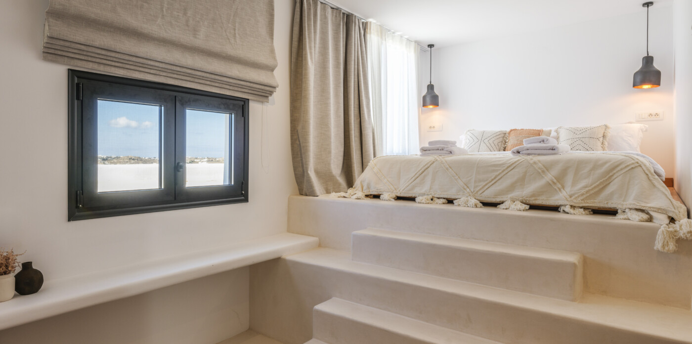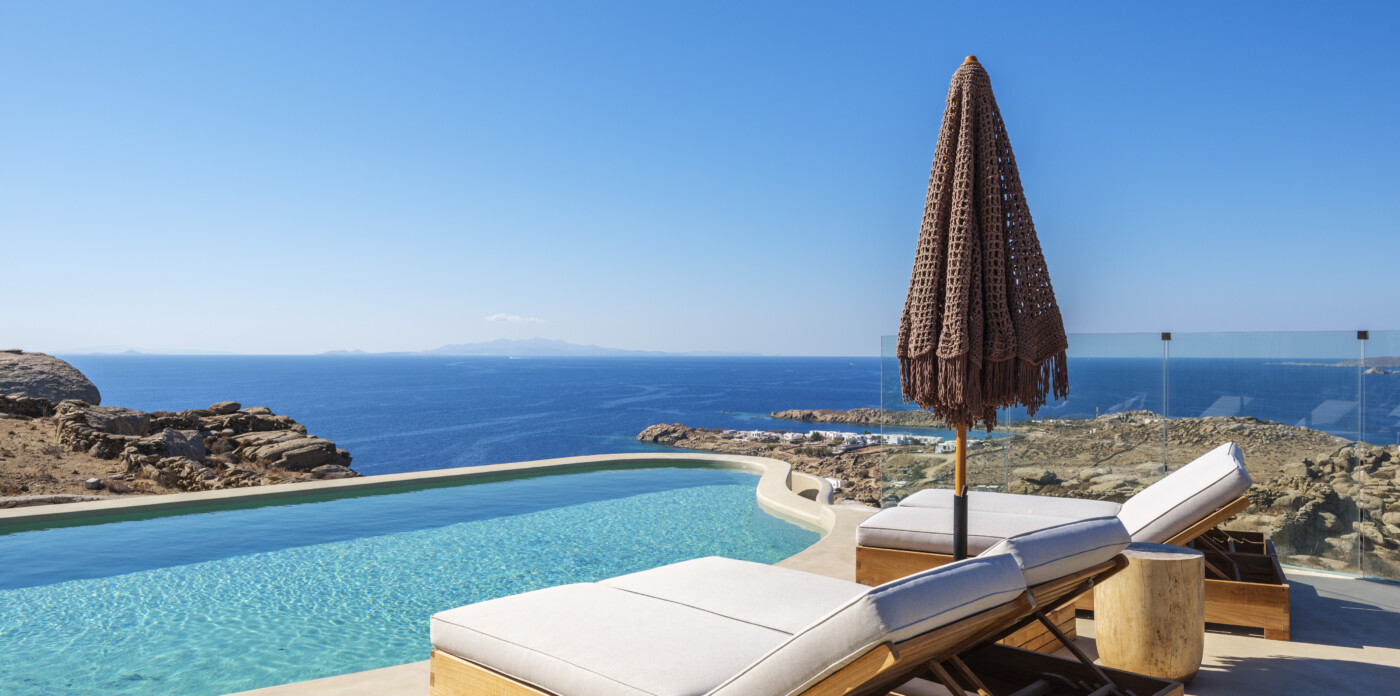 Located in the beautiful area of Pyrgi, just minutes from Mykonos’ most iconic beach clubs like Scorpios and Soho House, Solasta is a stunning four-bedroom en suite villa that redefines island elegance and effortless living. Its prime position offers magnificent sea views and a captivating panorama of the island’s famous sunsets.