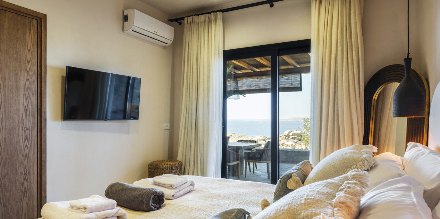 This wonderful home strikes the perfect balance: offering profound peace and privacy while being seamlessly close to Mykonos’ vibrant pulse. A short drive connects you to the island’s premier beaches, gourmet dining, and cosmopolitan nightlife. Whether relaxing by the pool, enjoying the private sauna, or entertaining in its elegant indoor and outdoor settings, Solasta delivers a Mykonos experience steeped in style, comfort, and magnificent surroundings.