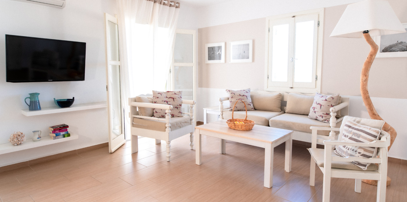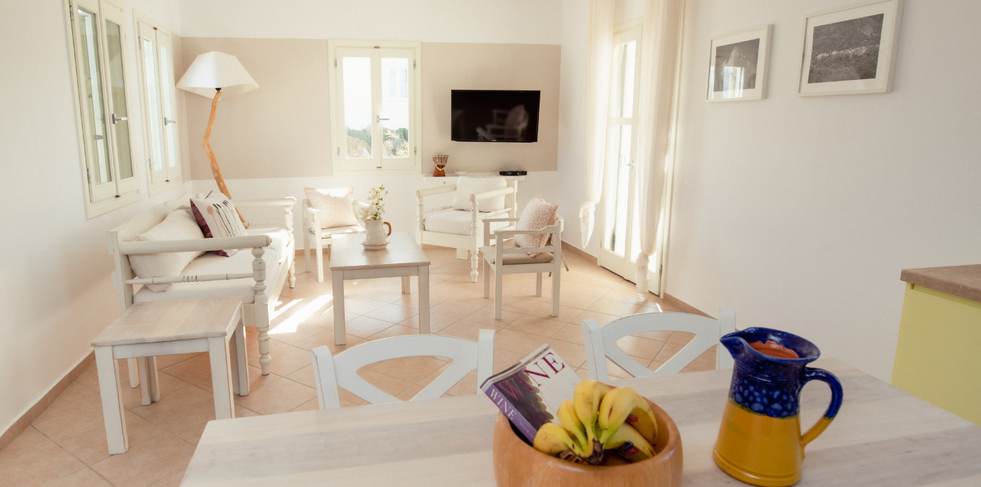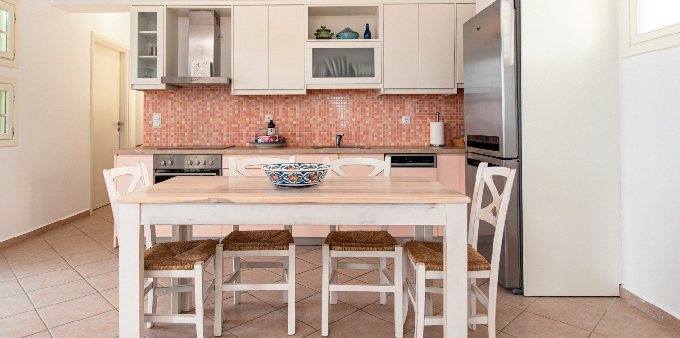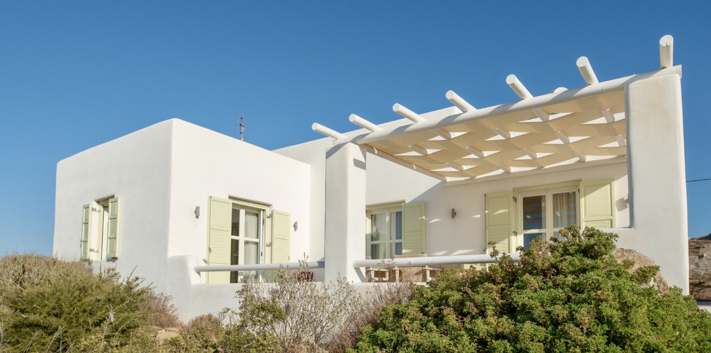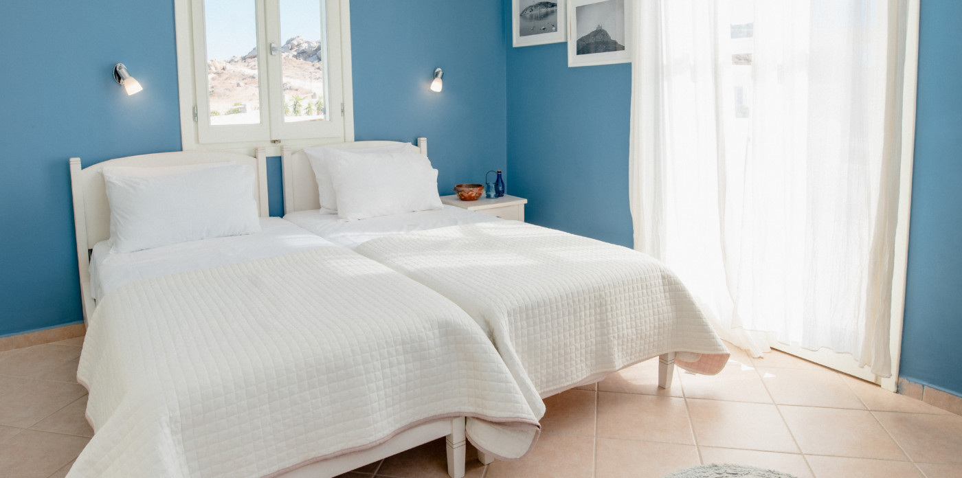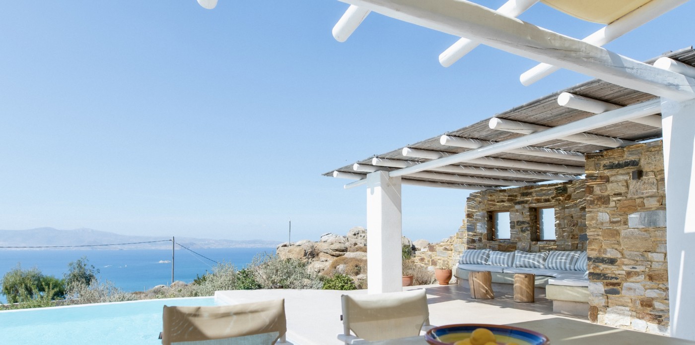 Three separate sugar-cube properties, Theros welcomes visitors with traditional charm. The inviting property offers ample space for private family getaways with seven beautiful bedrooms and five bathrooms spread between the three homes. Every room is illuminated by vibrant colours, and filled with warm tones, offering a sense of serenity and an ambience that makes visitors automatically feel at home.